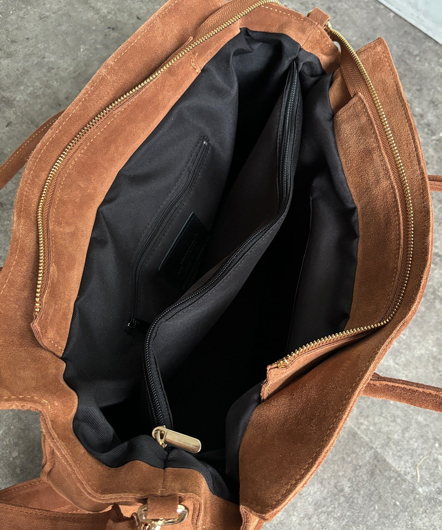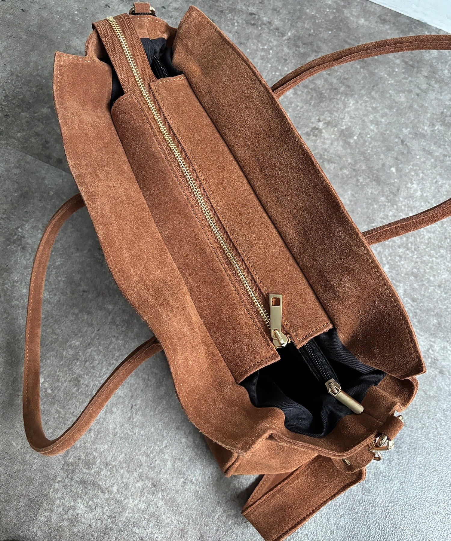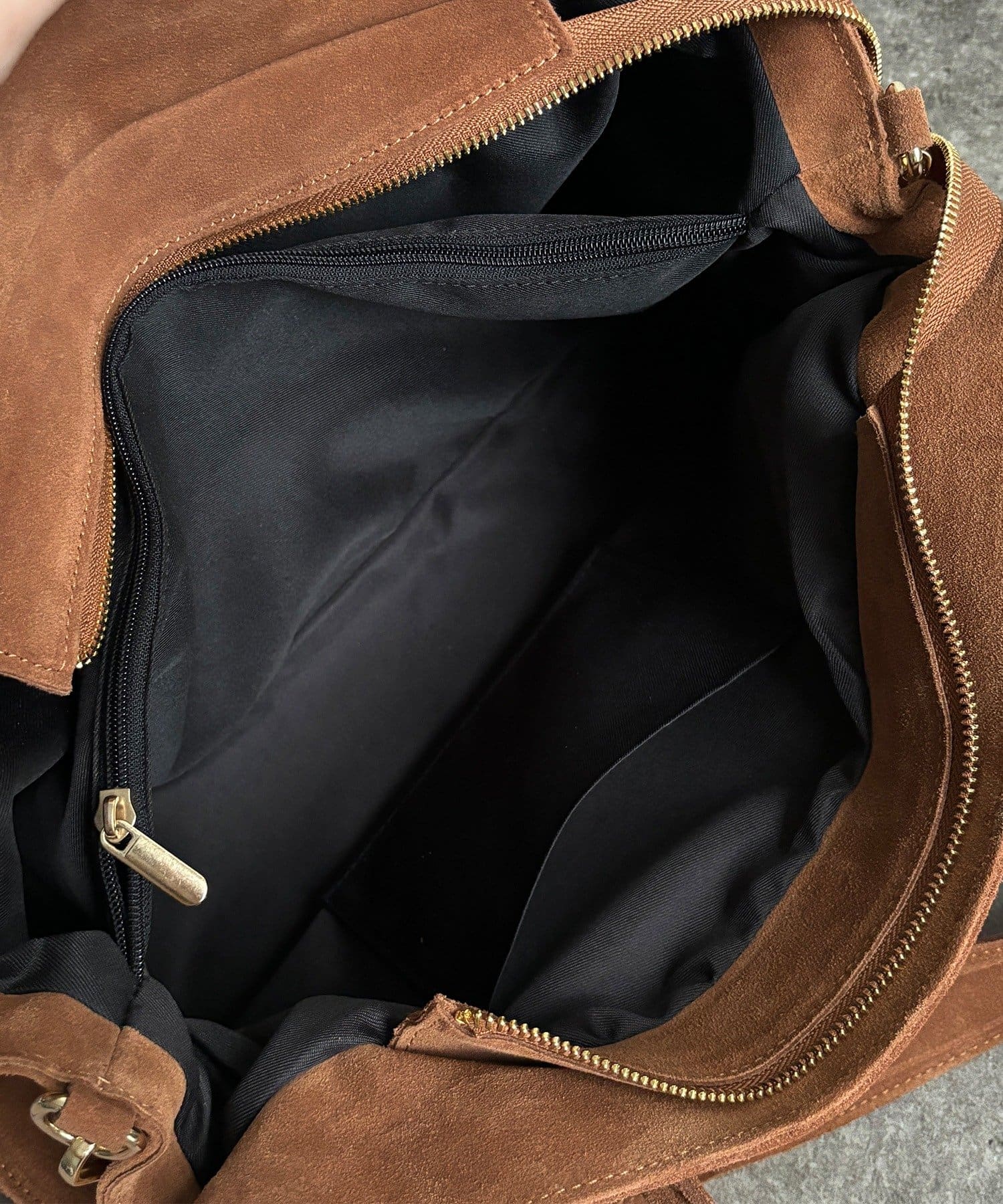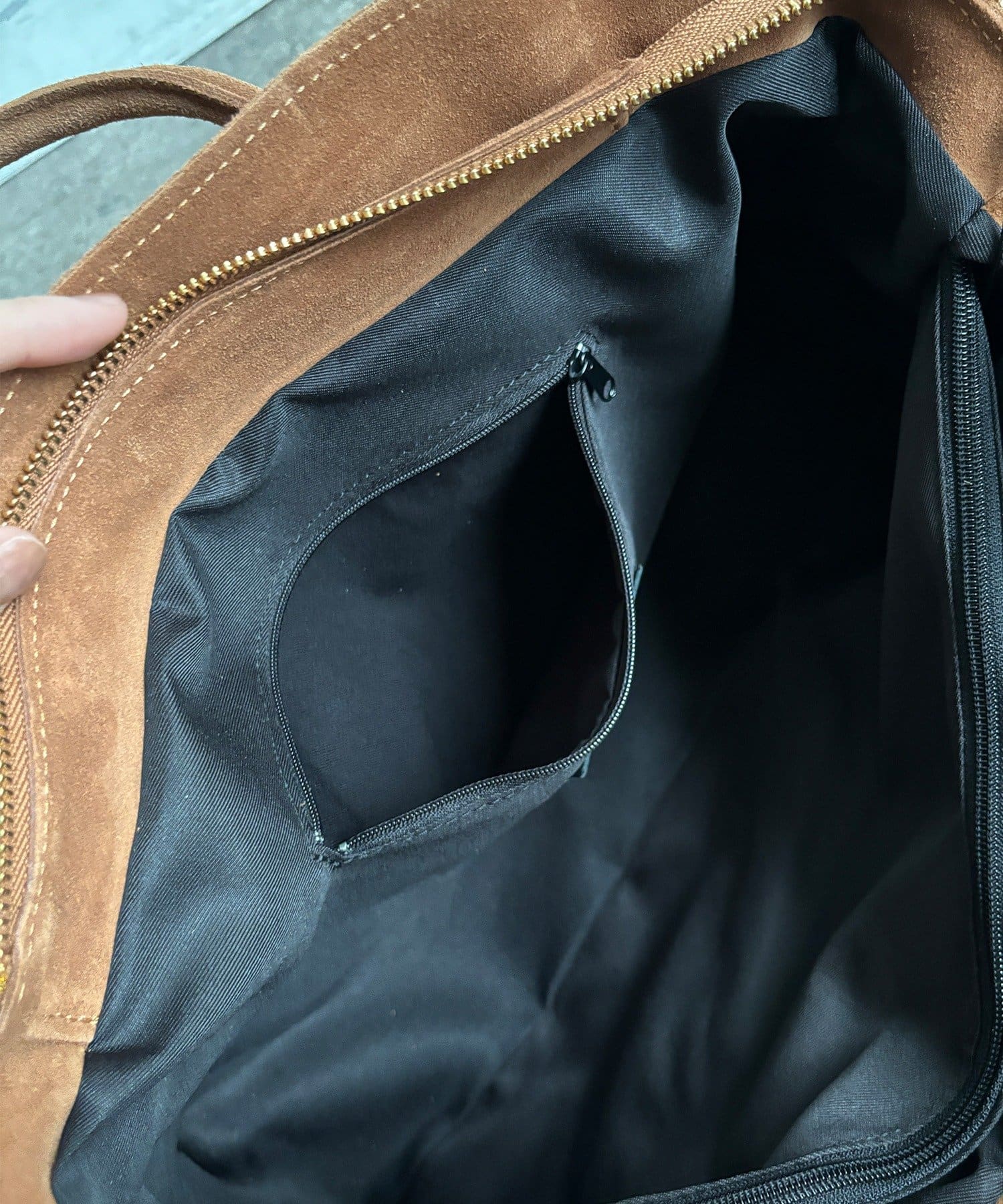 こなれ感のあるスウェード調のバッグ。