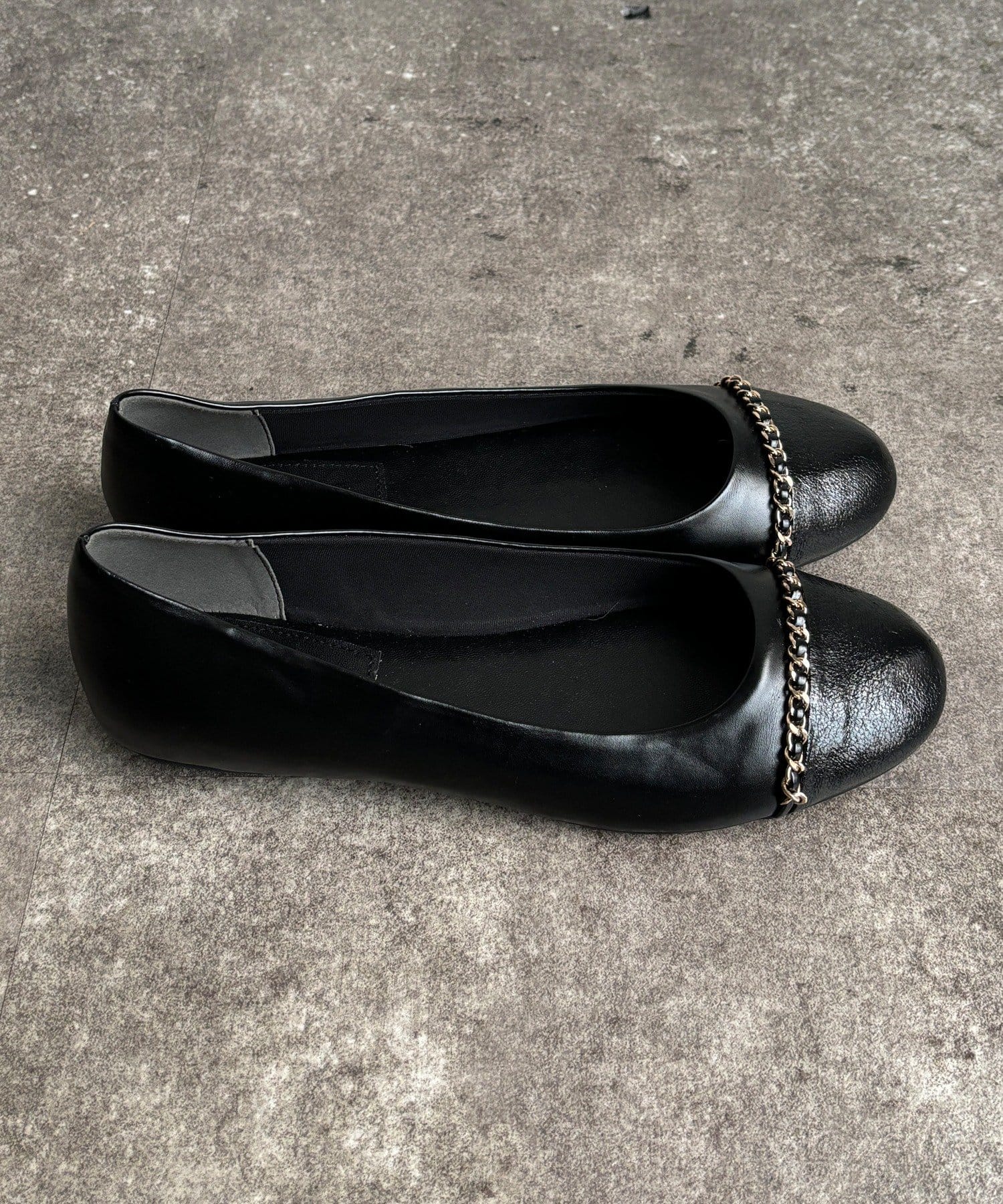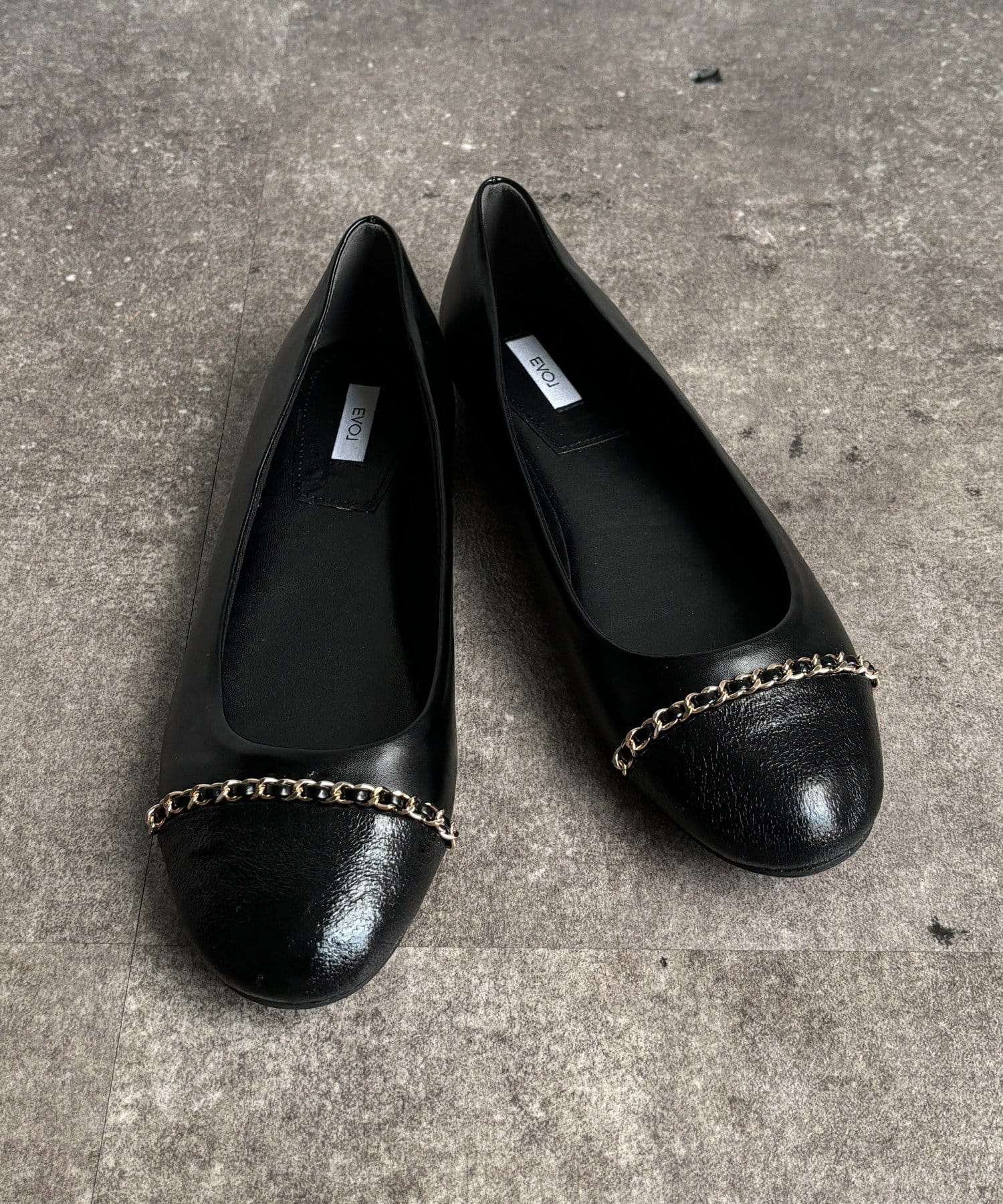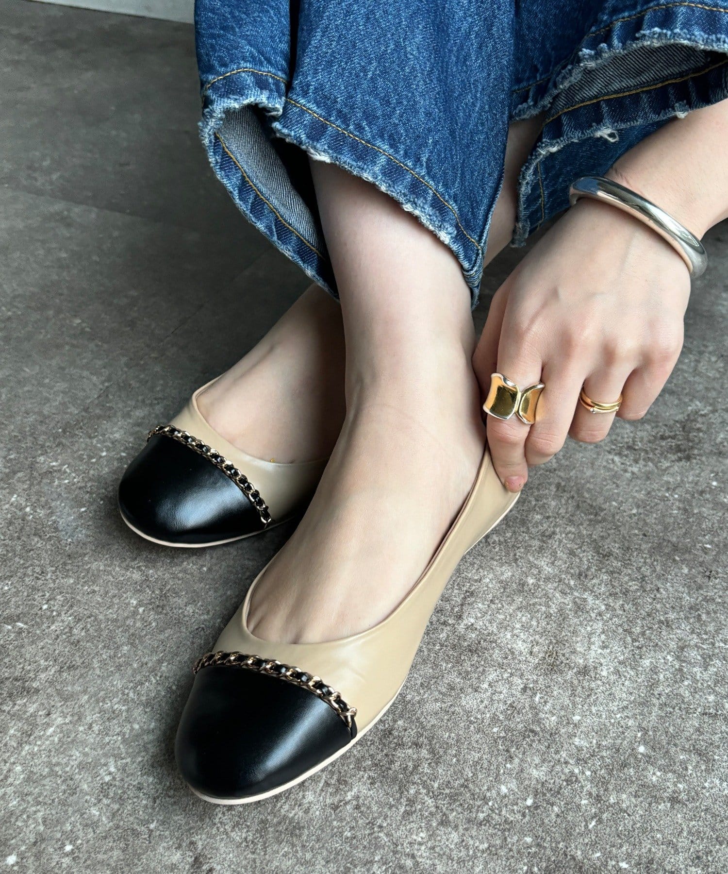 シンプルなフォルムに、チェーンディテールが映えるデザイン。
