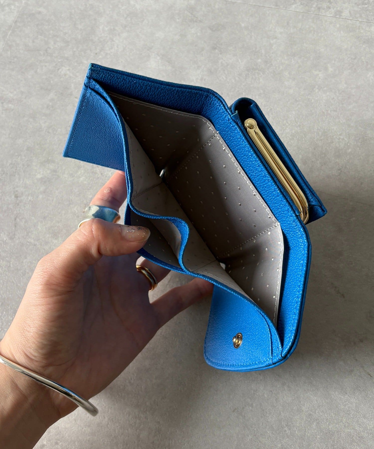 がま口仕様の小銭入れは中身が見やすく、開閉もスムーズ。口が大きく開くため、小銭の出し入れがしやすく使い勝手も抜群です。