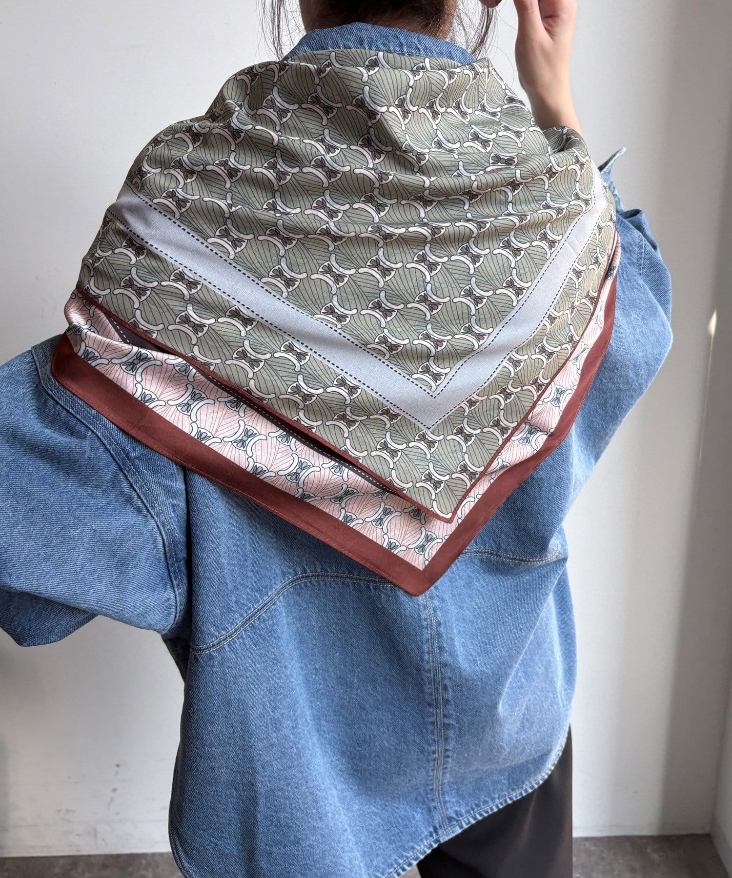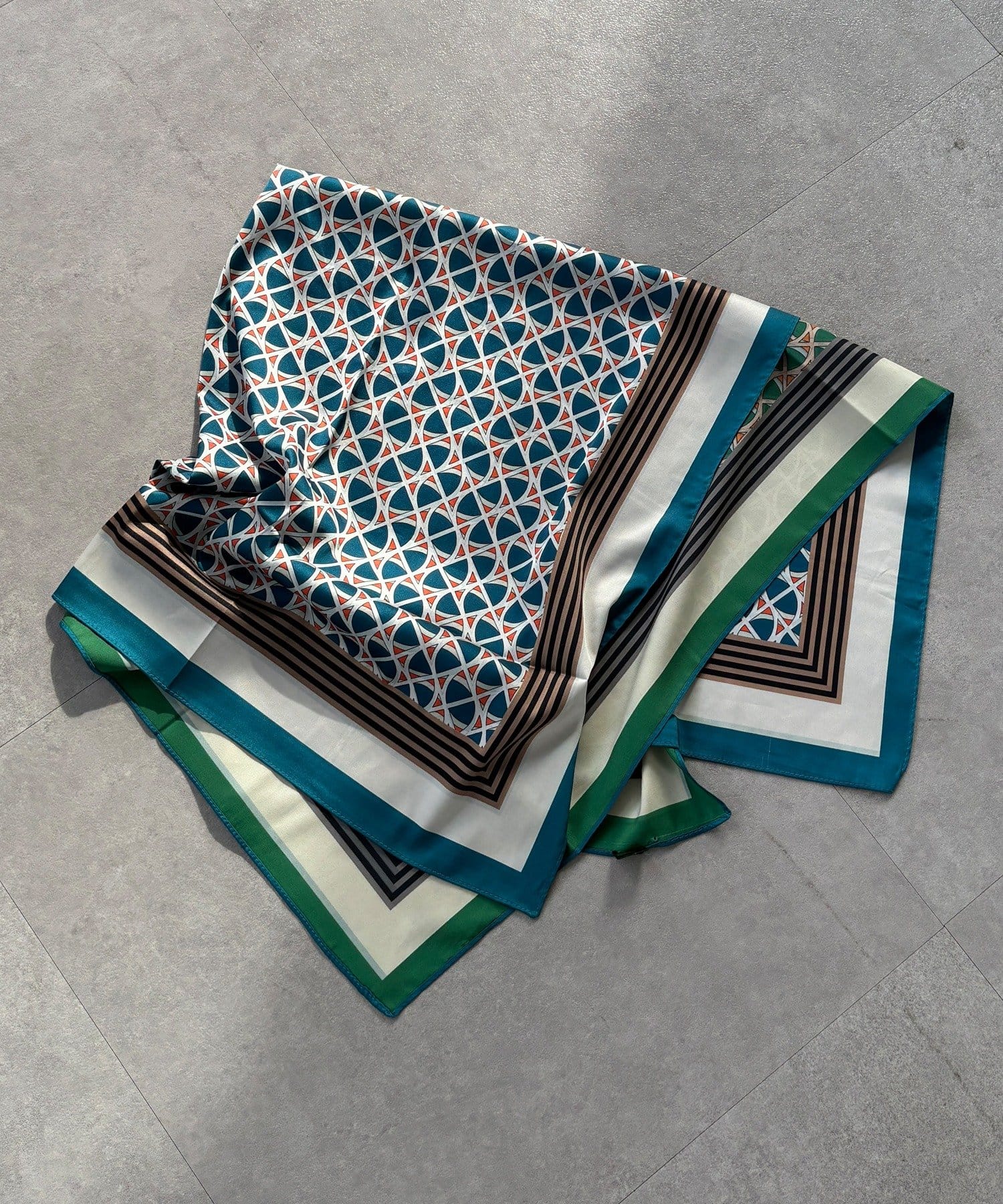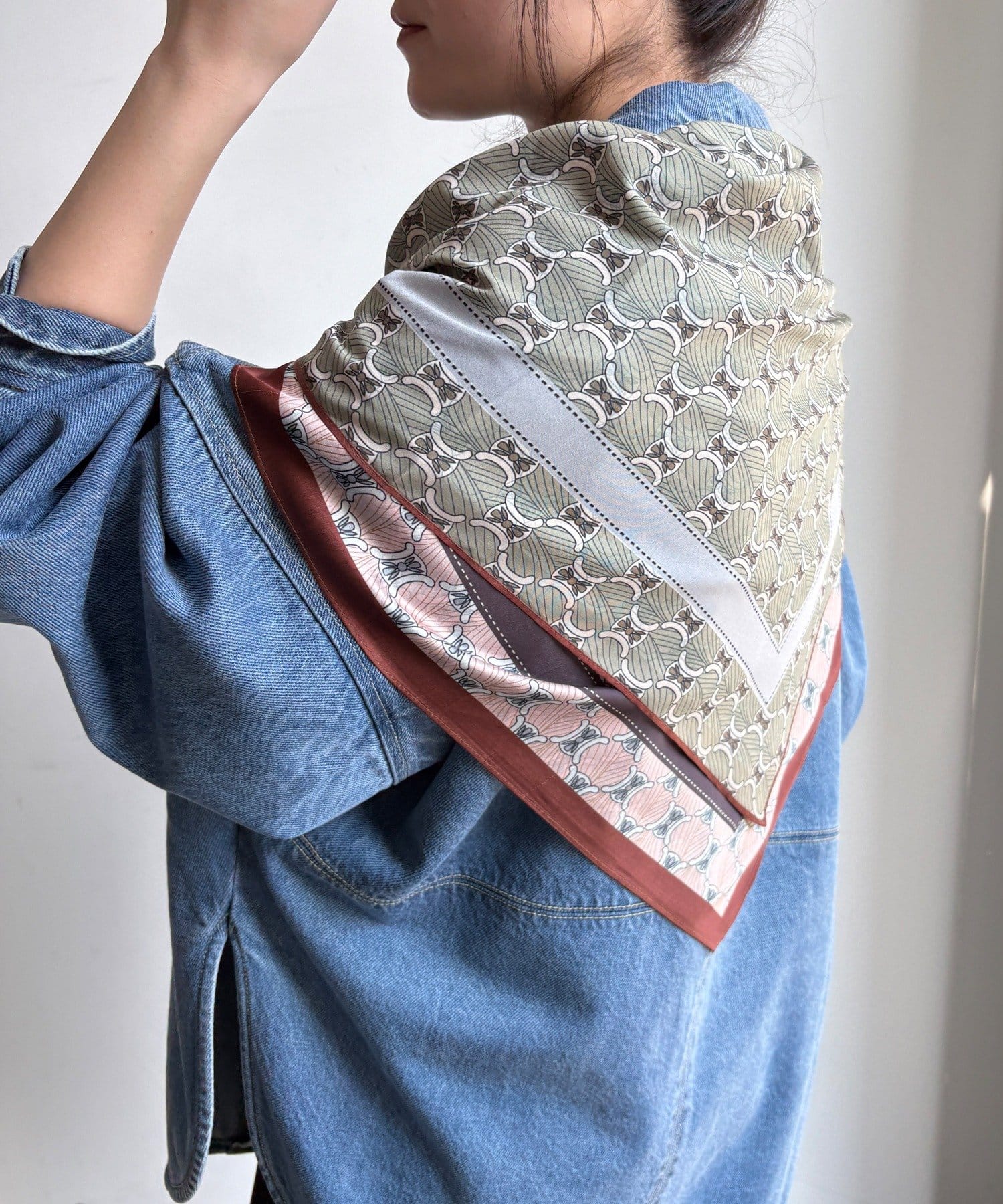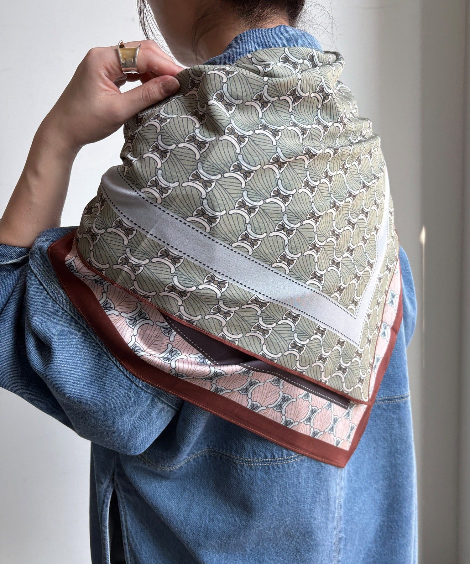 アレンジ自在に楽しめる。リバーシブル幾何柄スカーフ