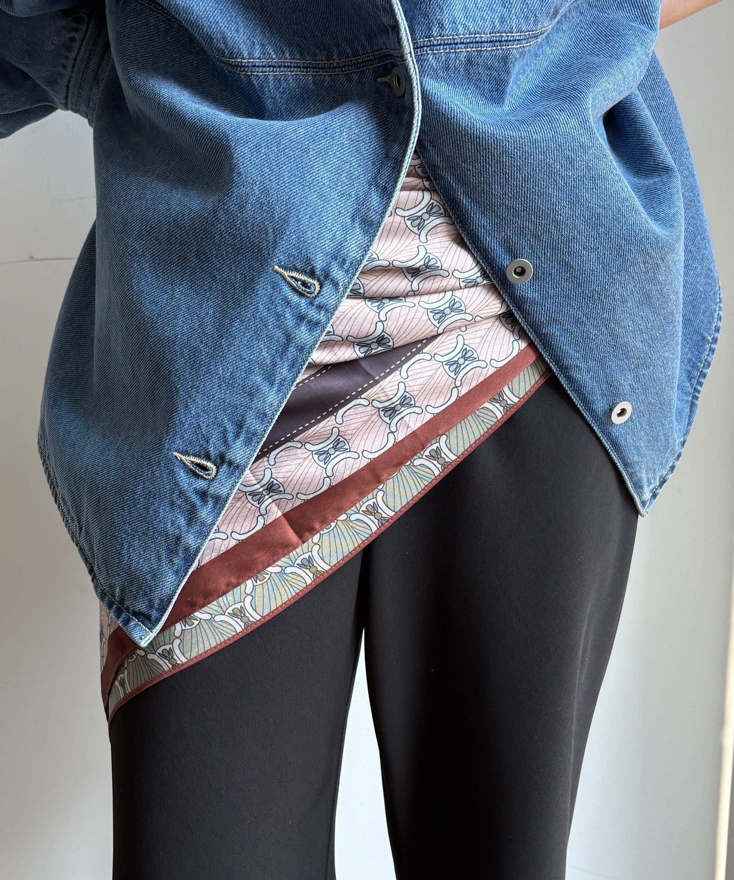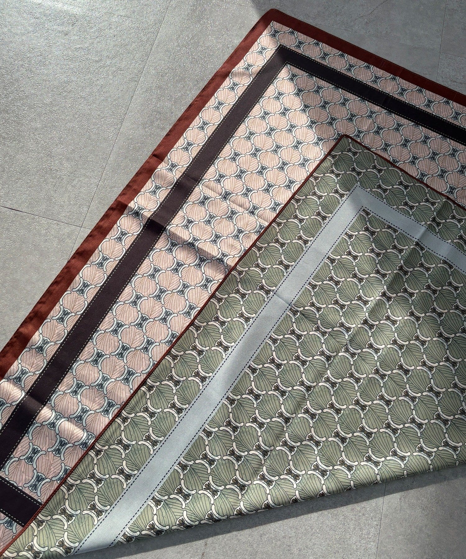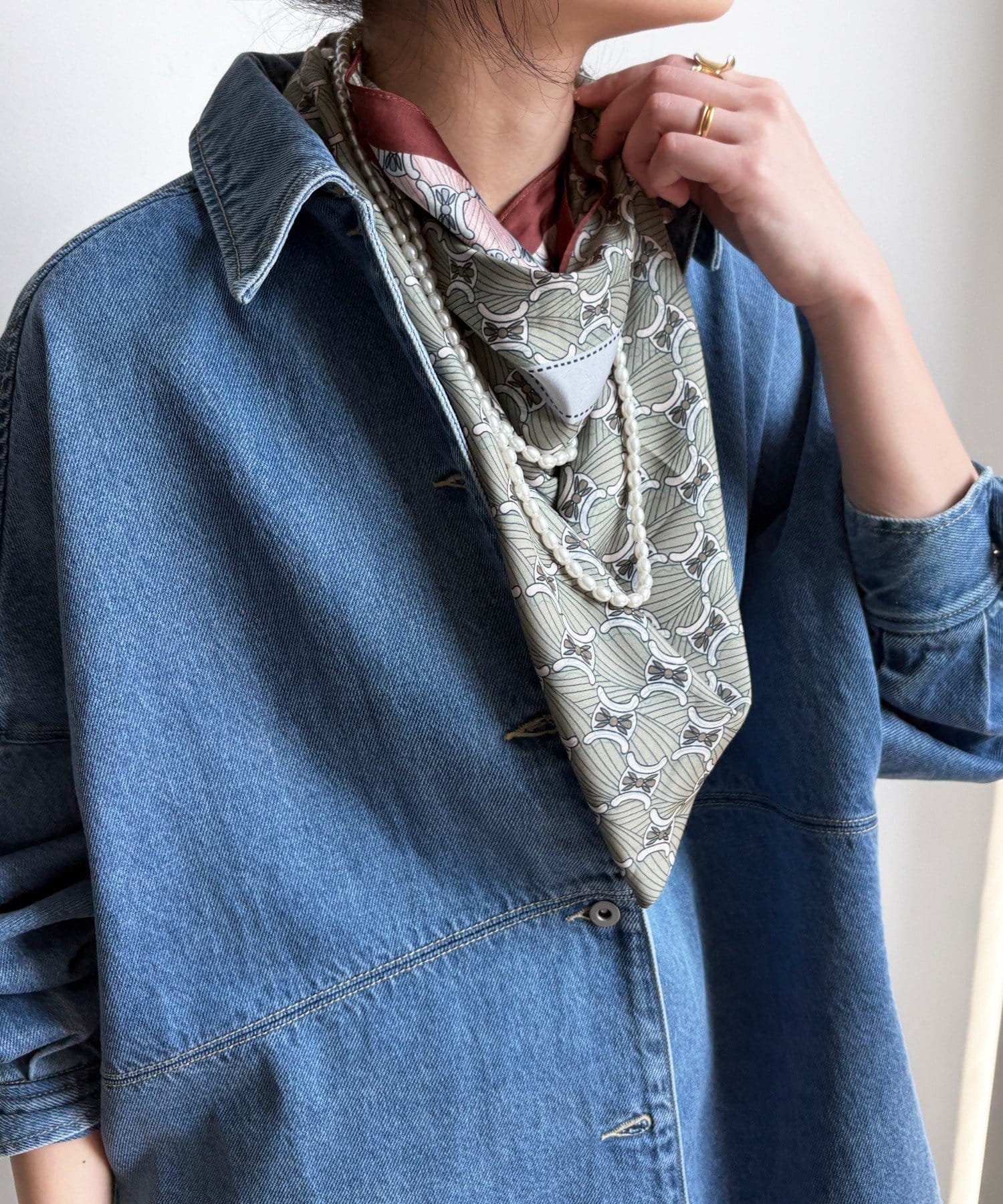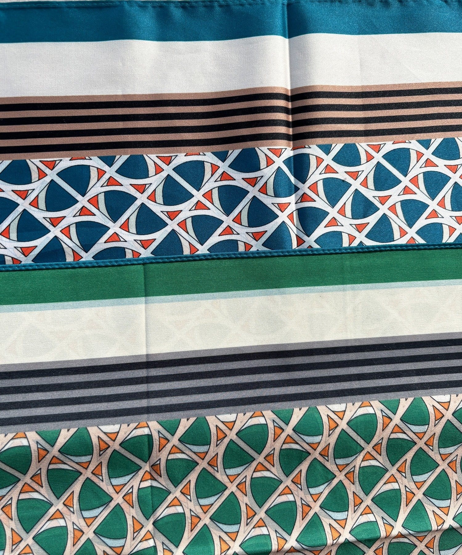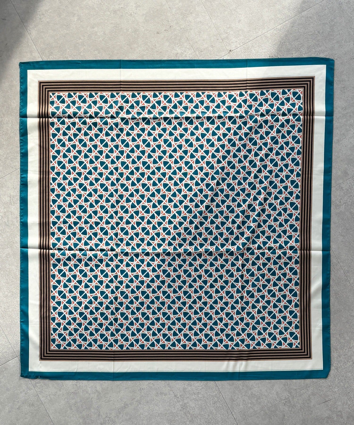 アレンジ自在に楽しめる。リバーシブル幾何柄スカーフ
