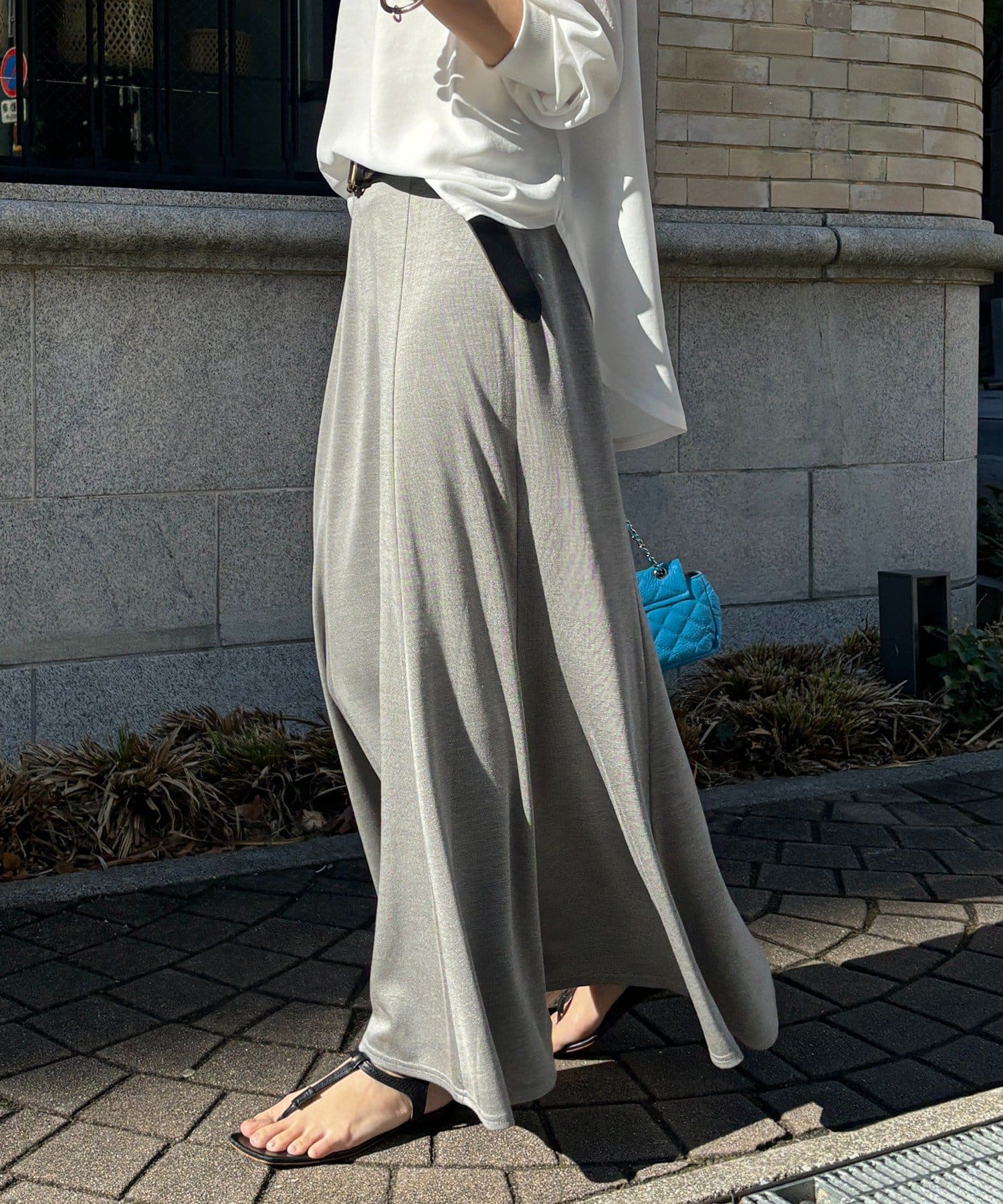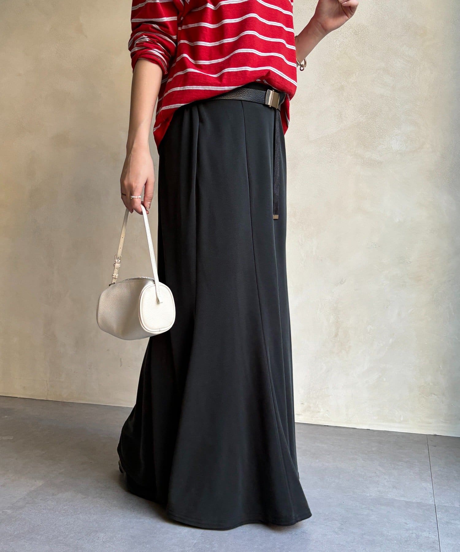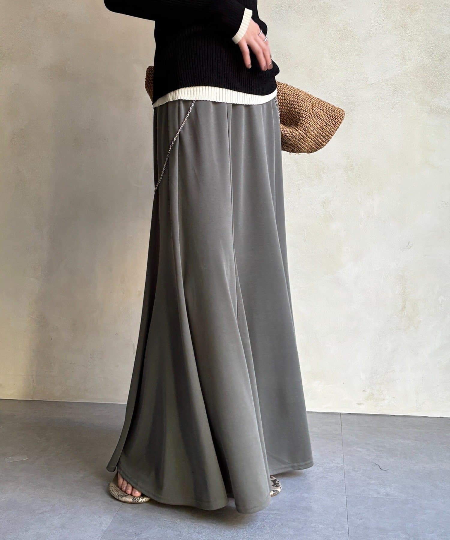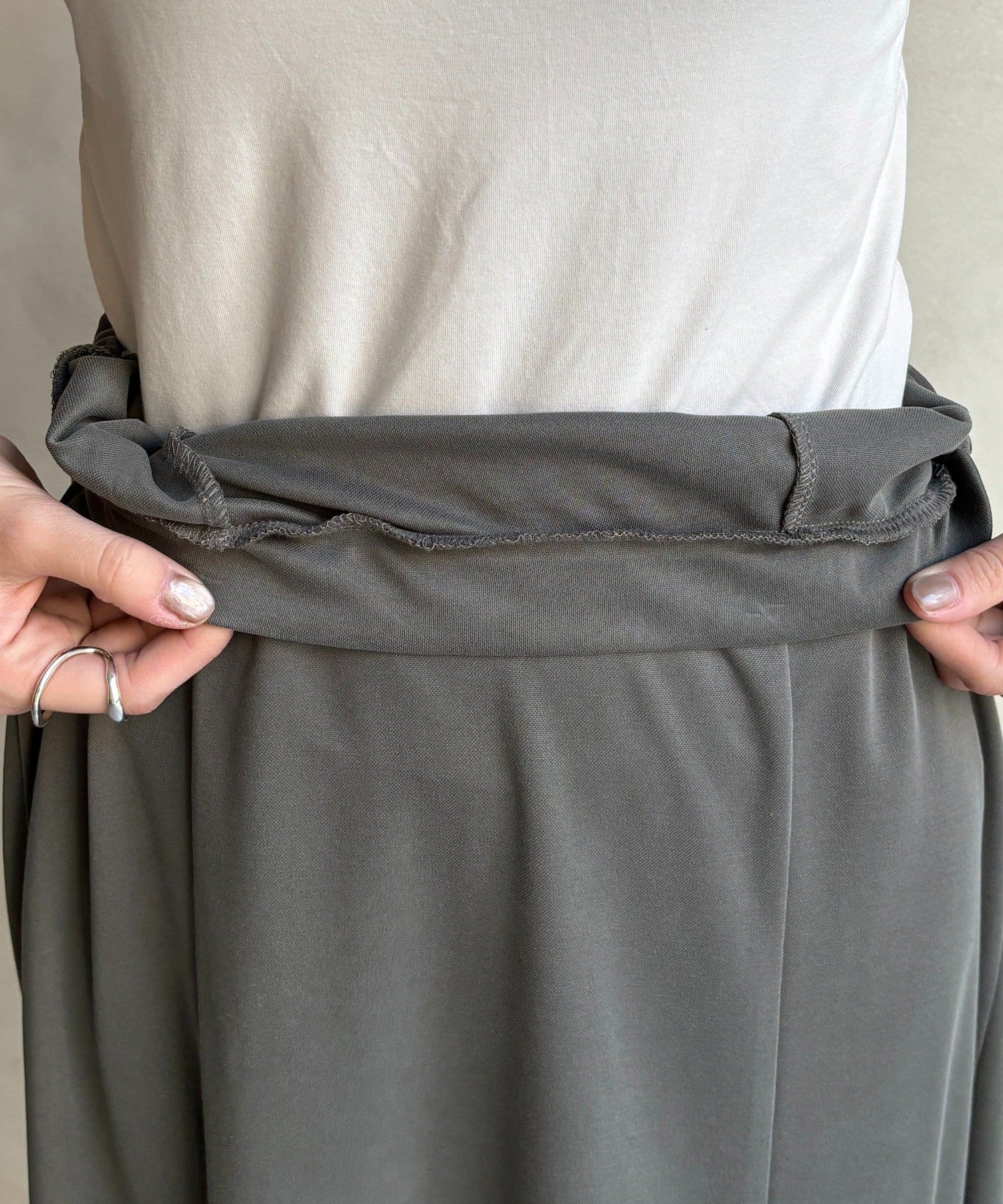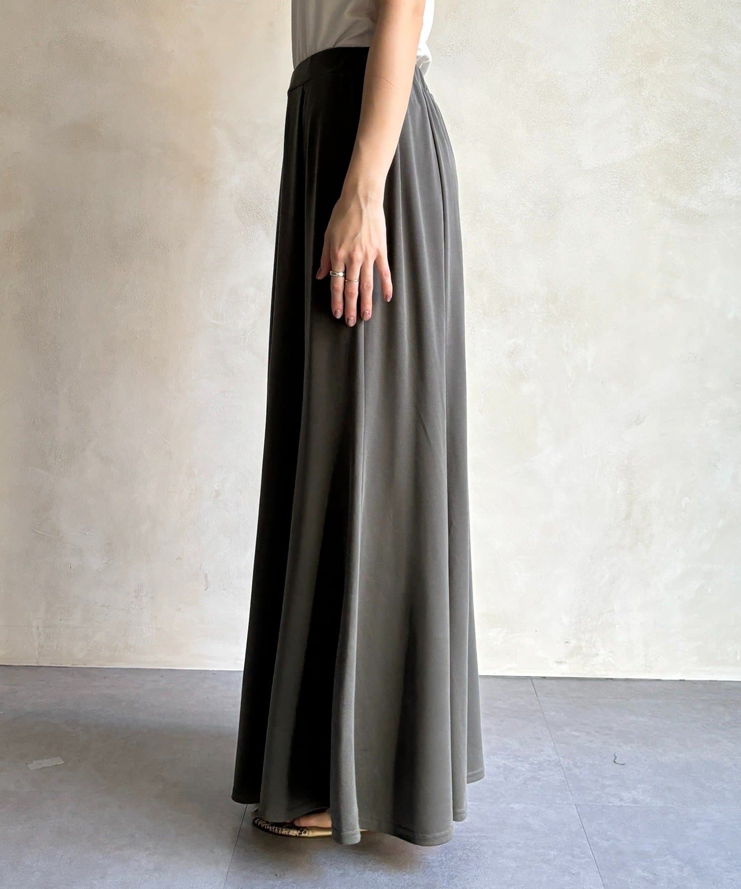 しなやかな落ち感と、計算されたシルエットが魅力のスカート。