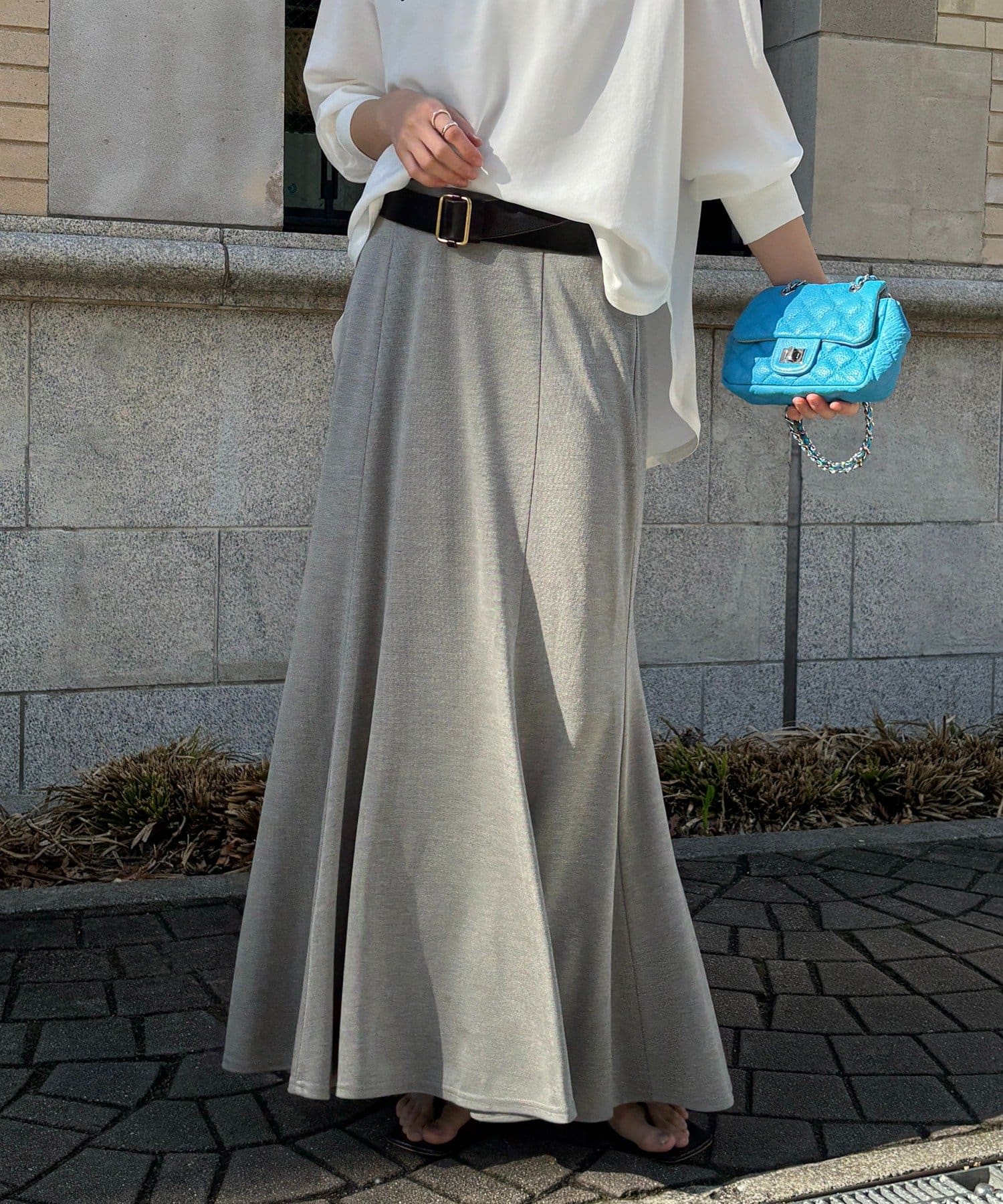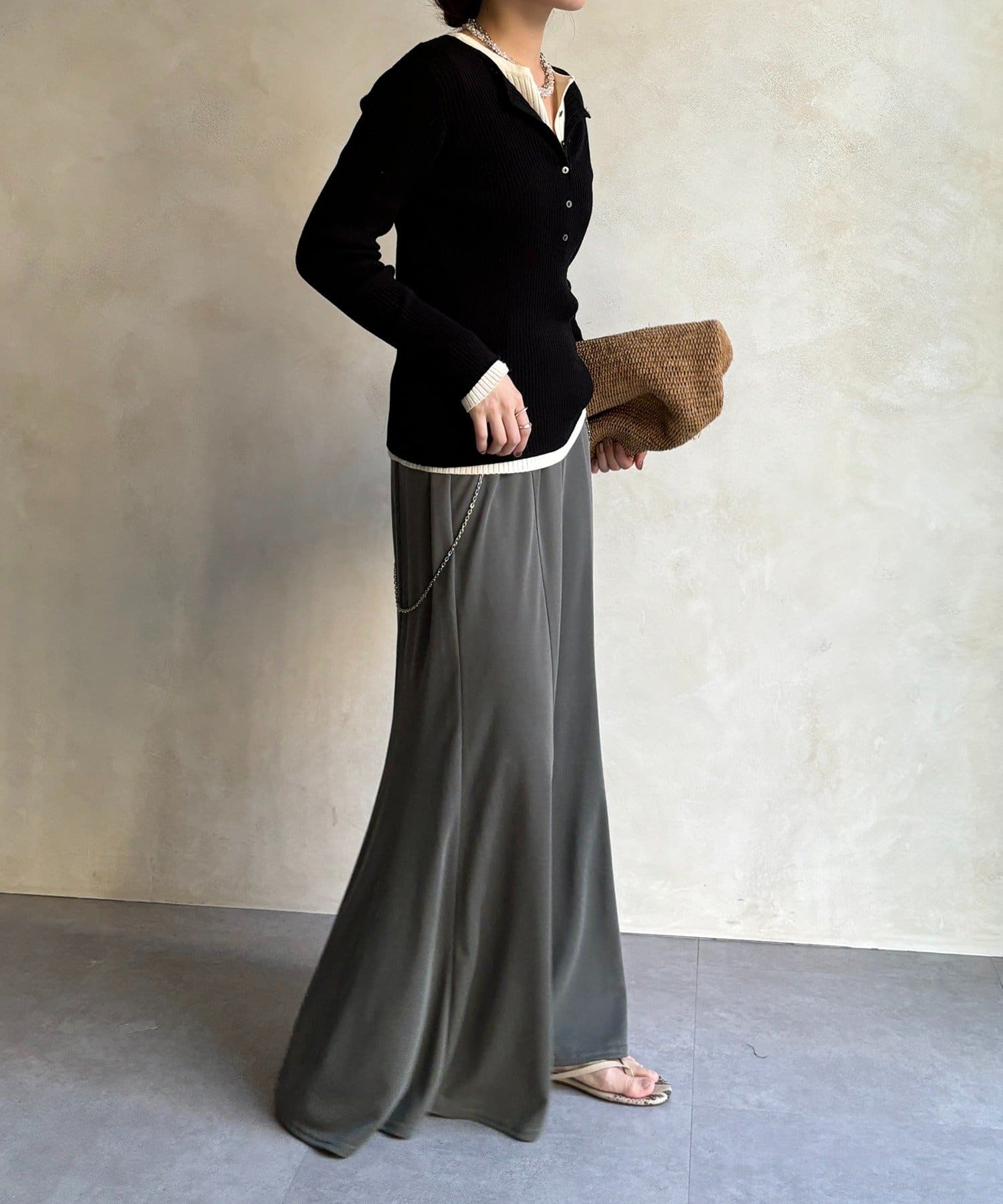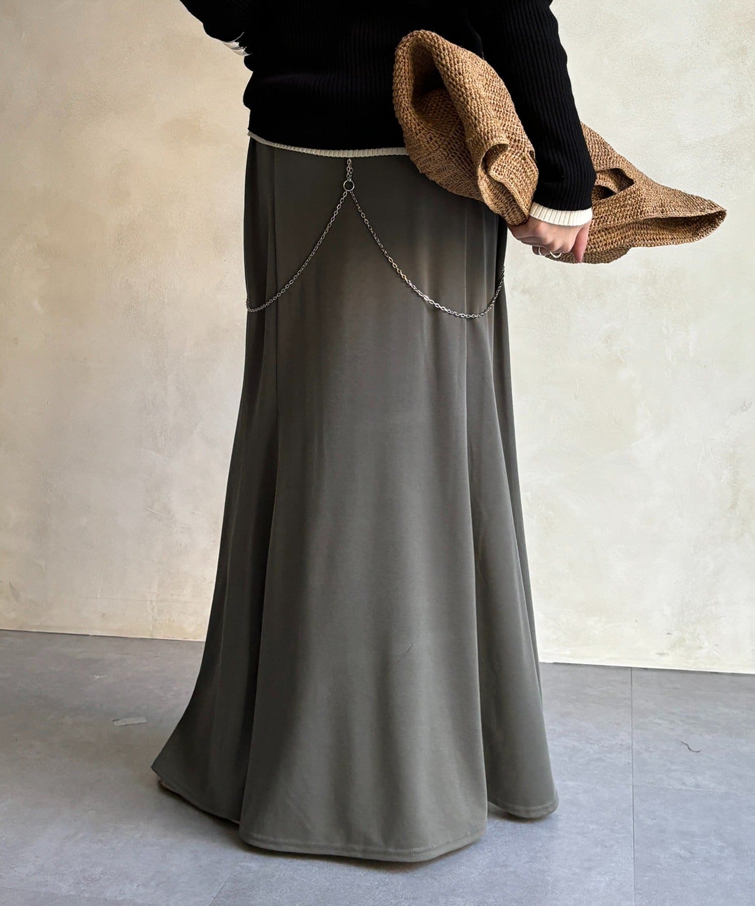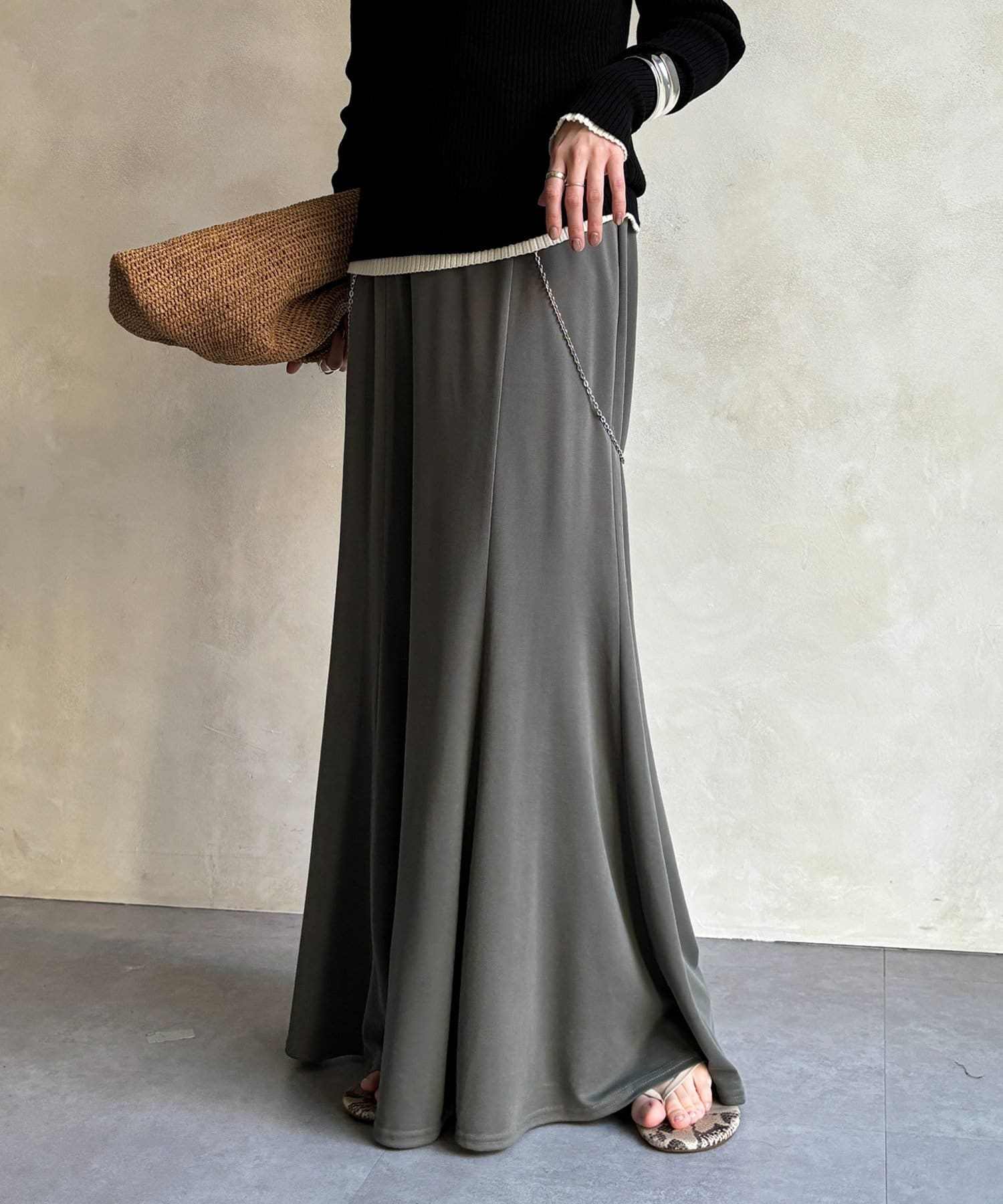 しなやかな落ち感と、計算されたシルエットが魅力のスカート。
