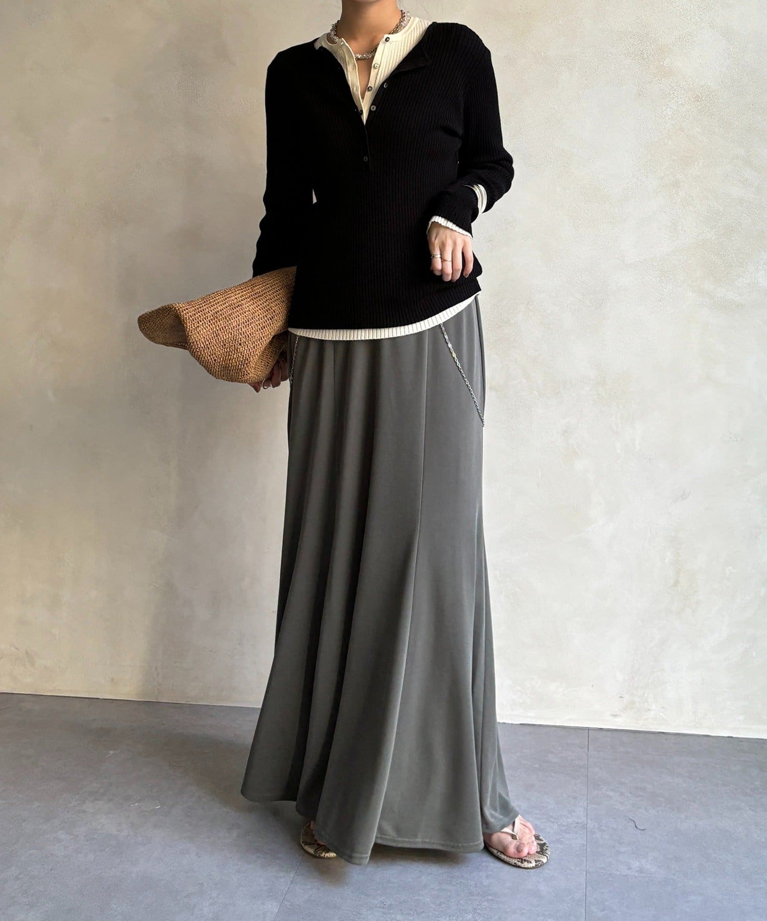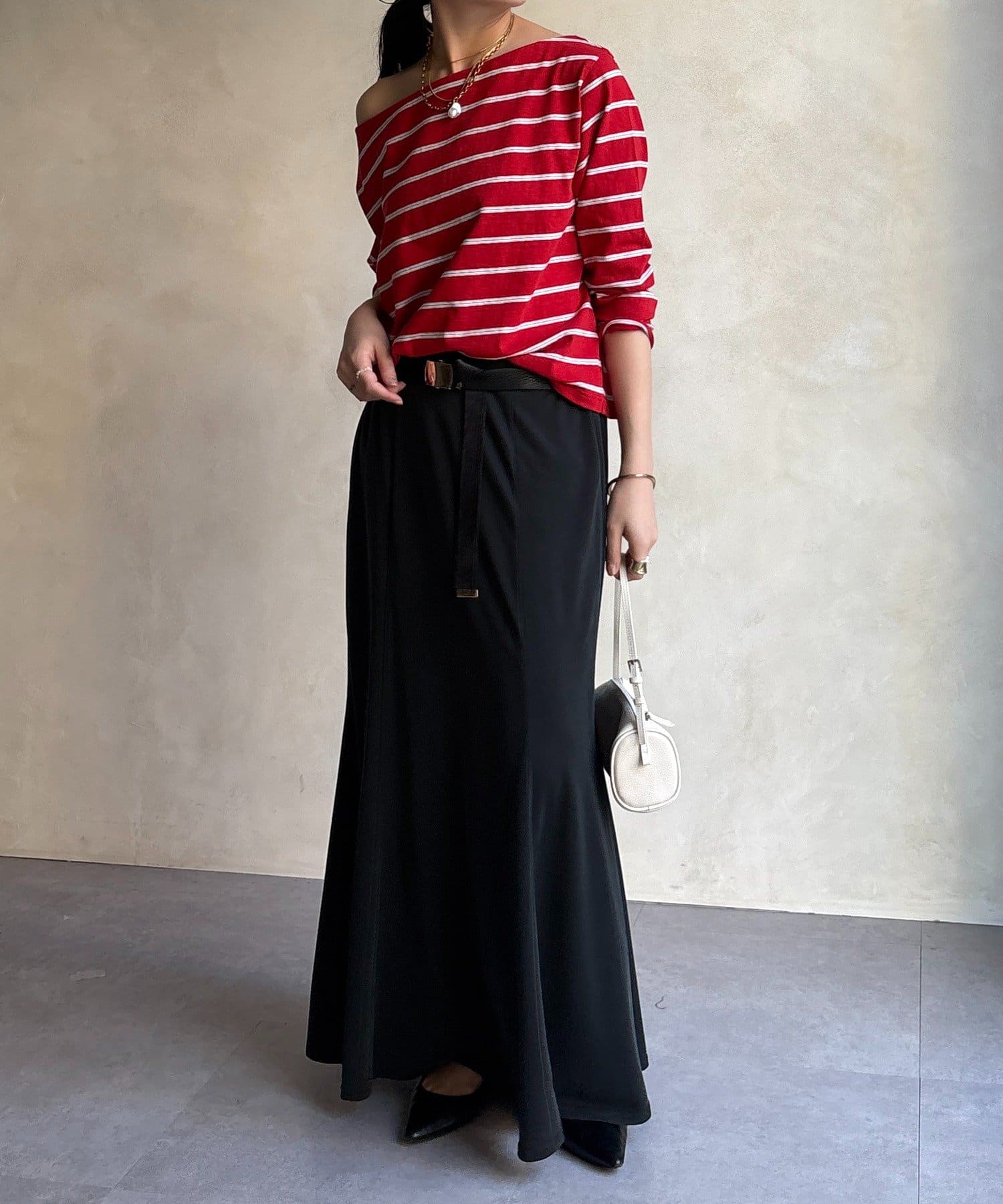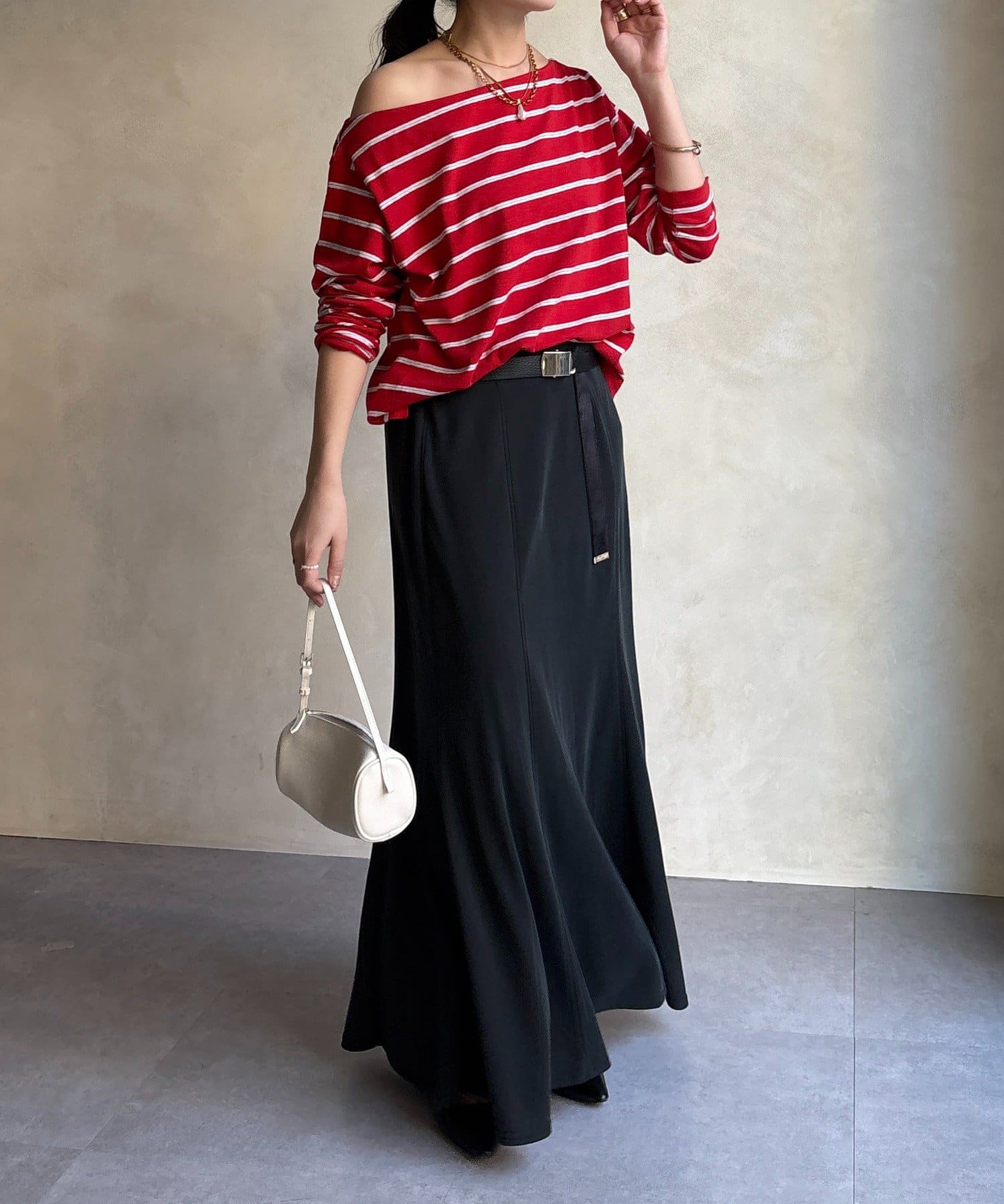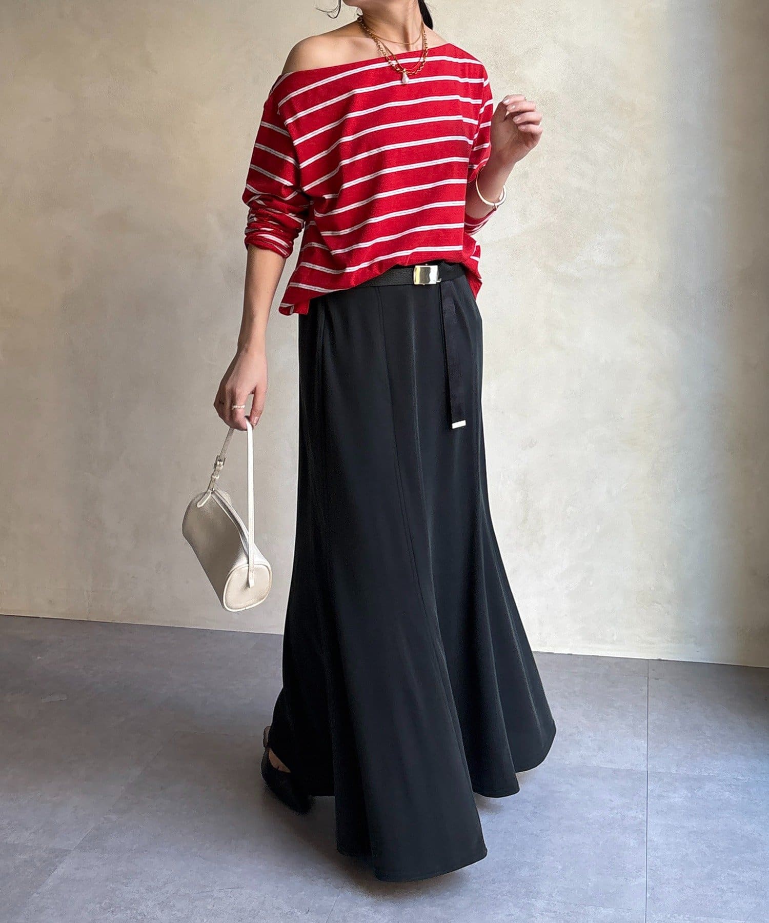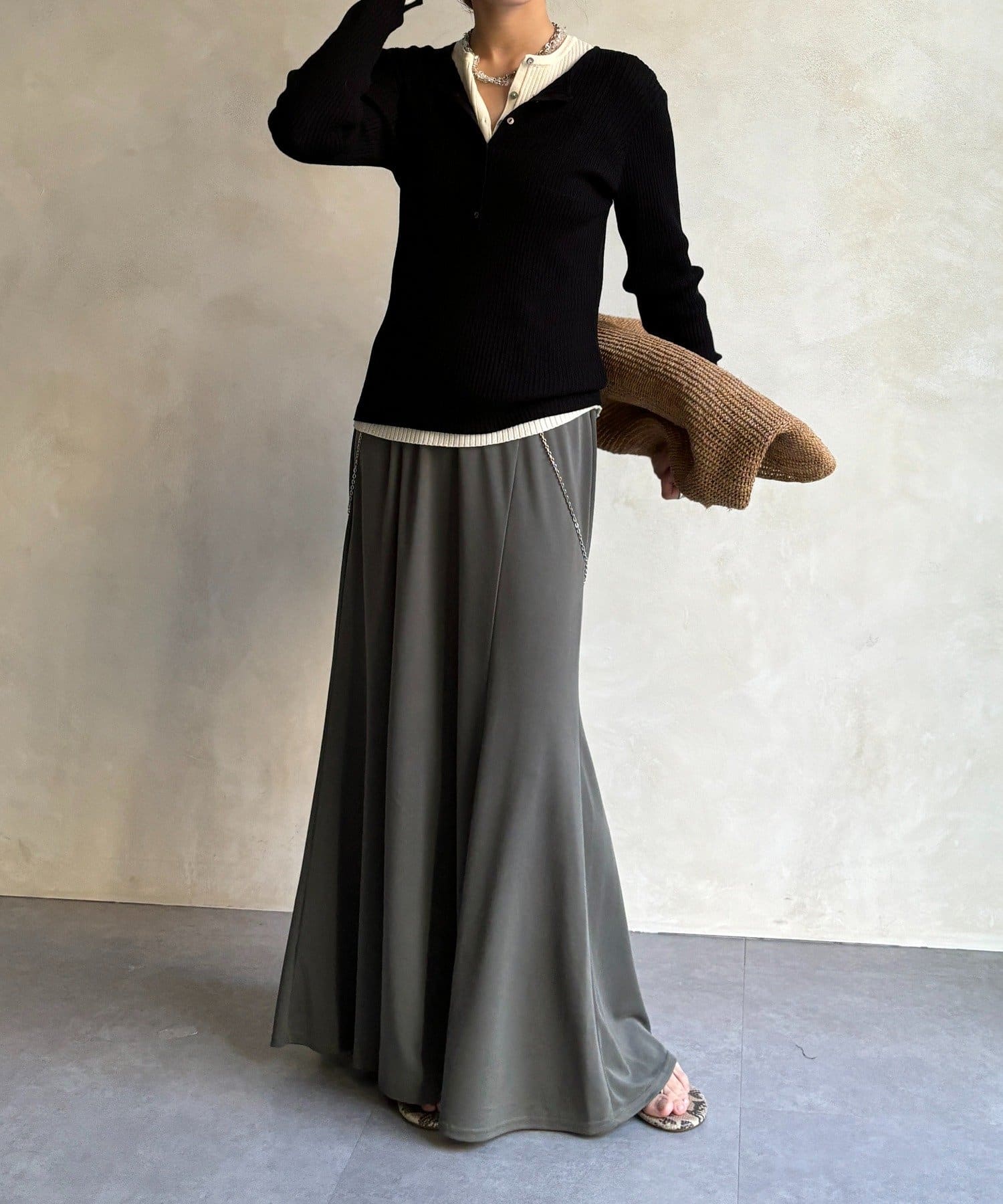 しなやかな落ち感と、計算されたシルエットが魅力のスカート。