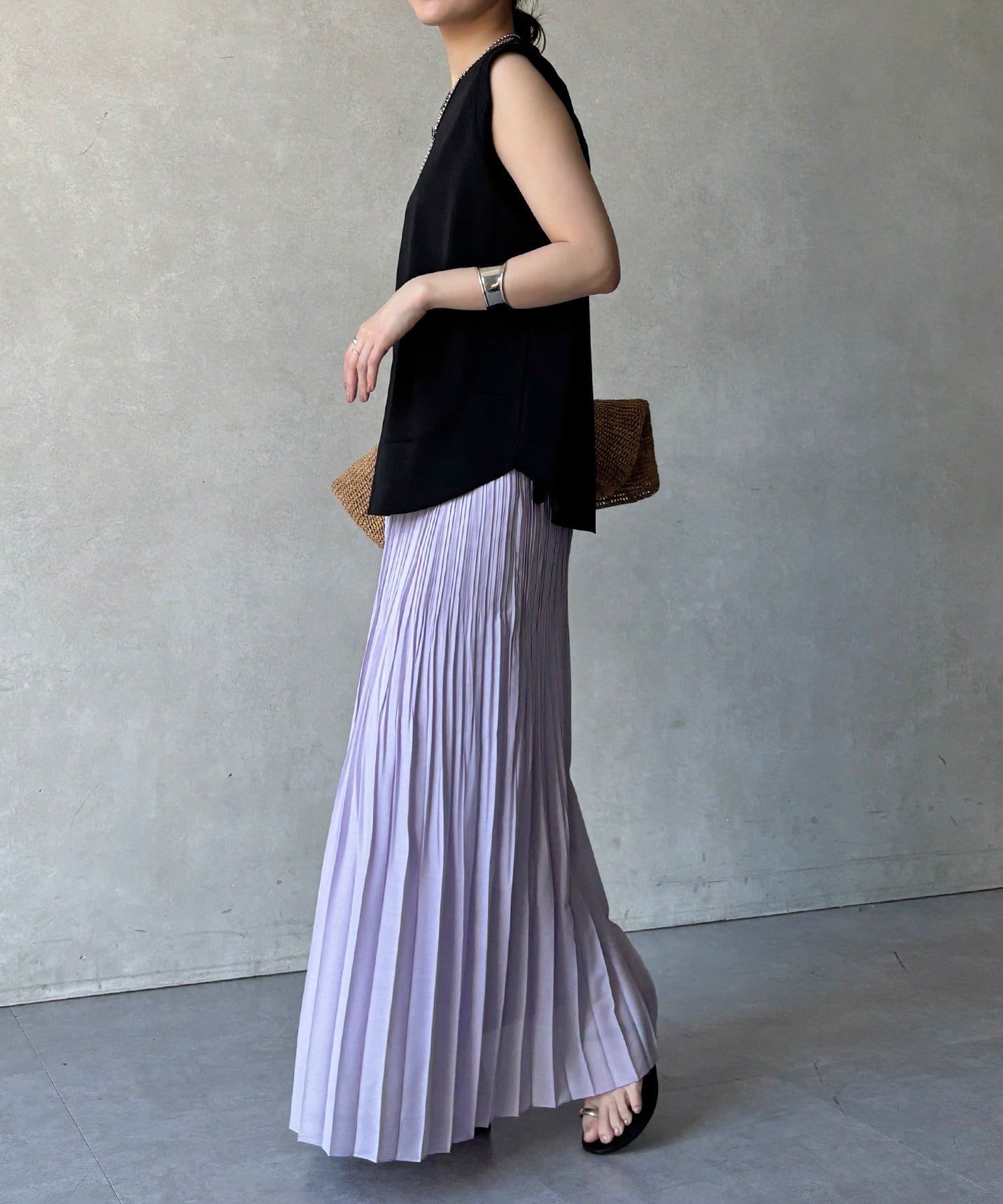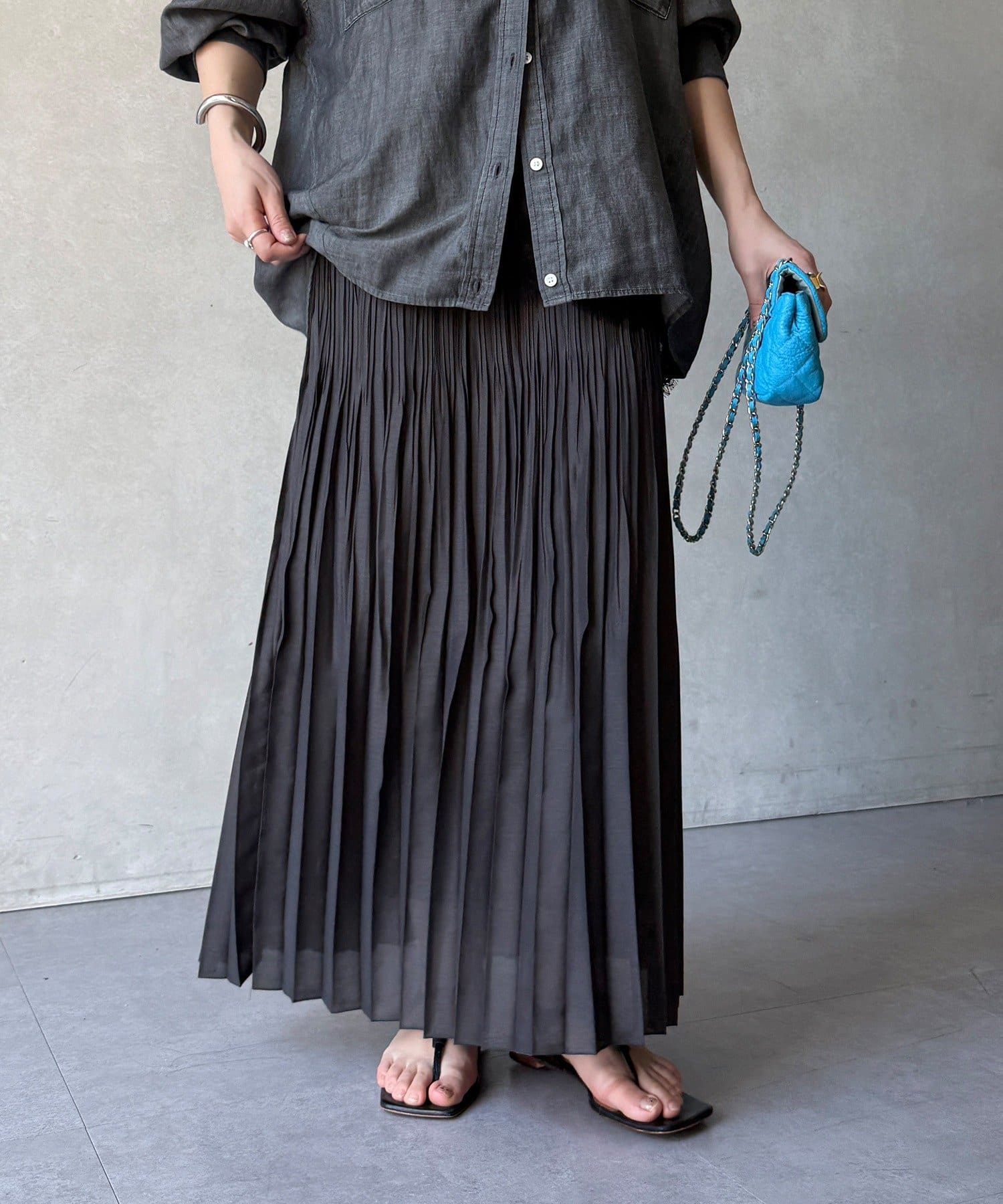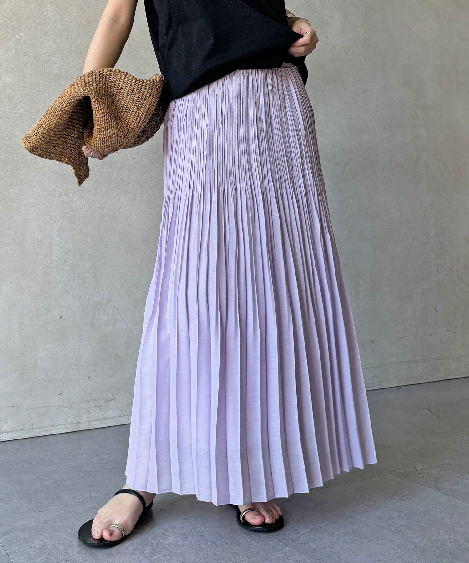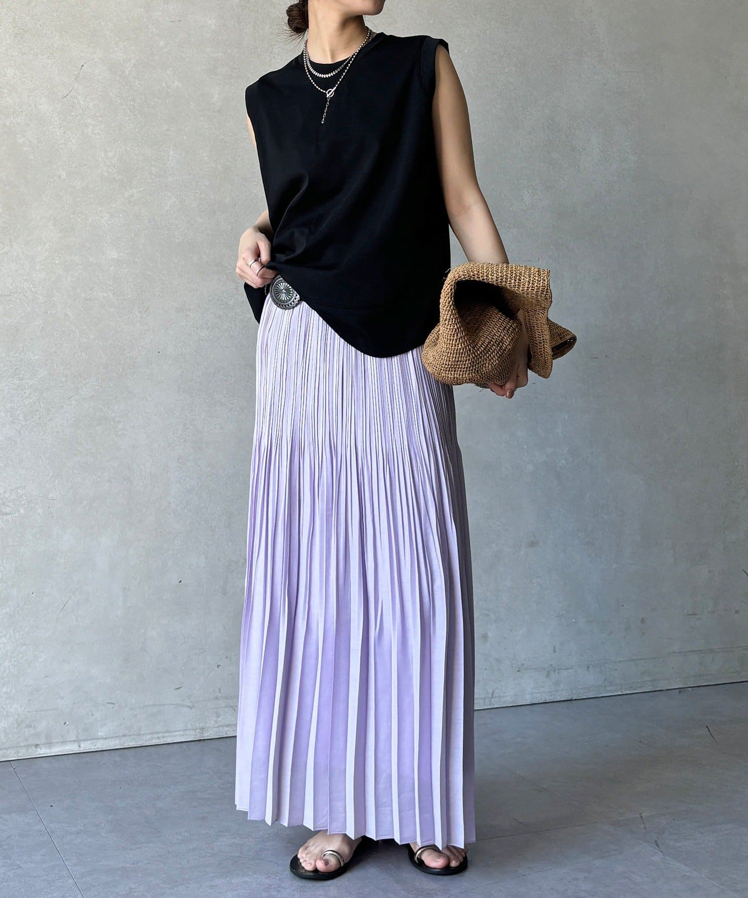 ランダムプリーツで絶妙なシアー感のあるスカート