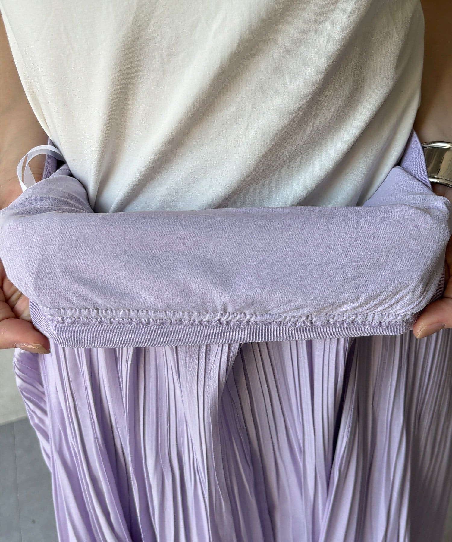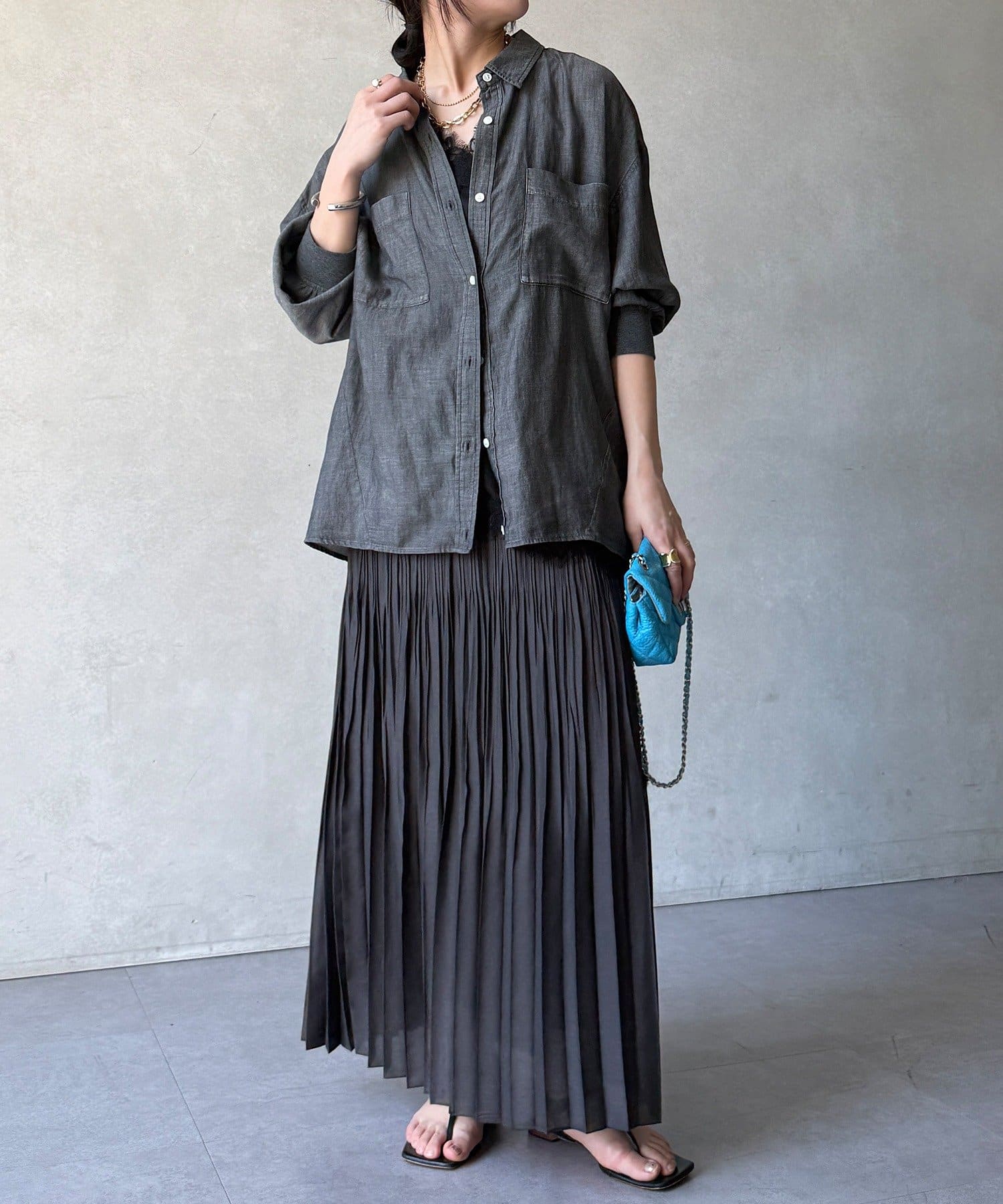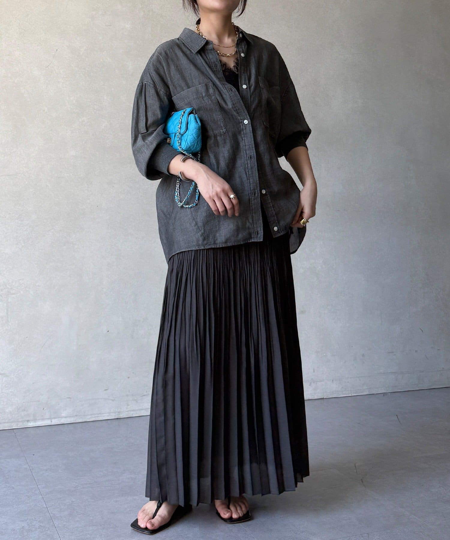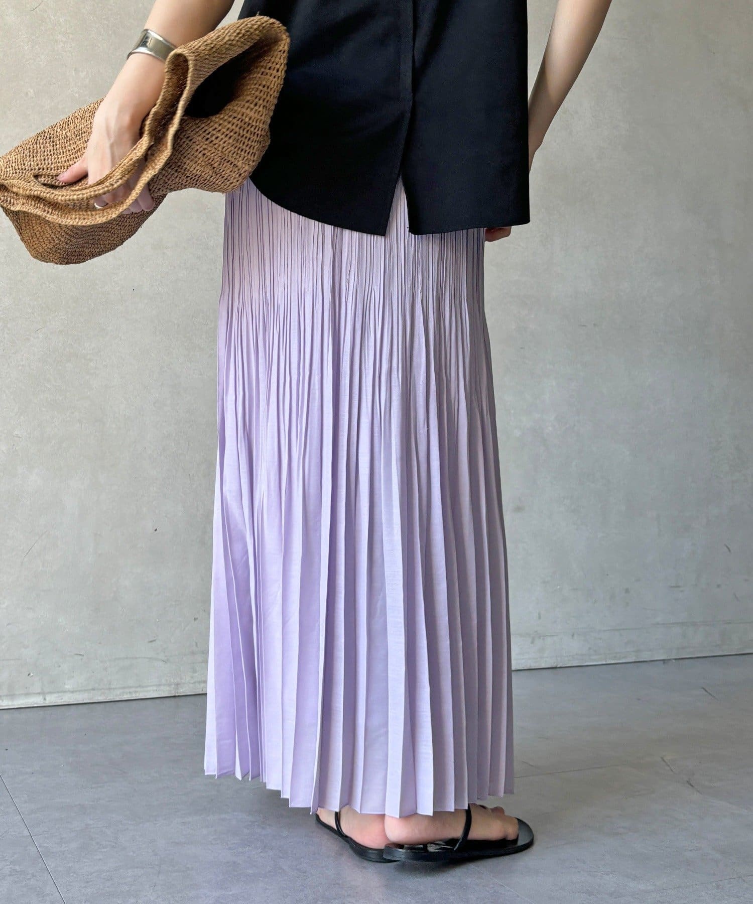 ランダムプリーツで絶妙なシアー感のあるスカート