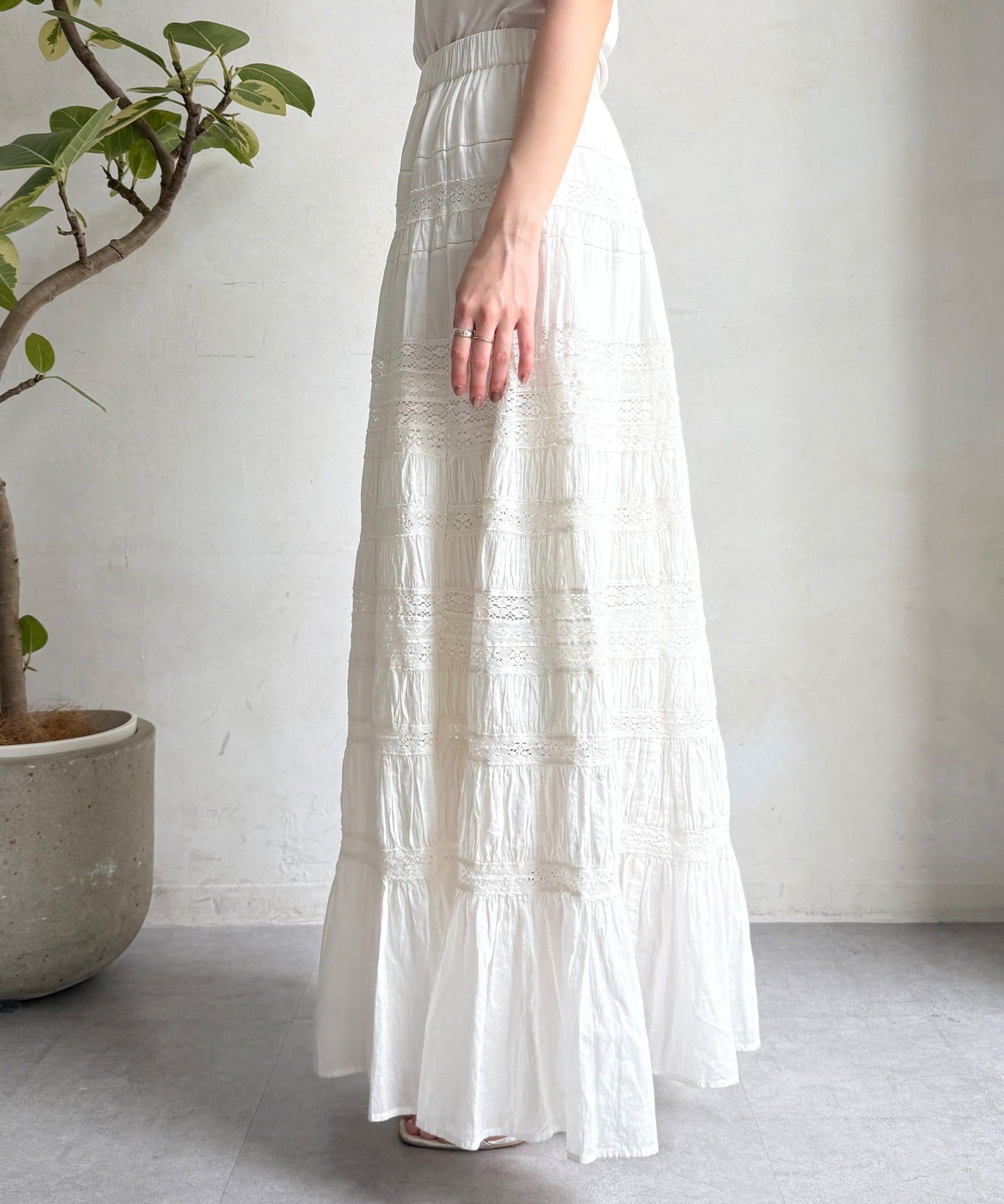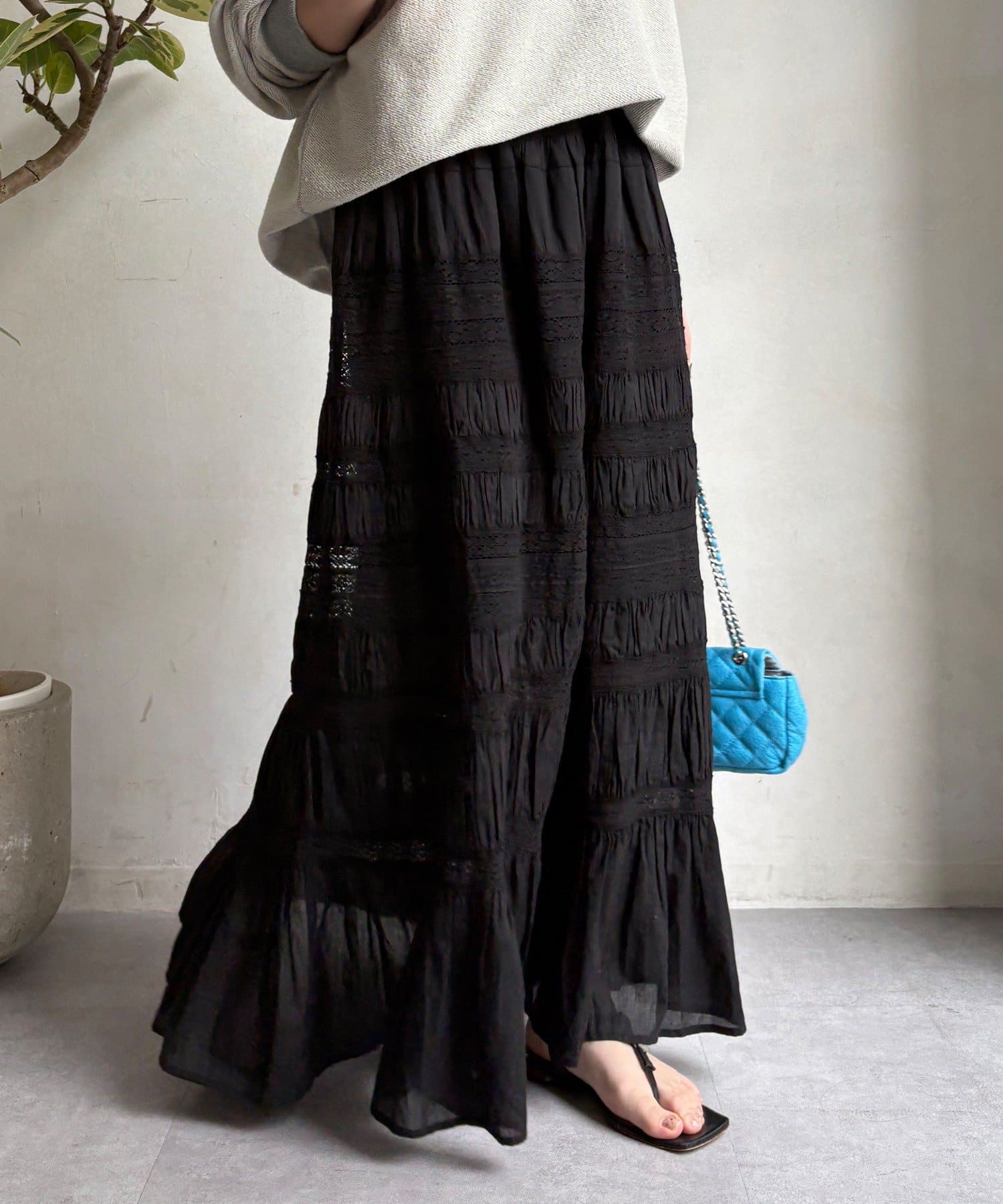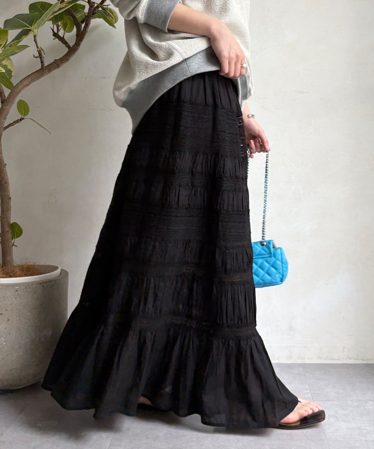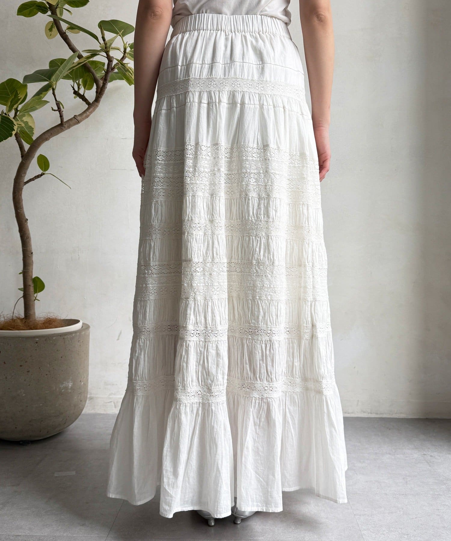 繊細なレースとティアードデザインが魅力の、インドレーススカート。