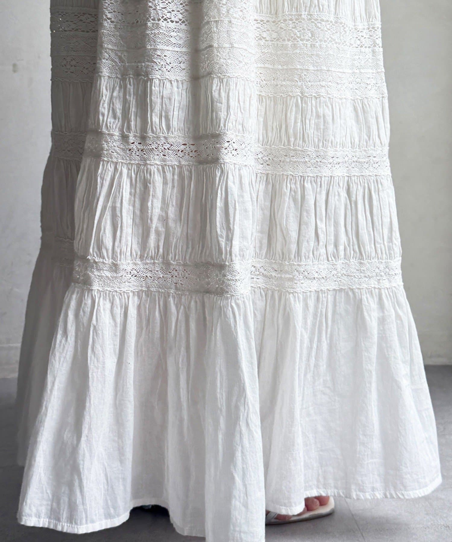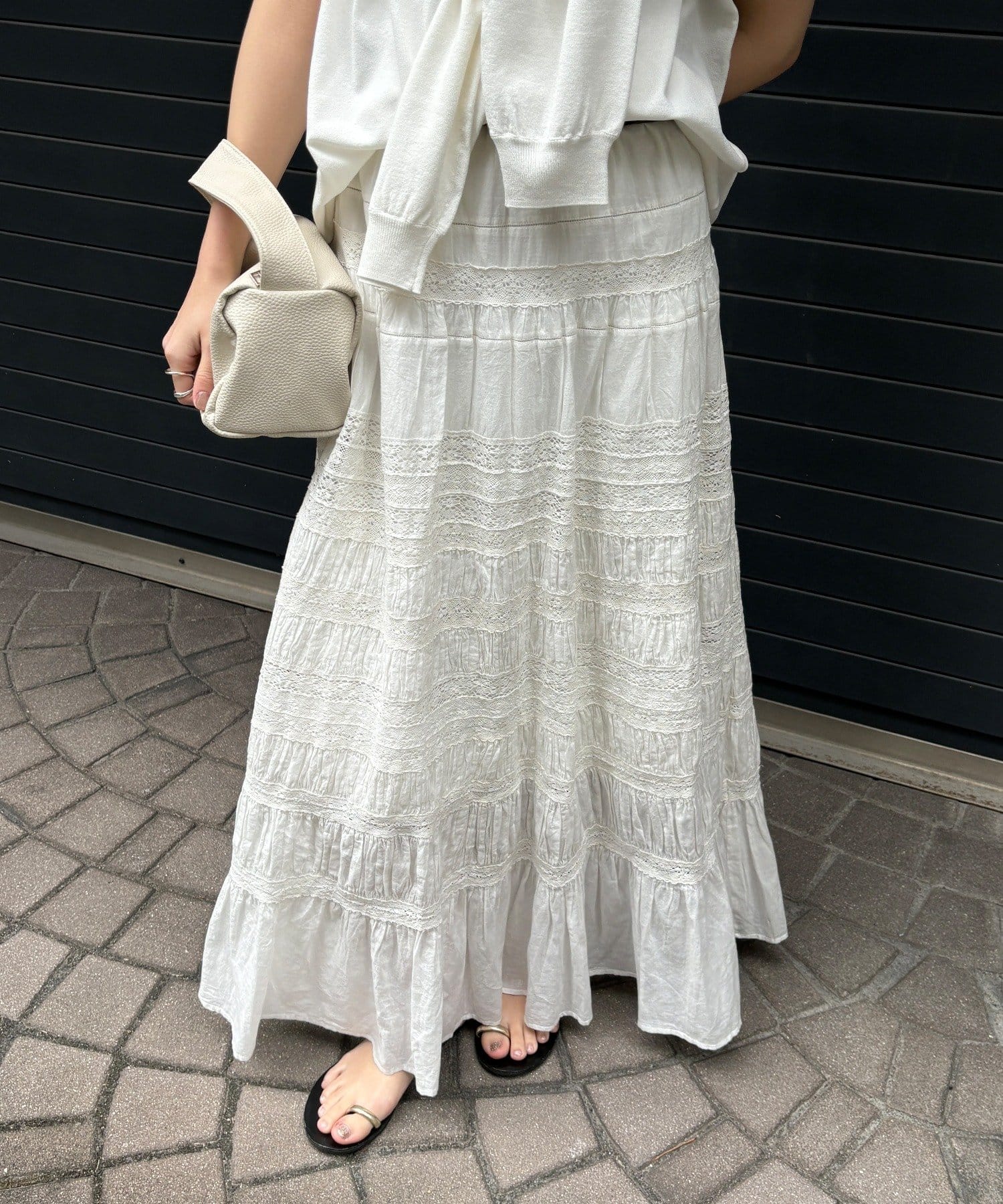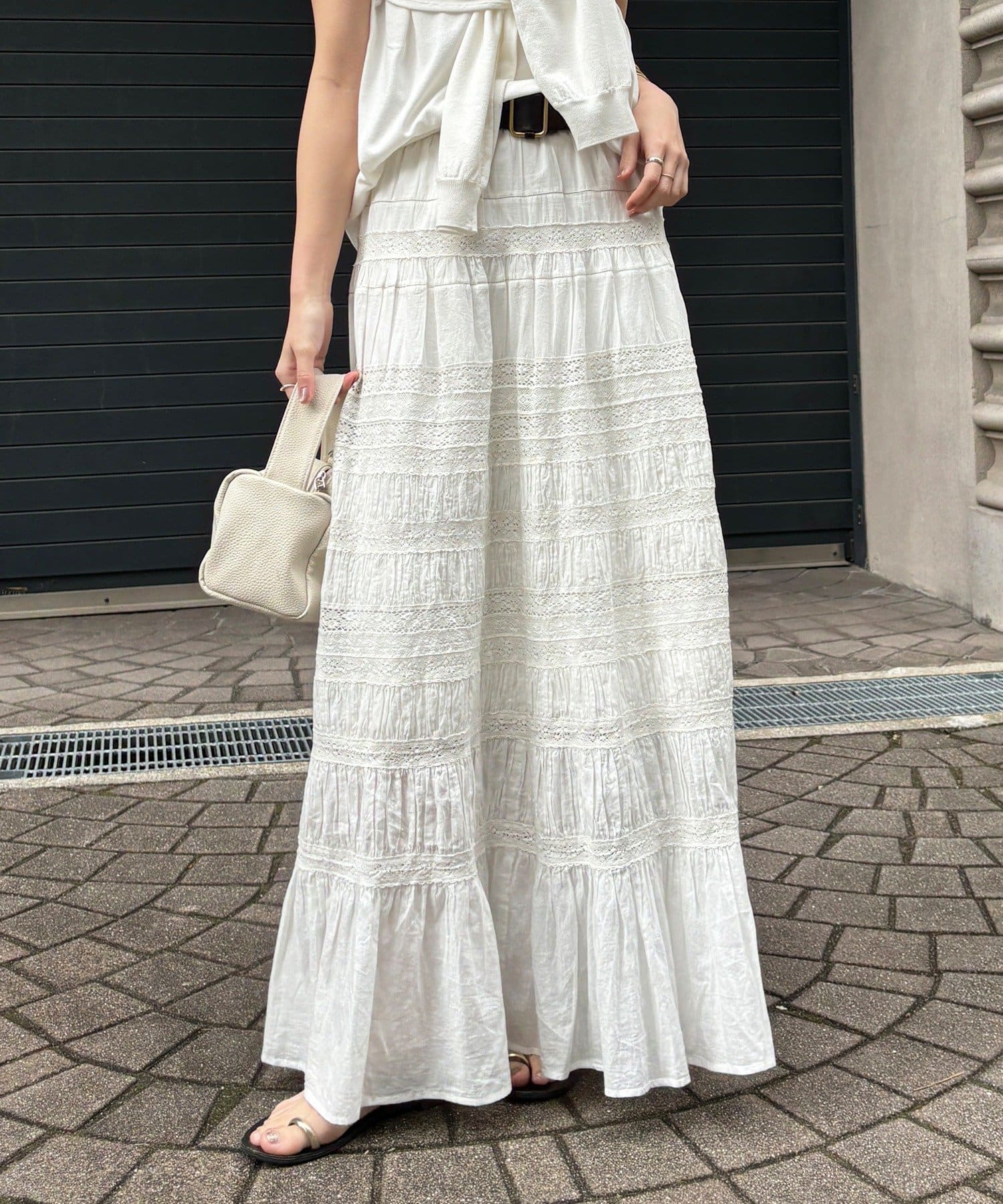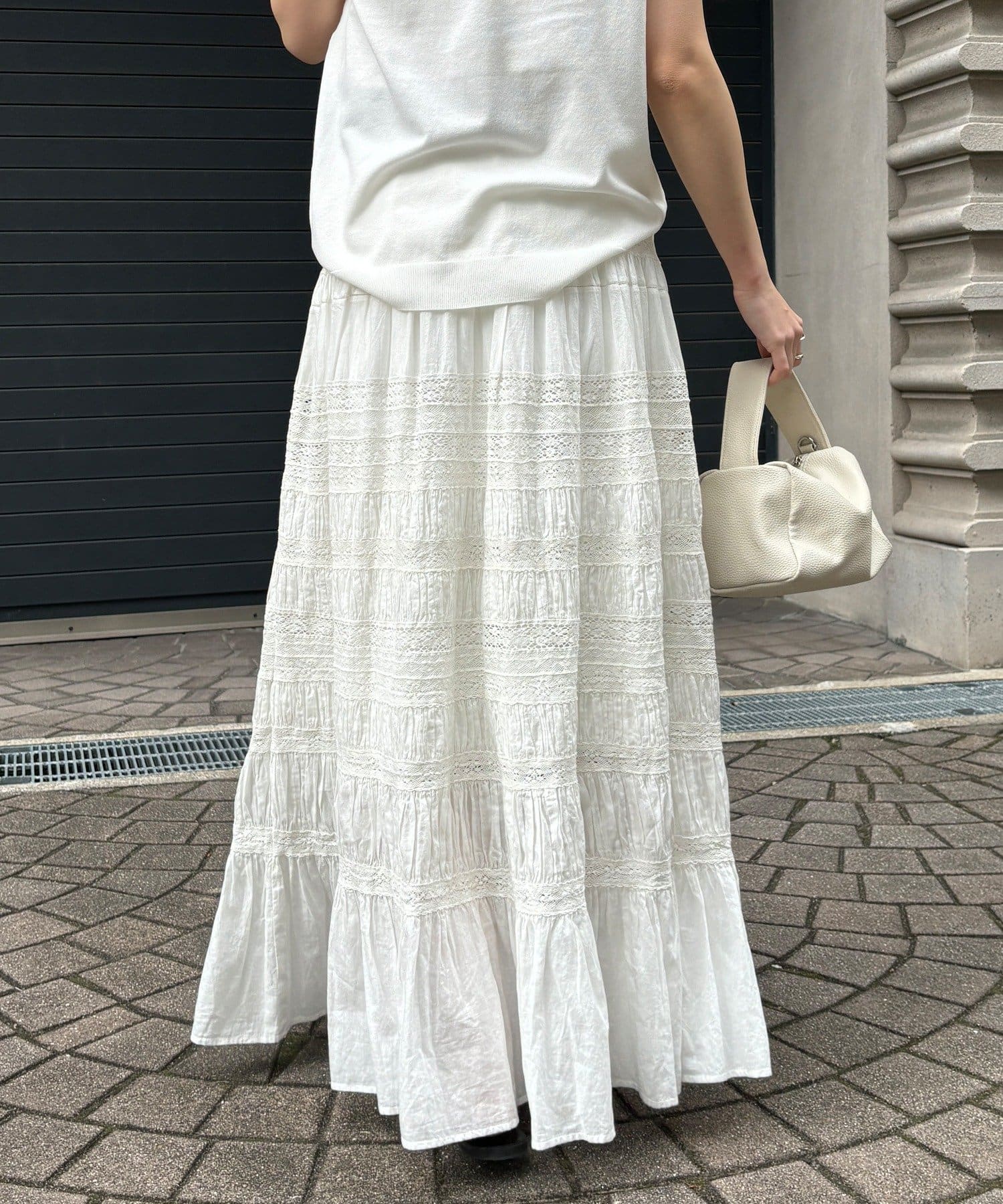 繊細なレースとティアードデザインが魅力の、インドレーススカート。