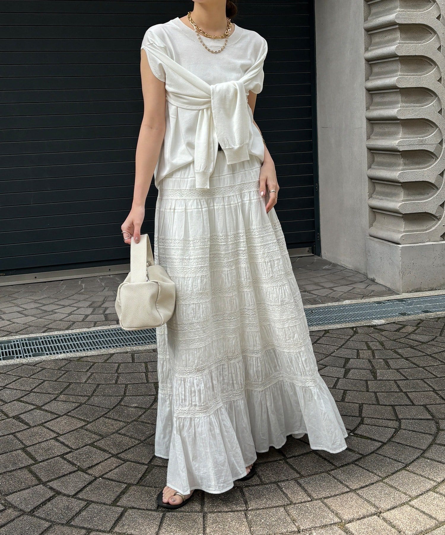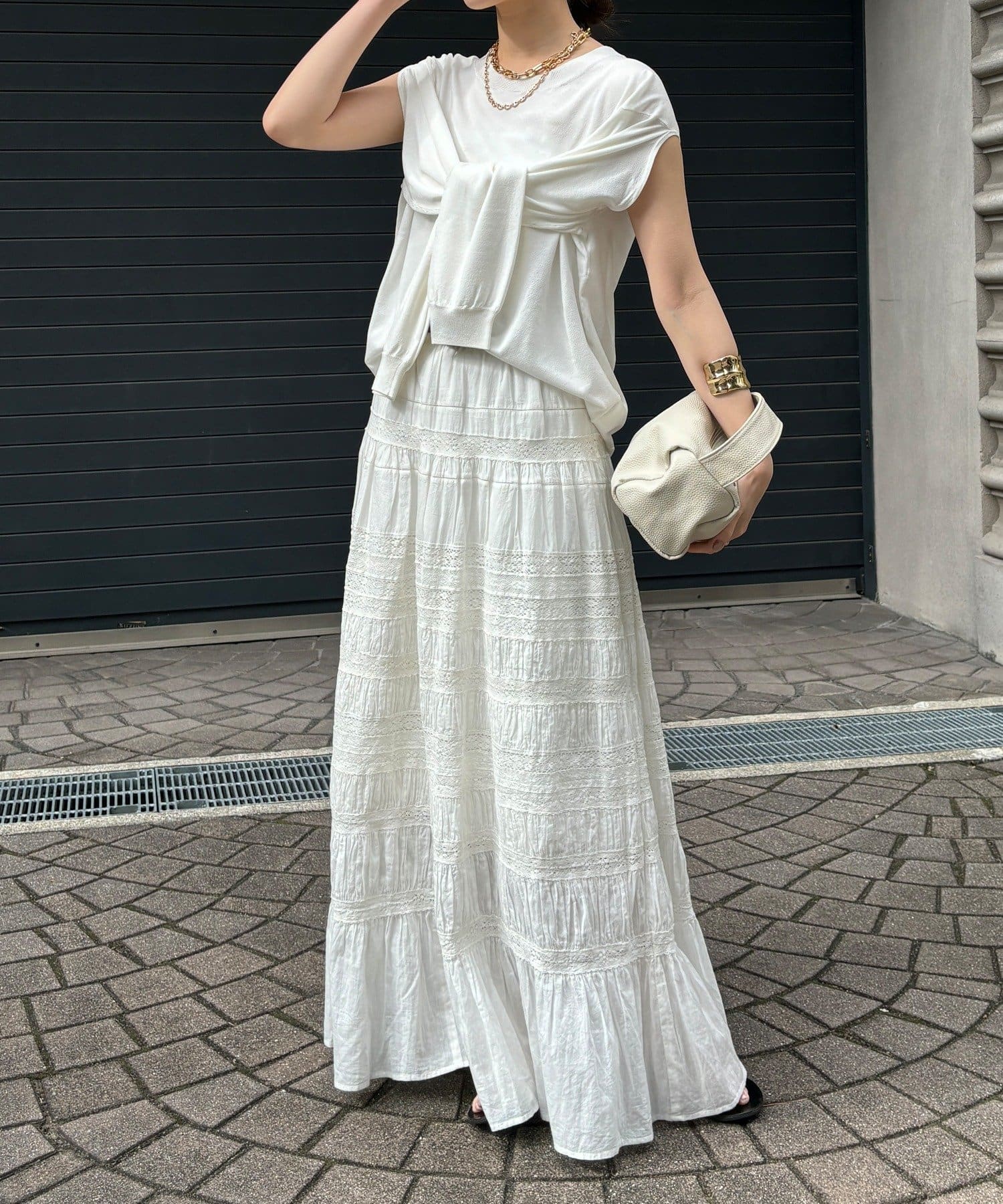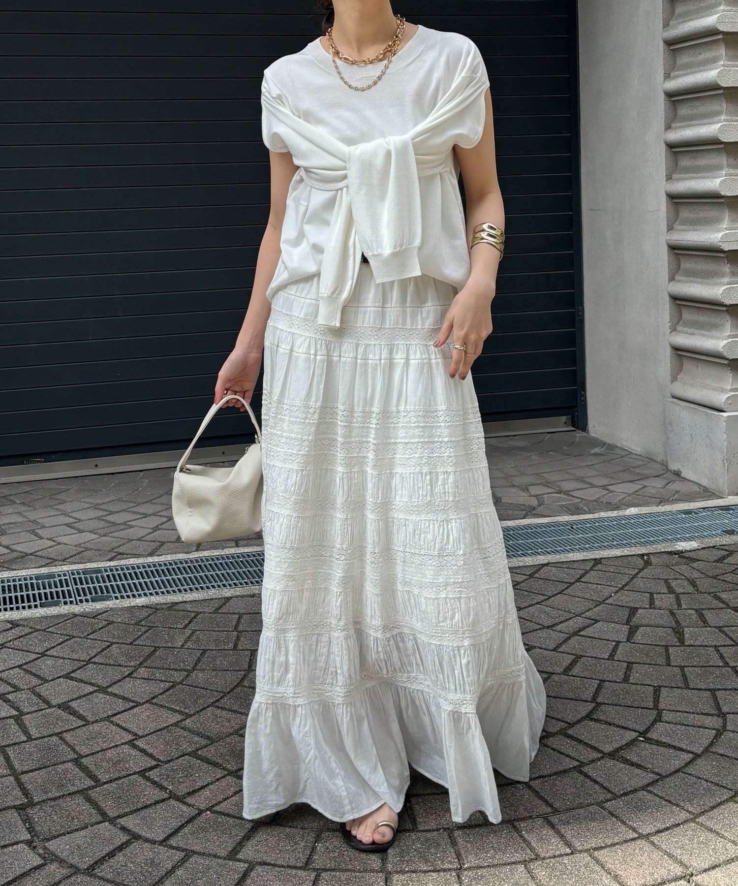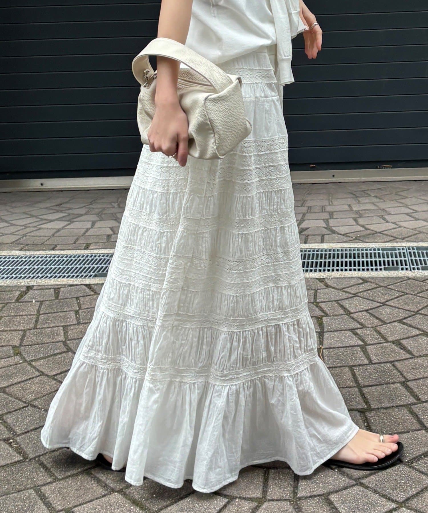 繊細なレースとティアードデザインが魅力の、インドレーススカート。