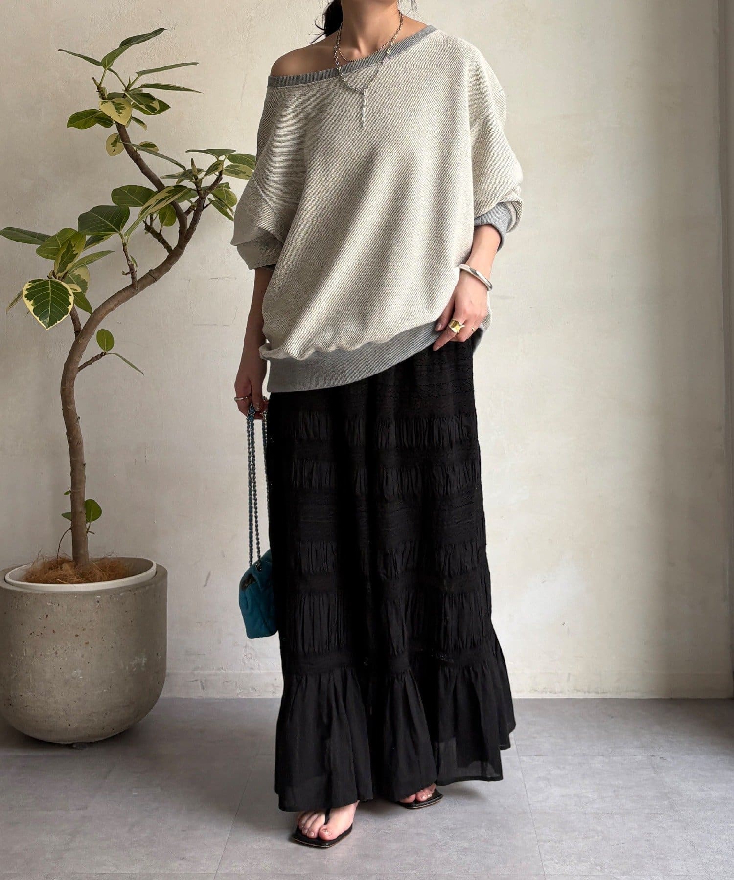 程よいボリュームがありながらも広がりすぎず、自然に体型をカバーしてくれます。