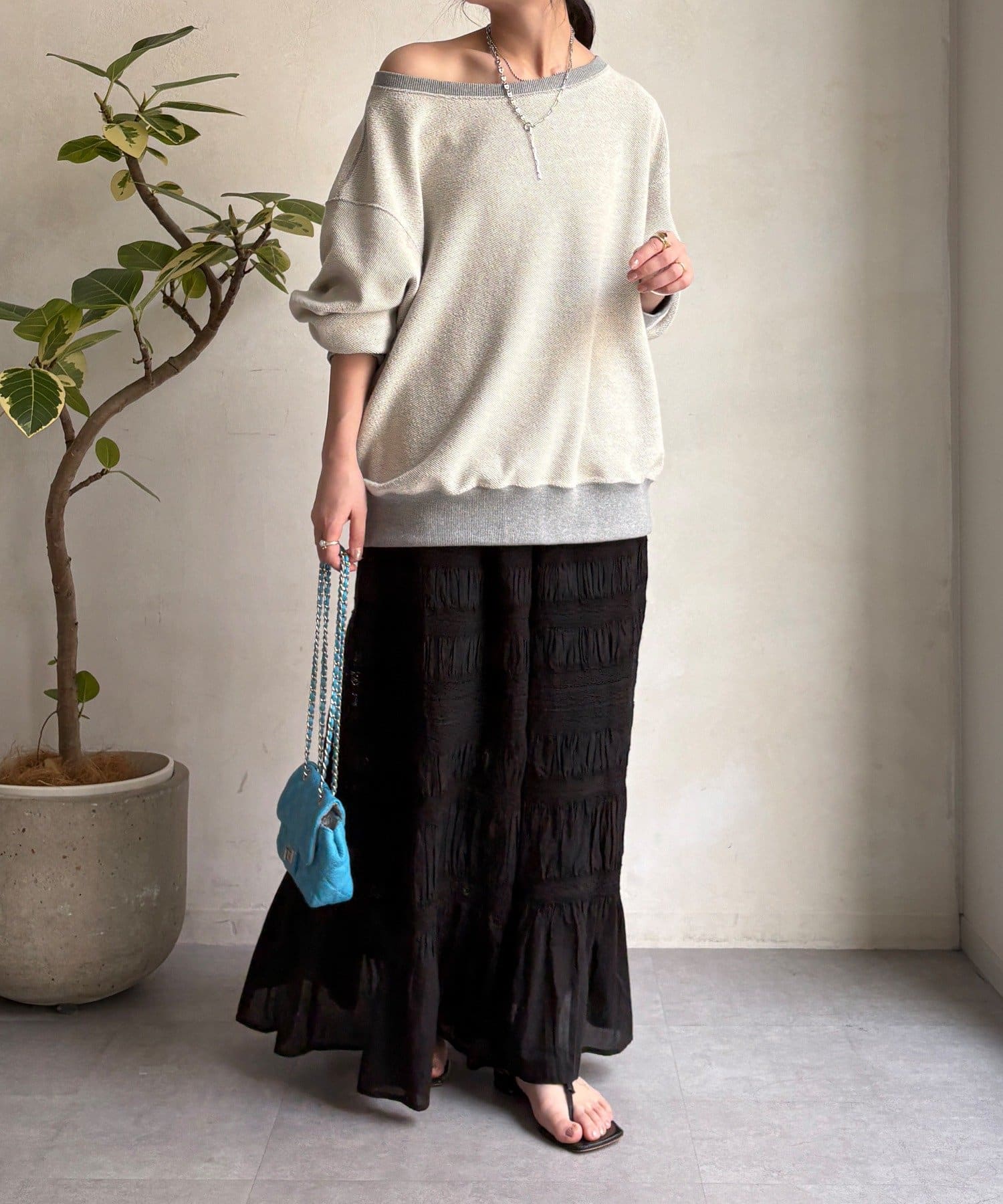 ふんわりと空気を含むようなシルエットが、やさしく女性らしい雰囲気を演出します。