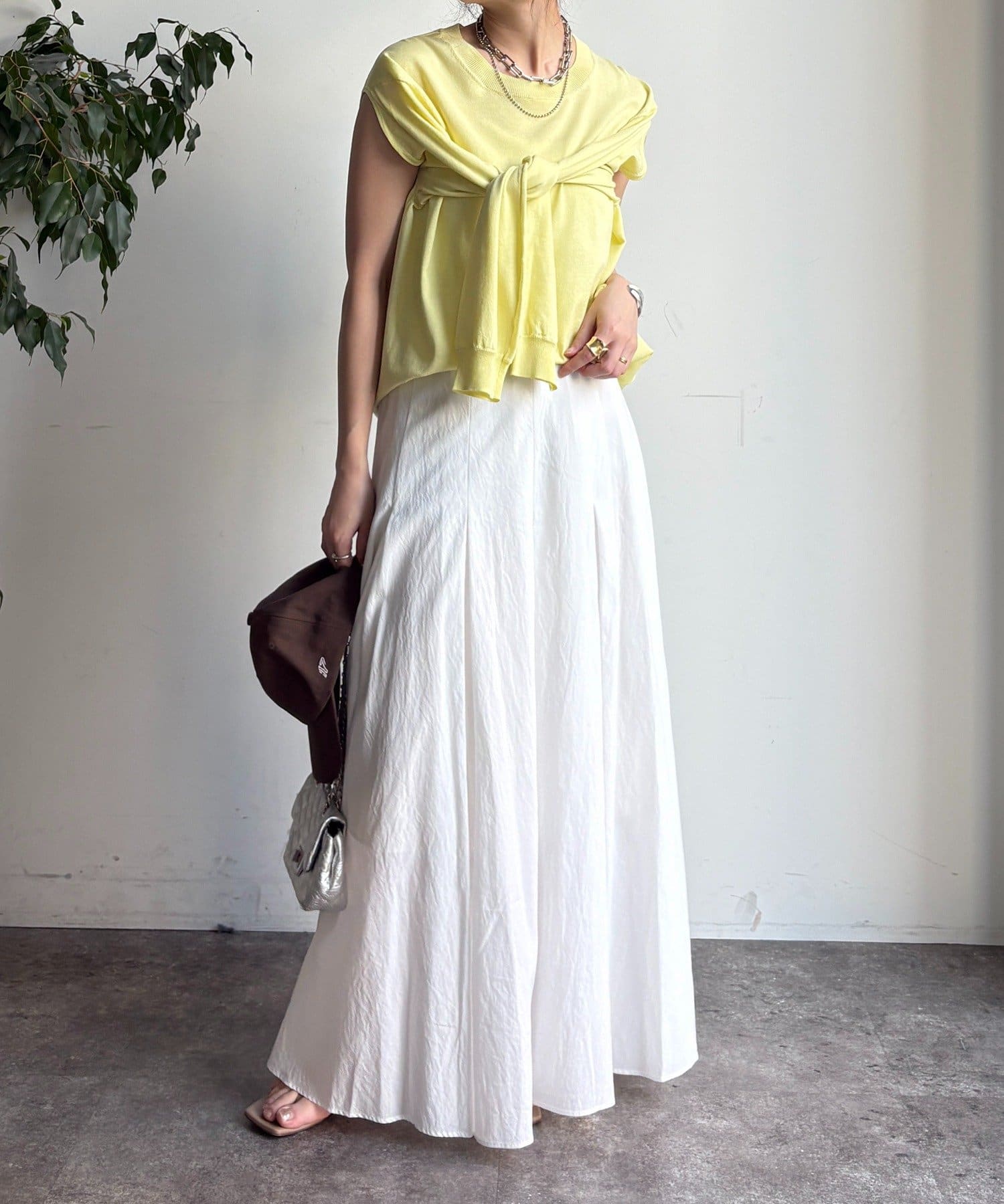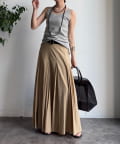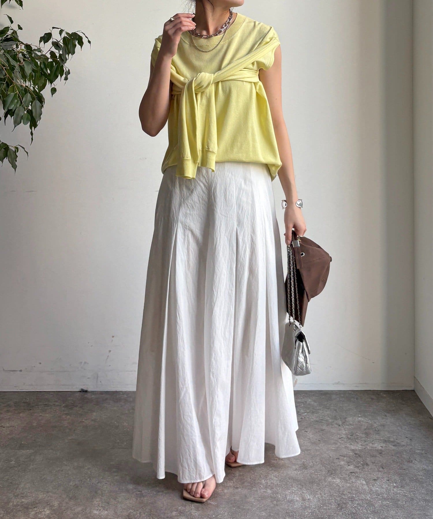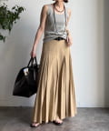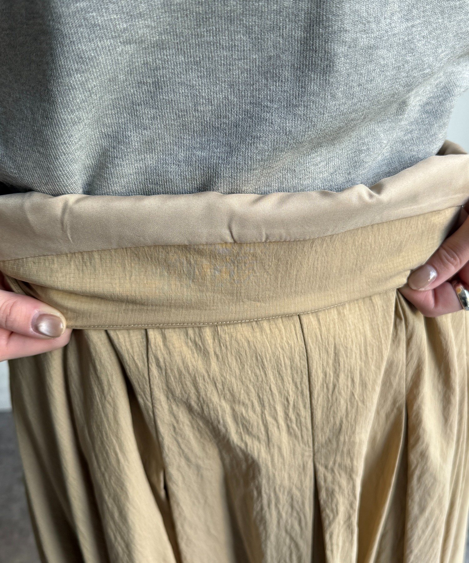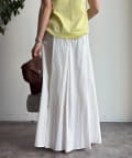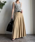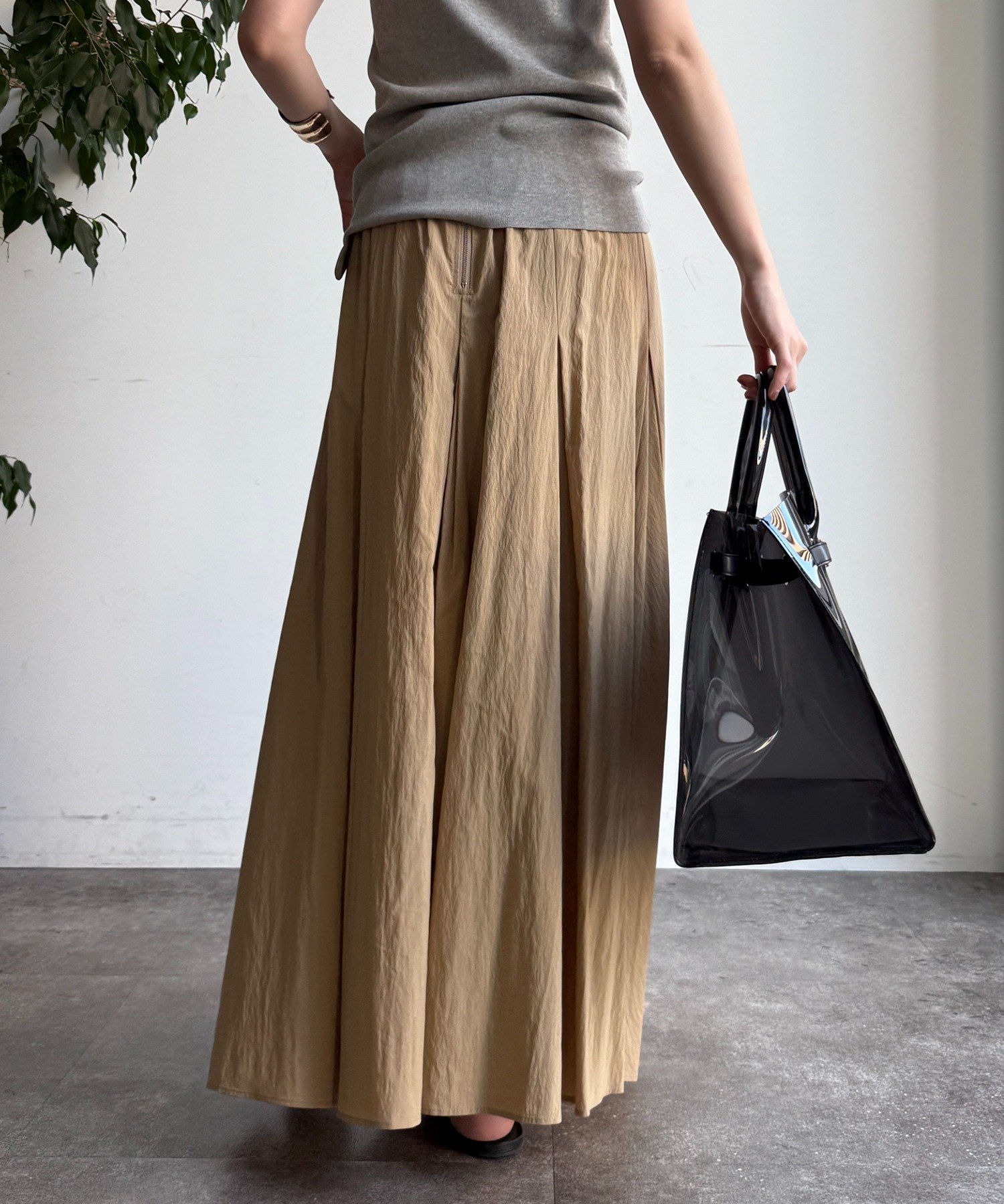 ウエストから裾にかけて施されたタックデザインが、立体感のあるフレアラインを生み出し自然でな広がりを演出。