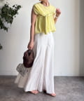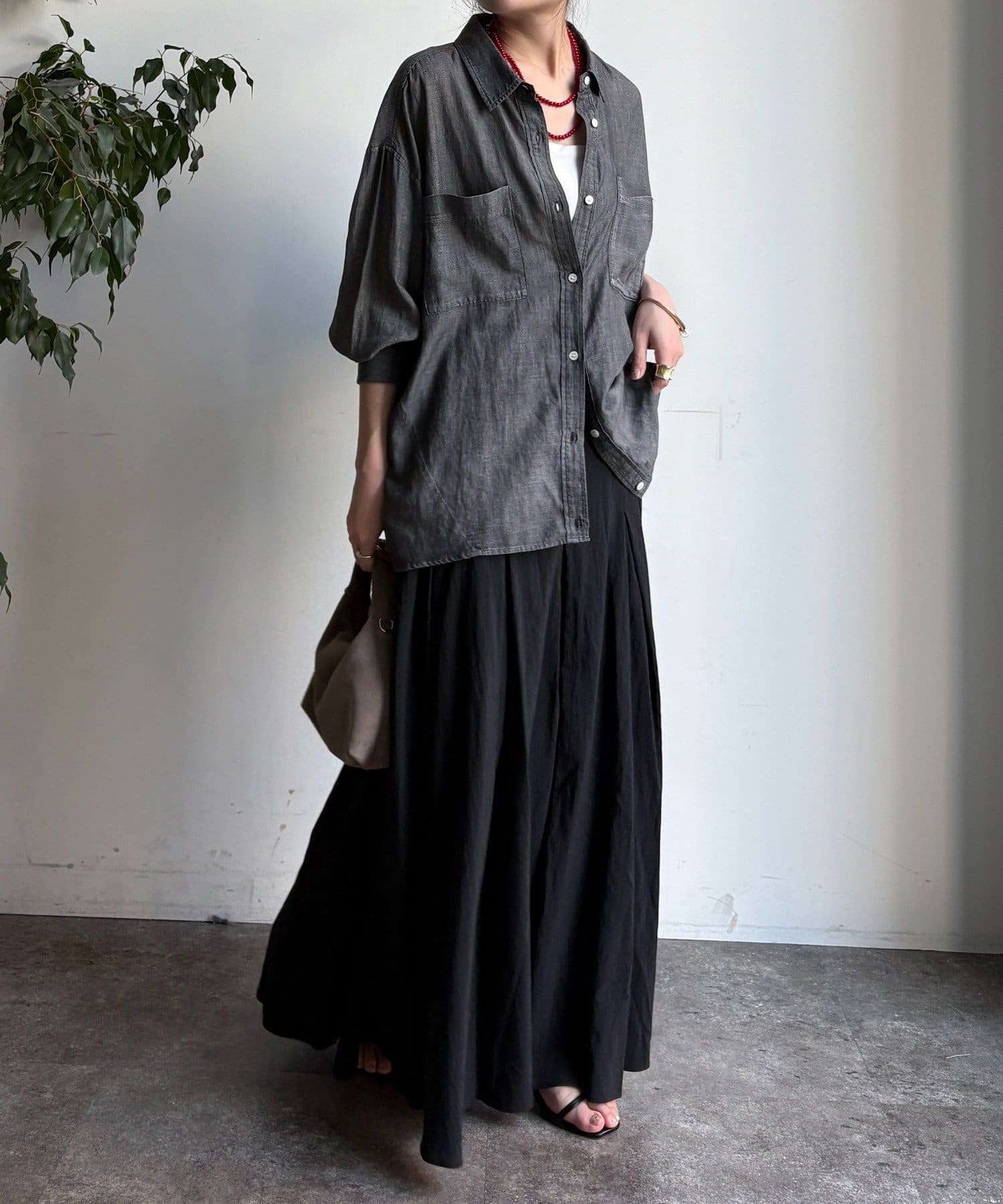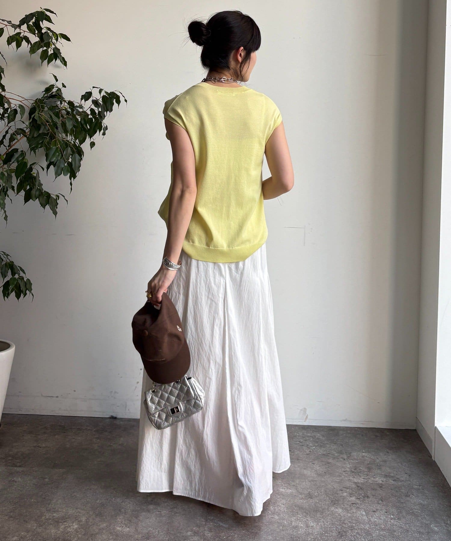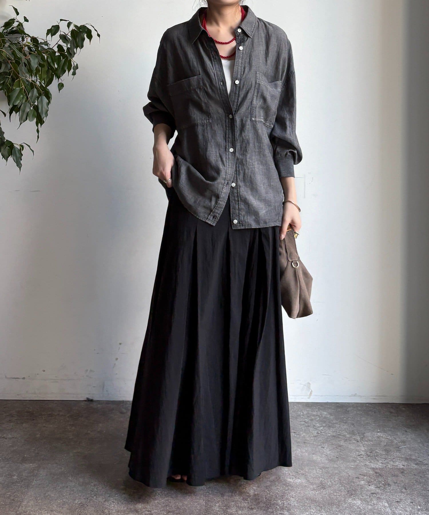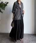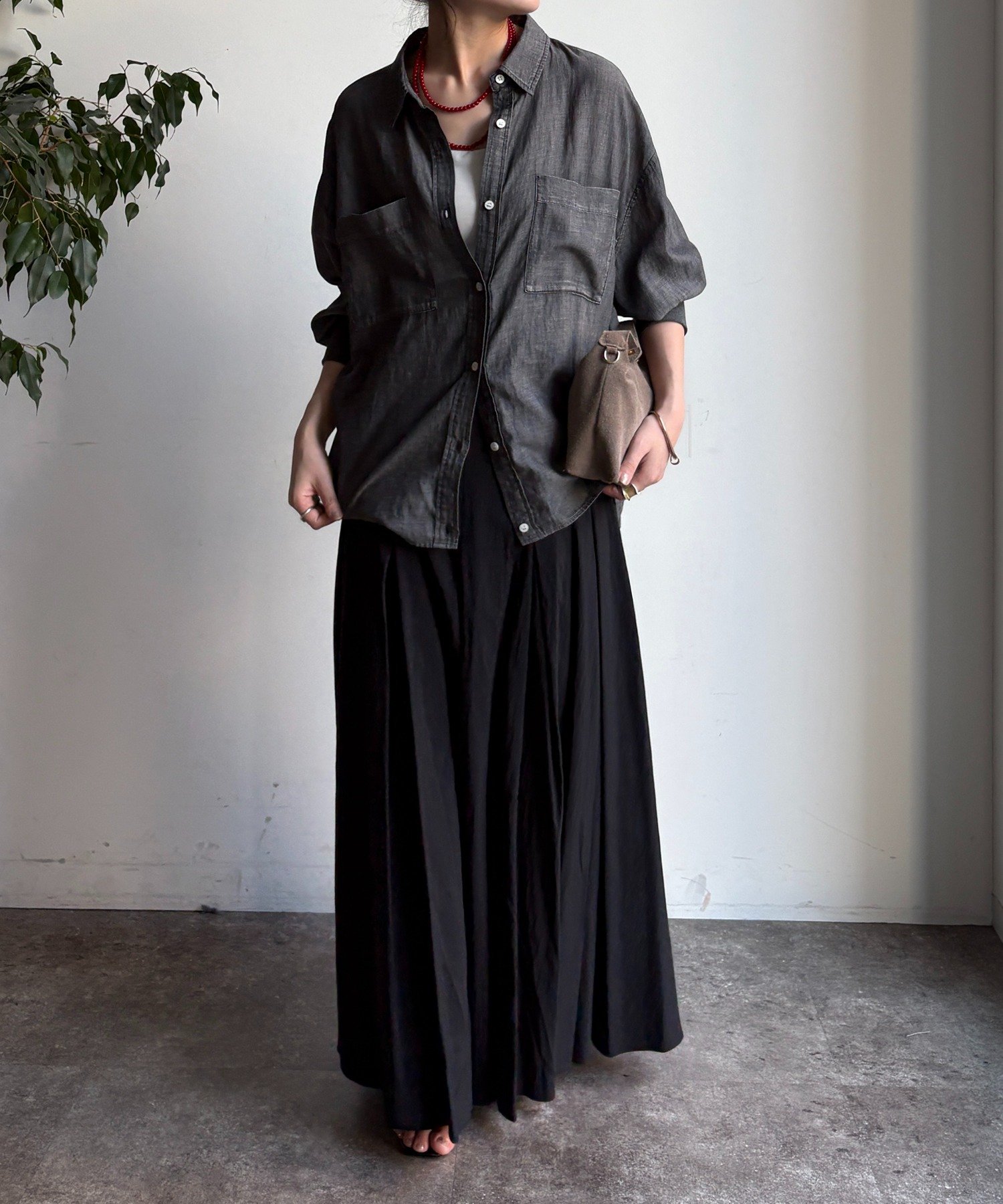 ウエストから裾にかけて施されたタックデザインが、立体感のあるフレアラインを生み出し自然でな広がりを演出。
