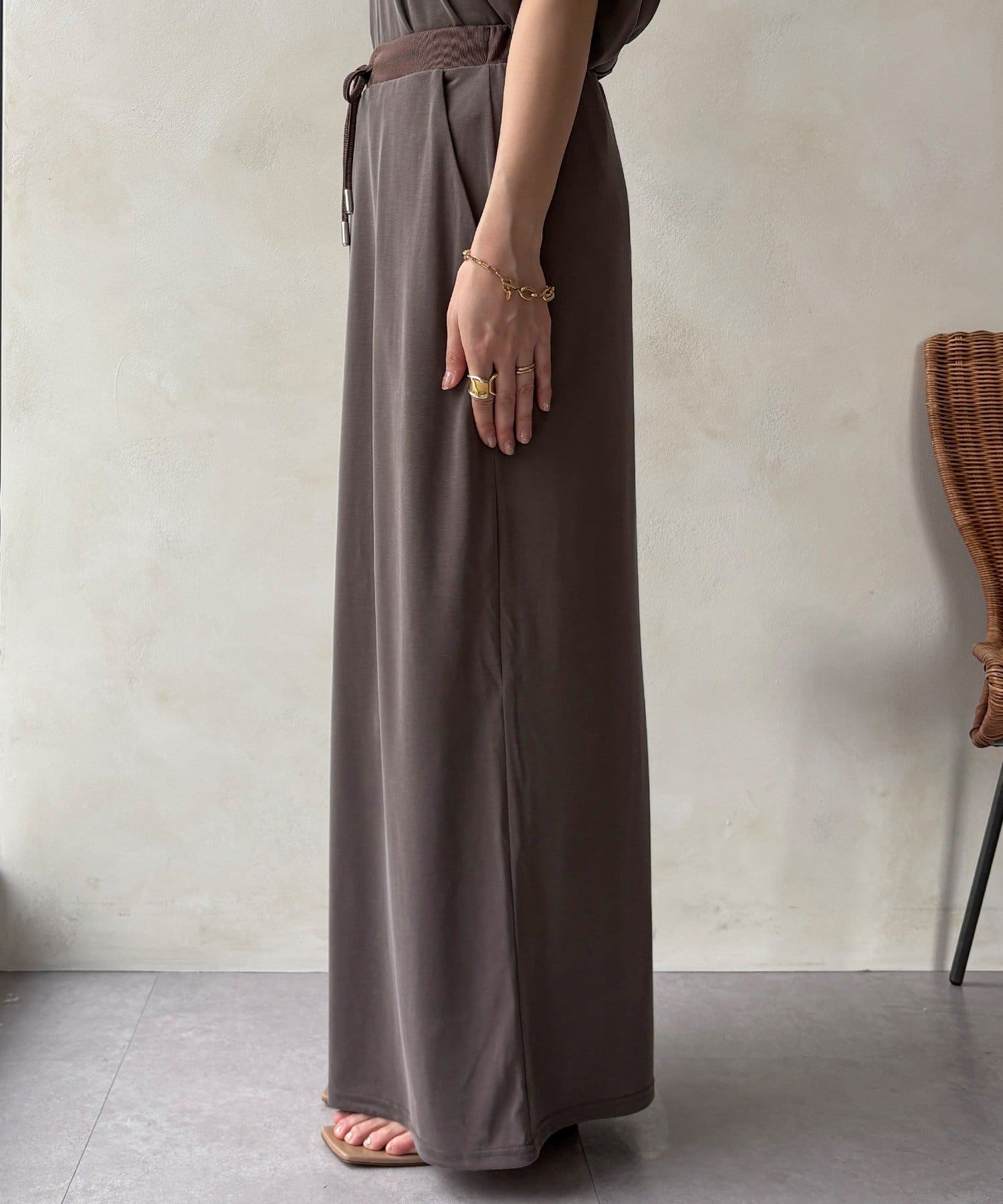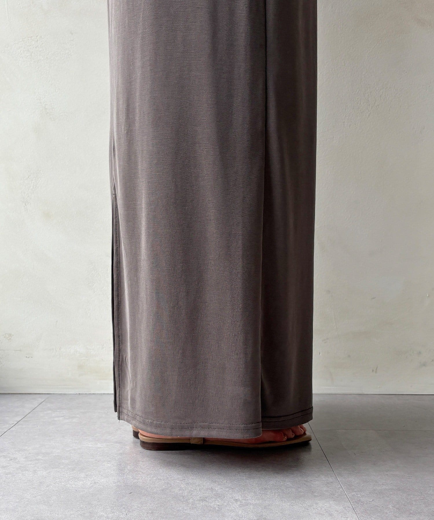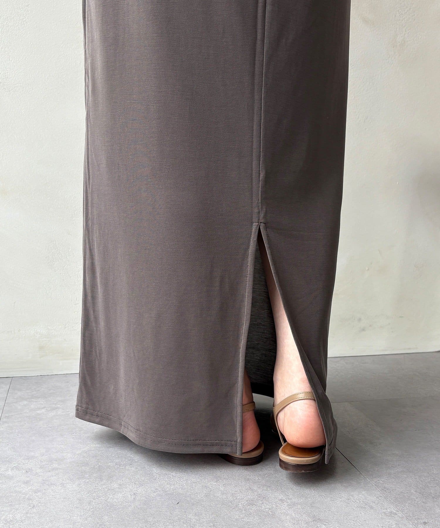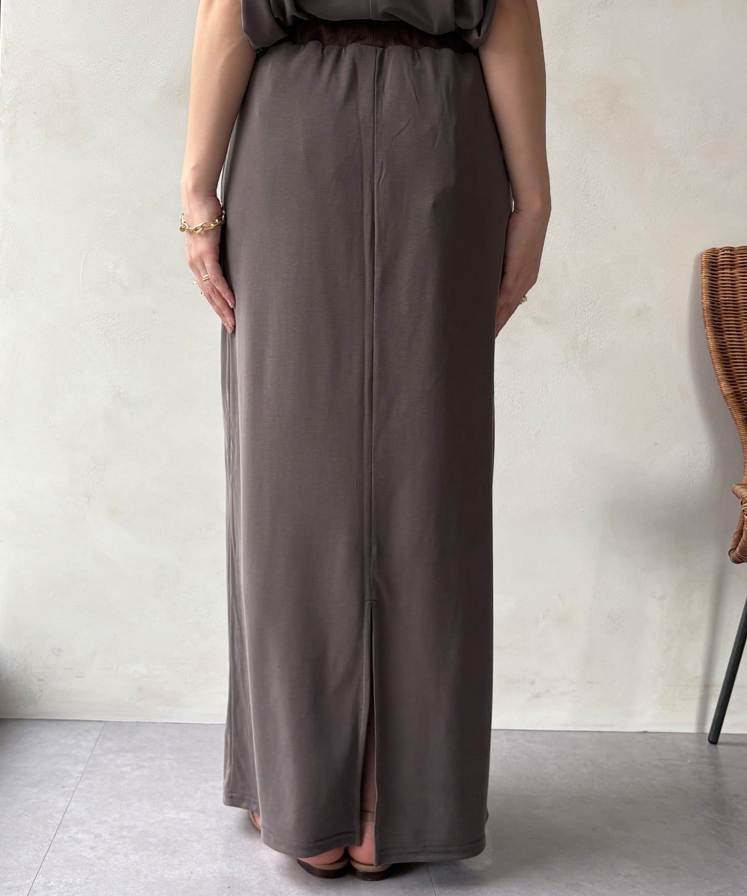 落ち感があり、滑らかな肌当たりで気楽に着ていただけるスカートです。