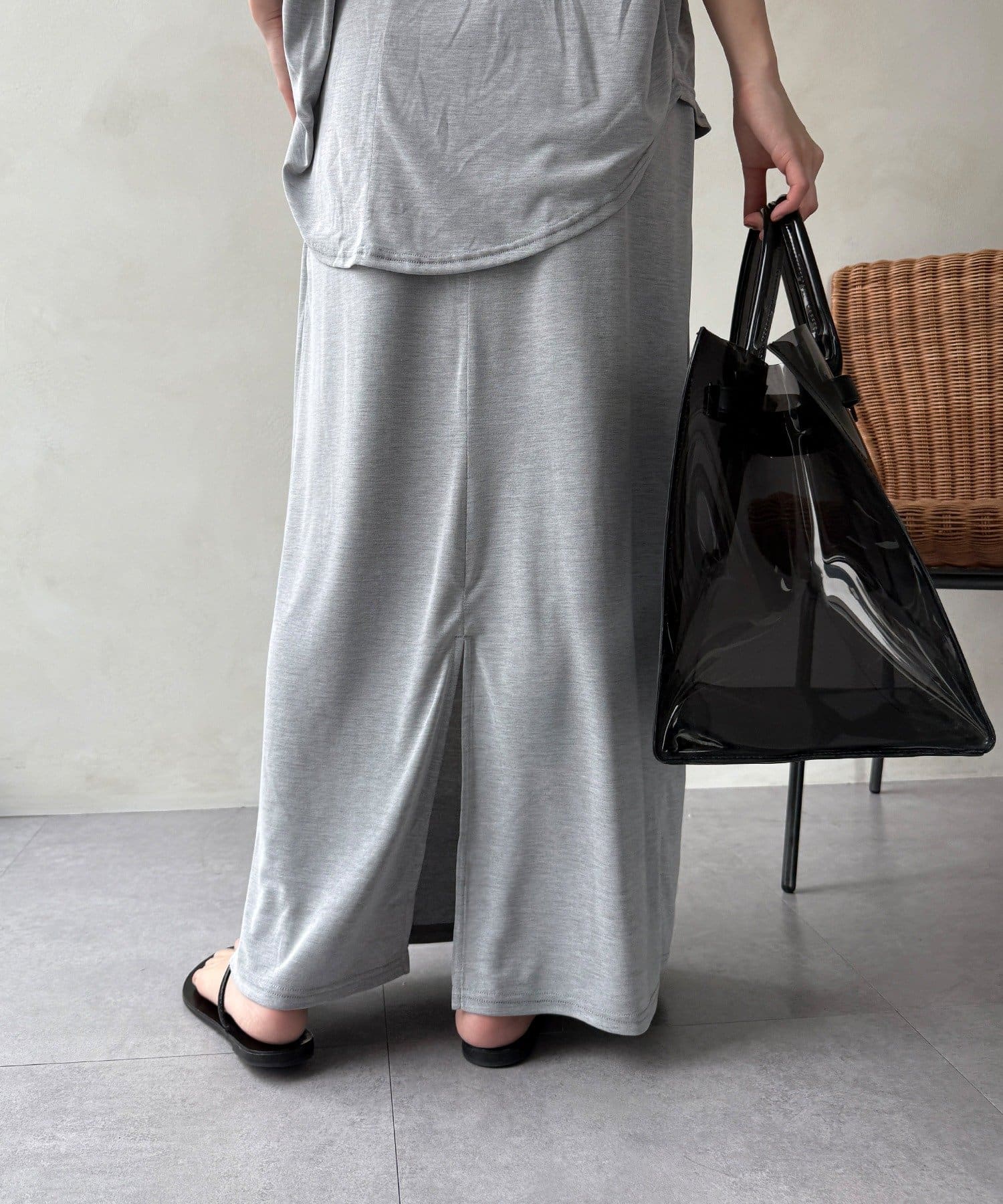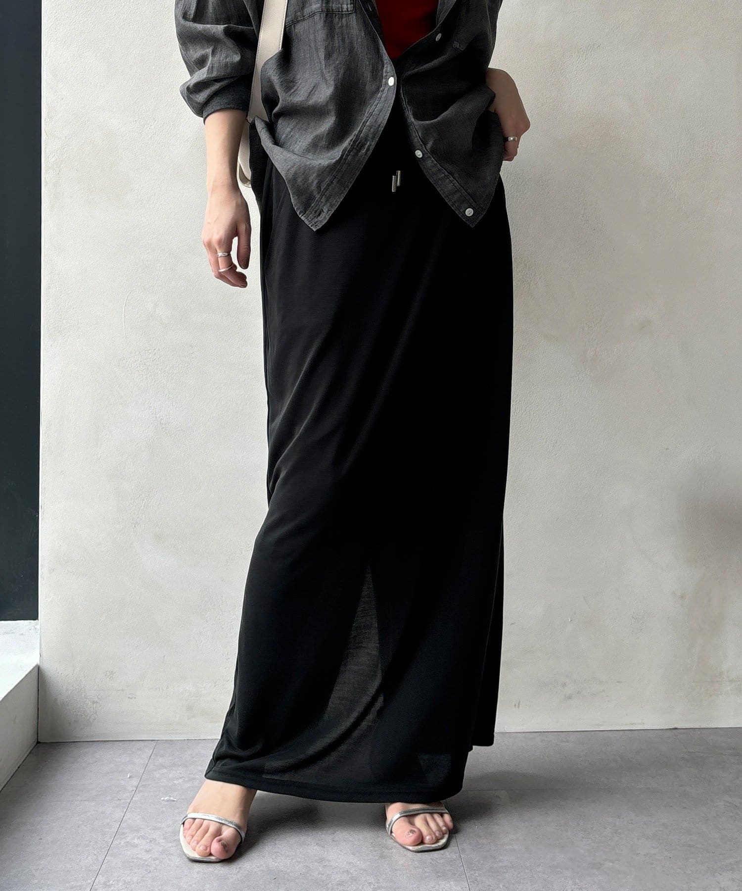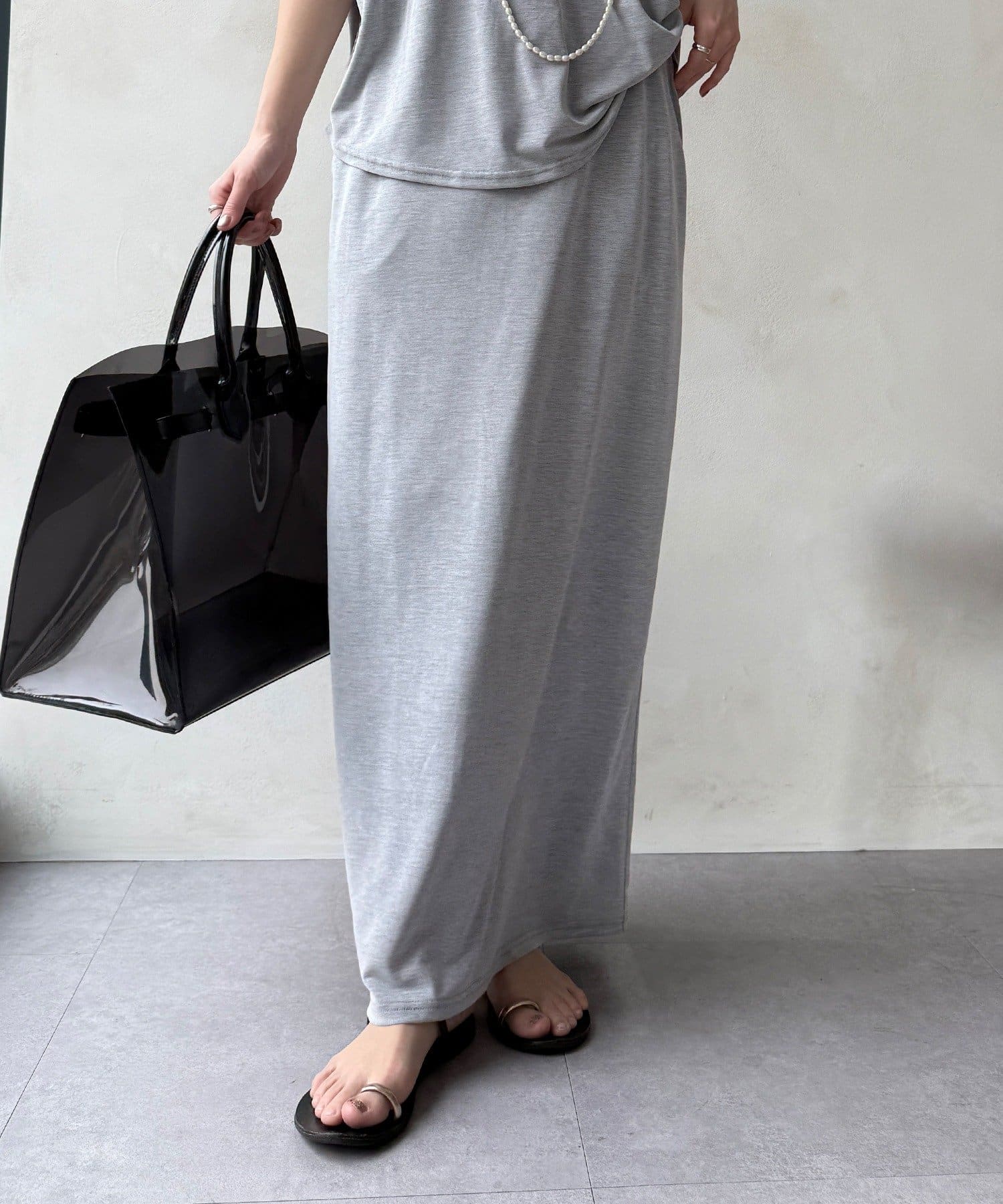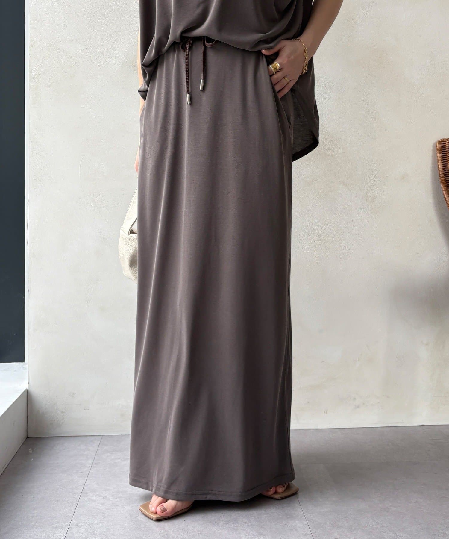 落ち感があり、滑らかな肌当たりで気楽に着ていただけるスカートです。