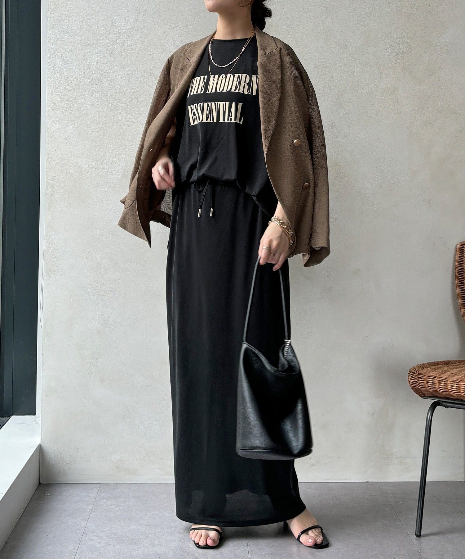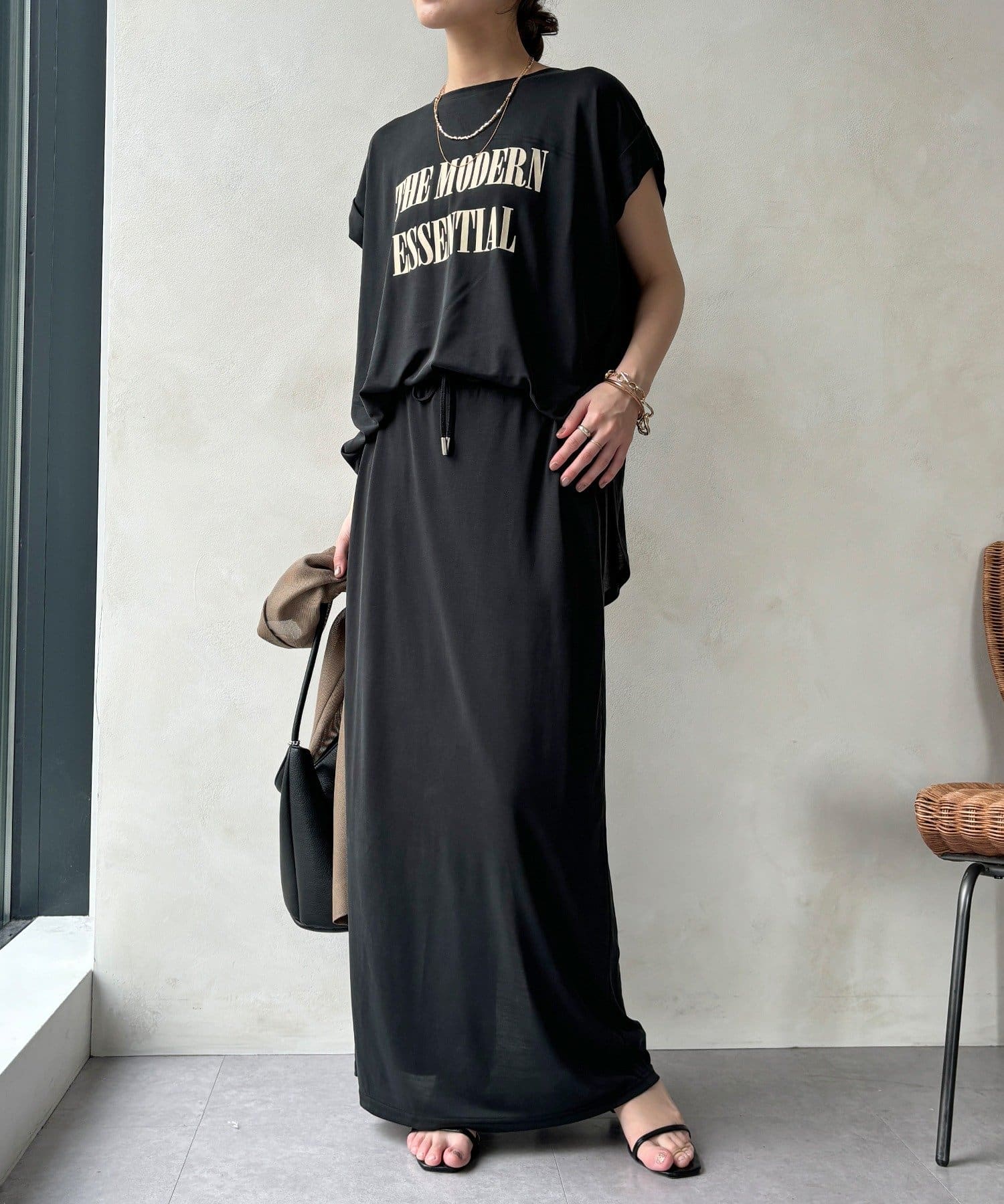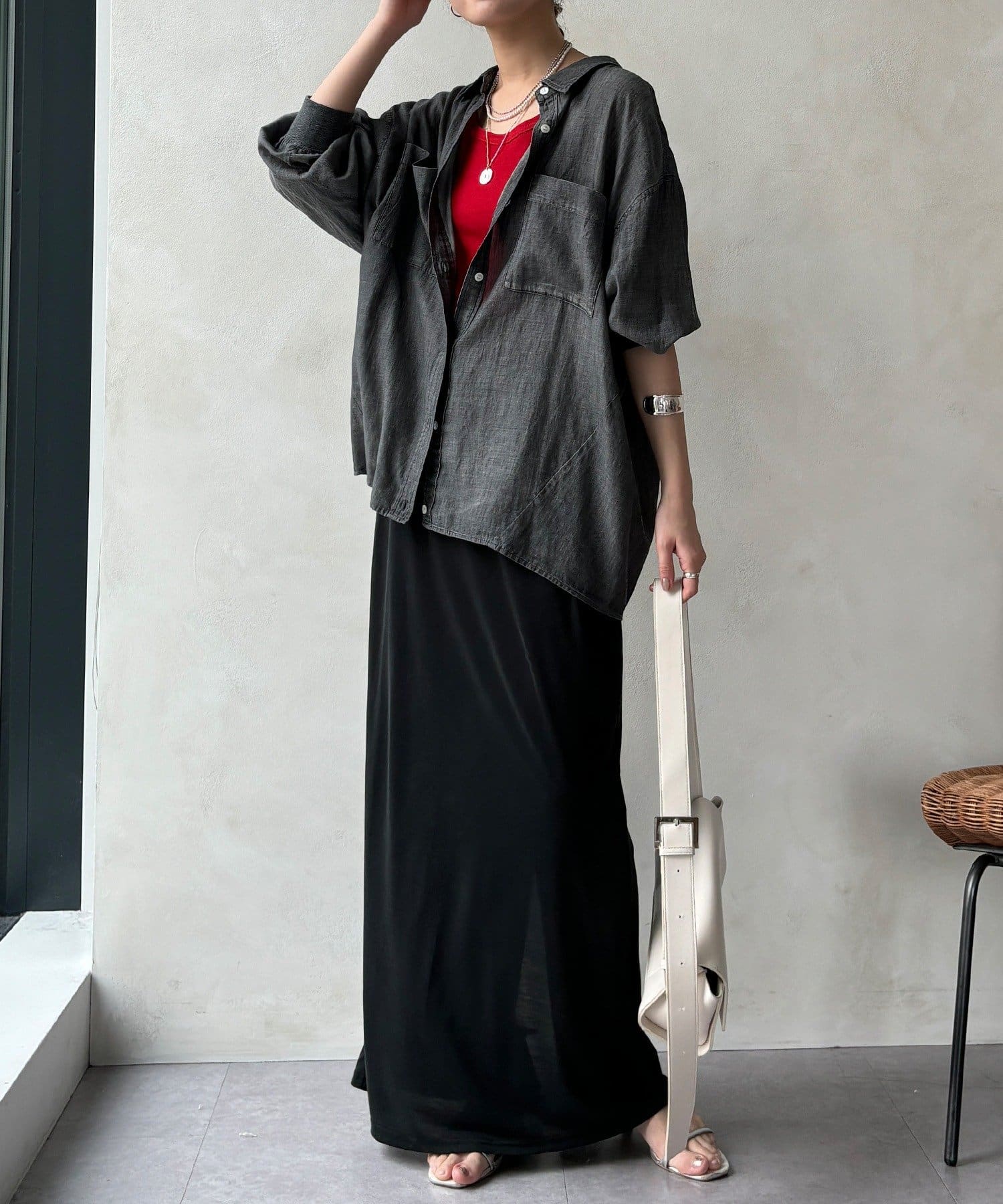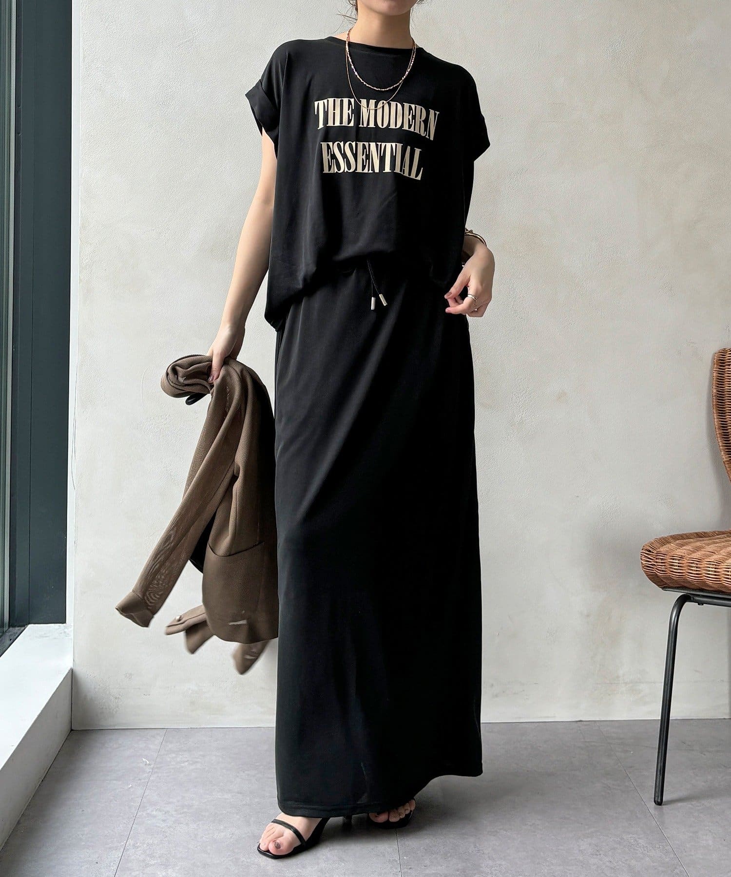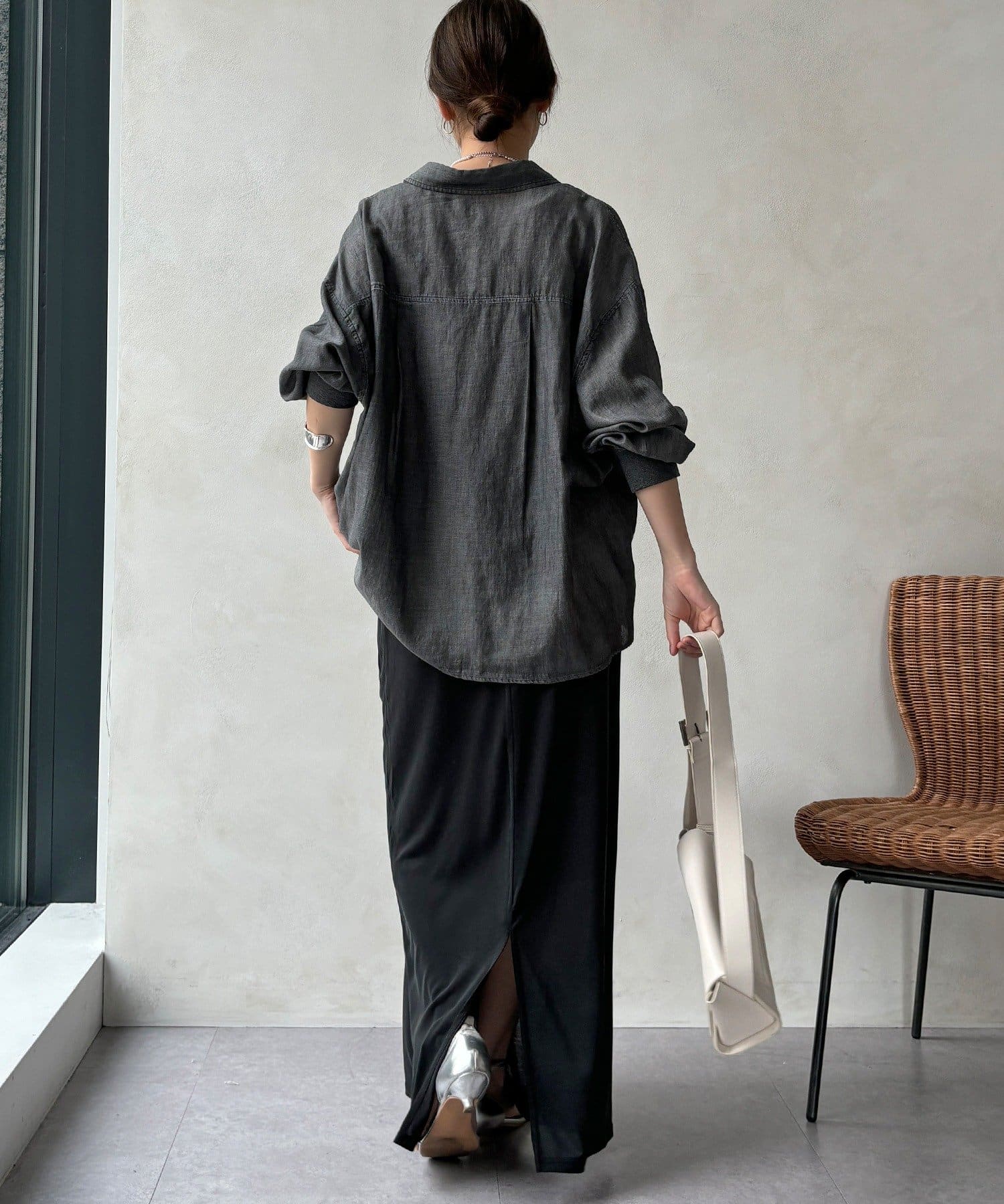 リラクシーな着心地ながらもIラインのシルエットできれいな印象をプラス。