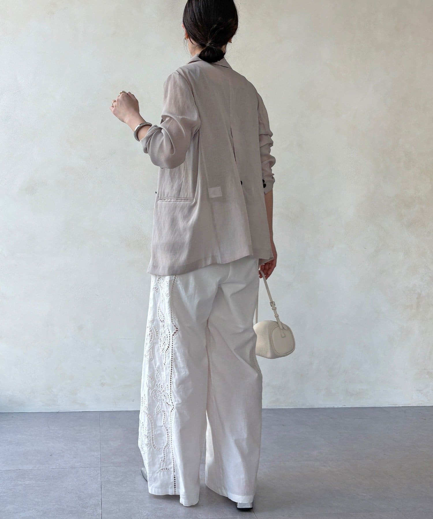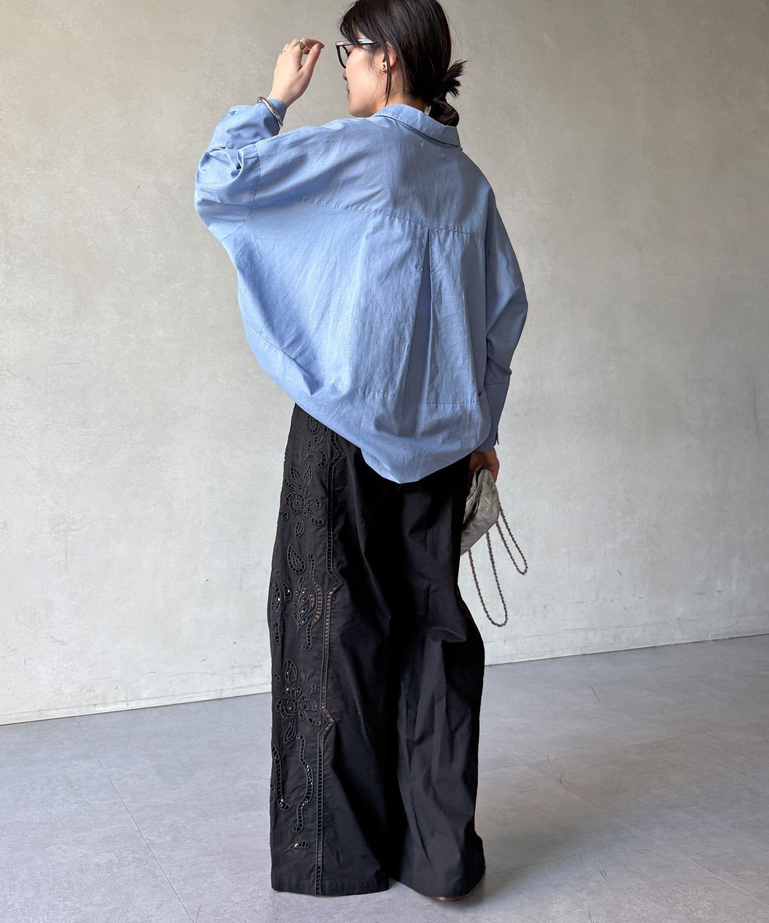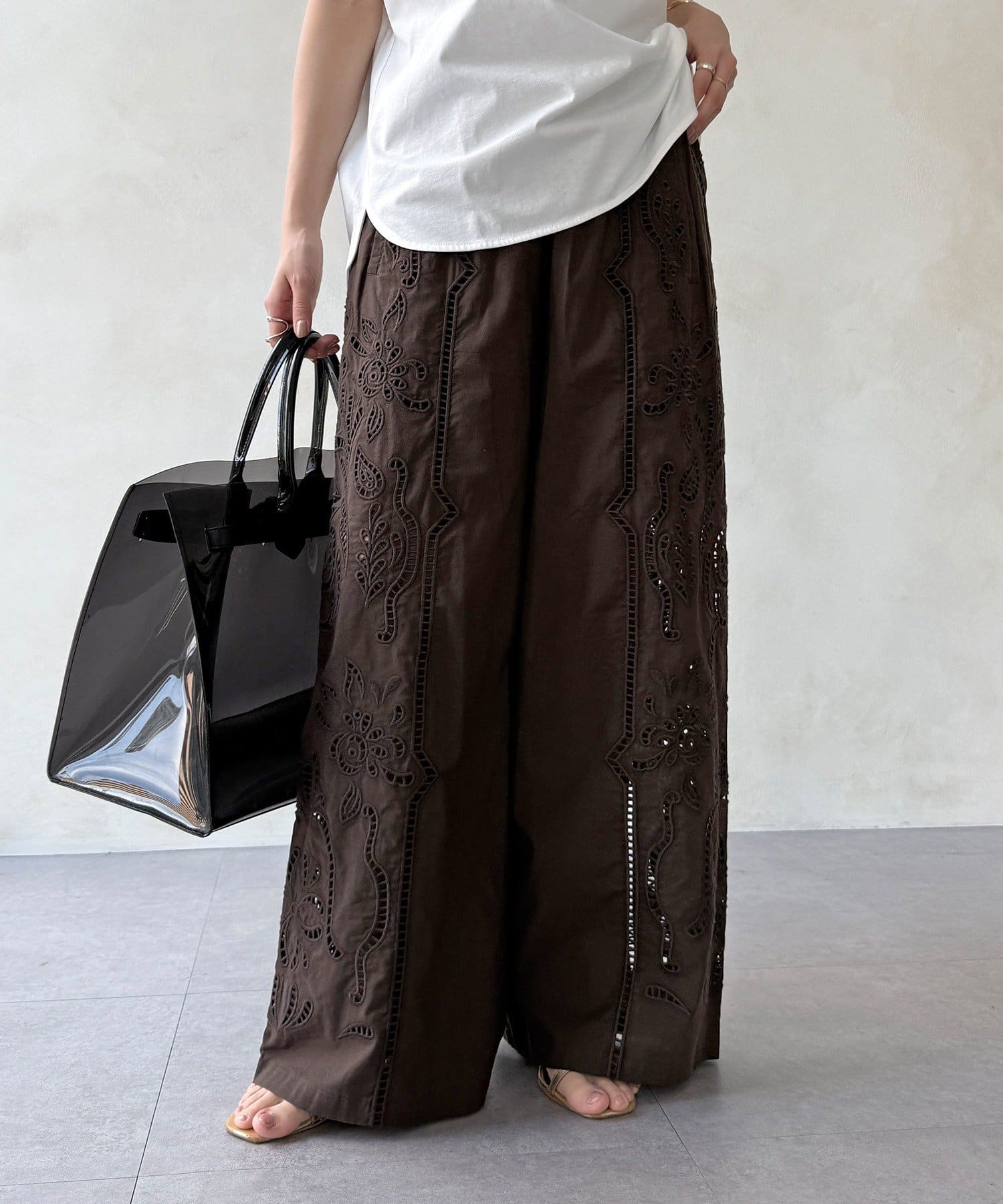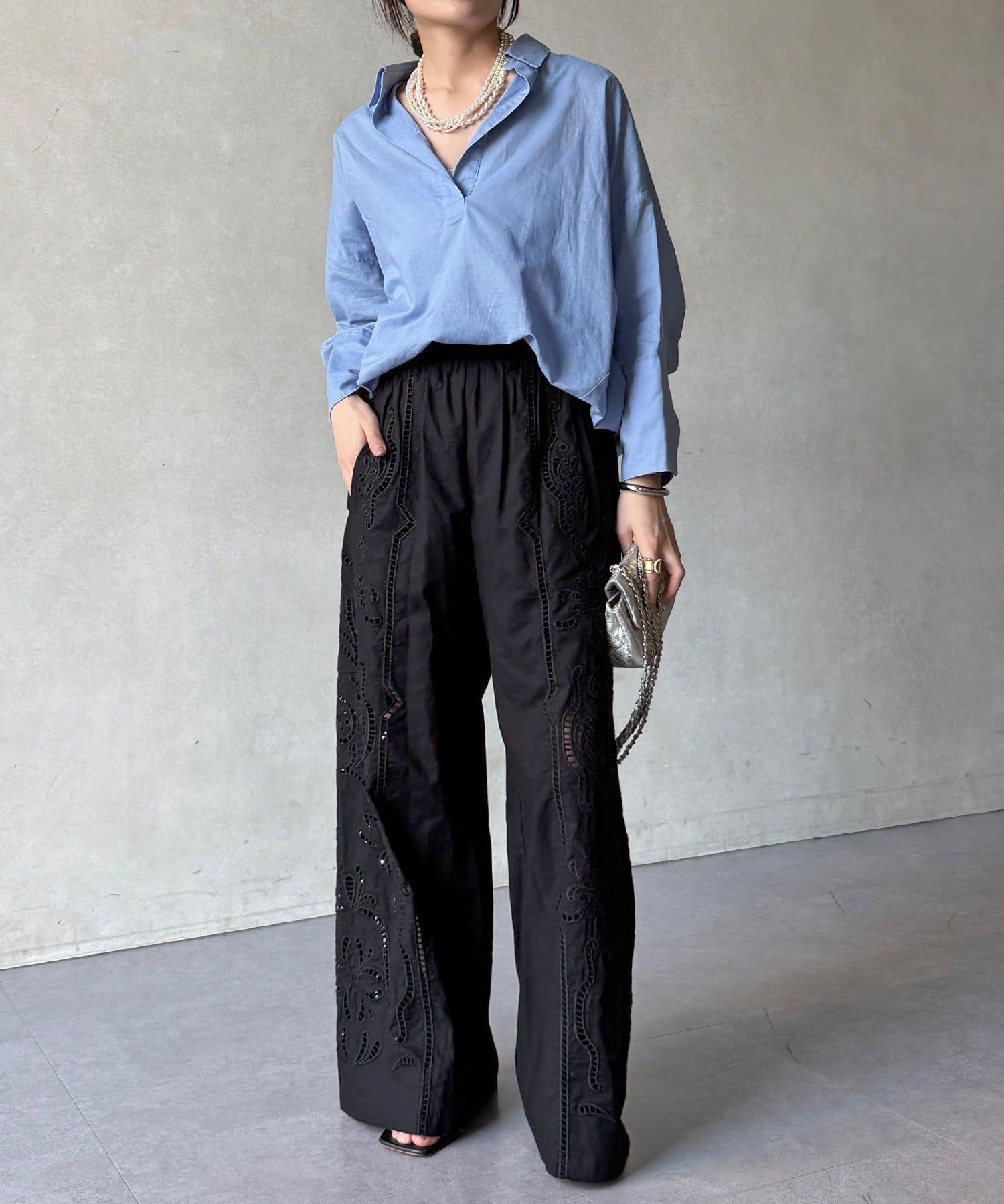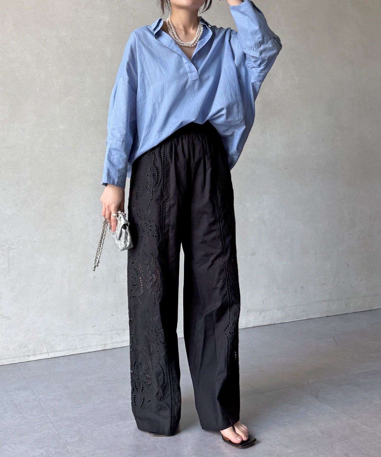 ・繊細で大胆な刺繍を施した主役級パンツ