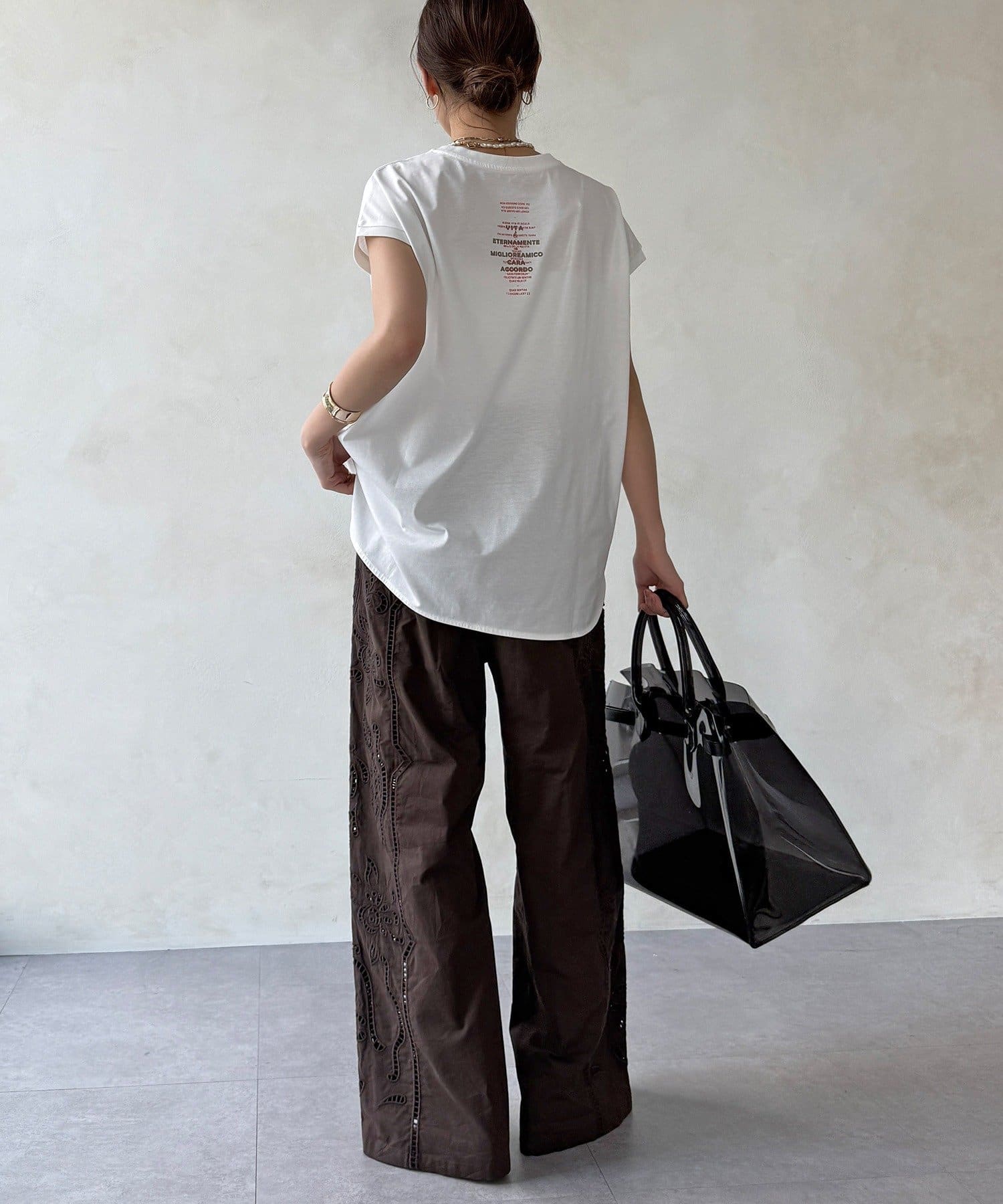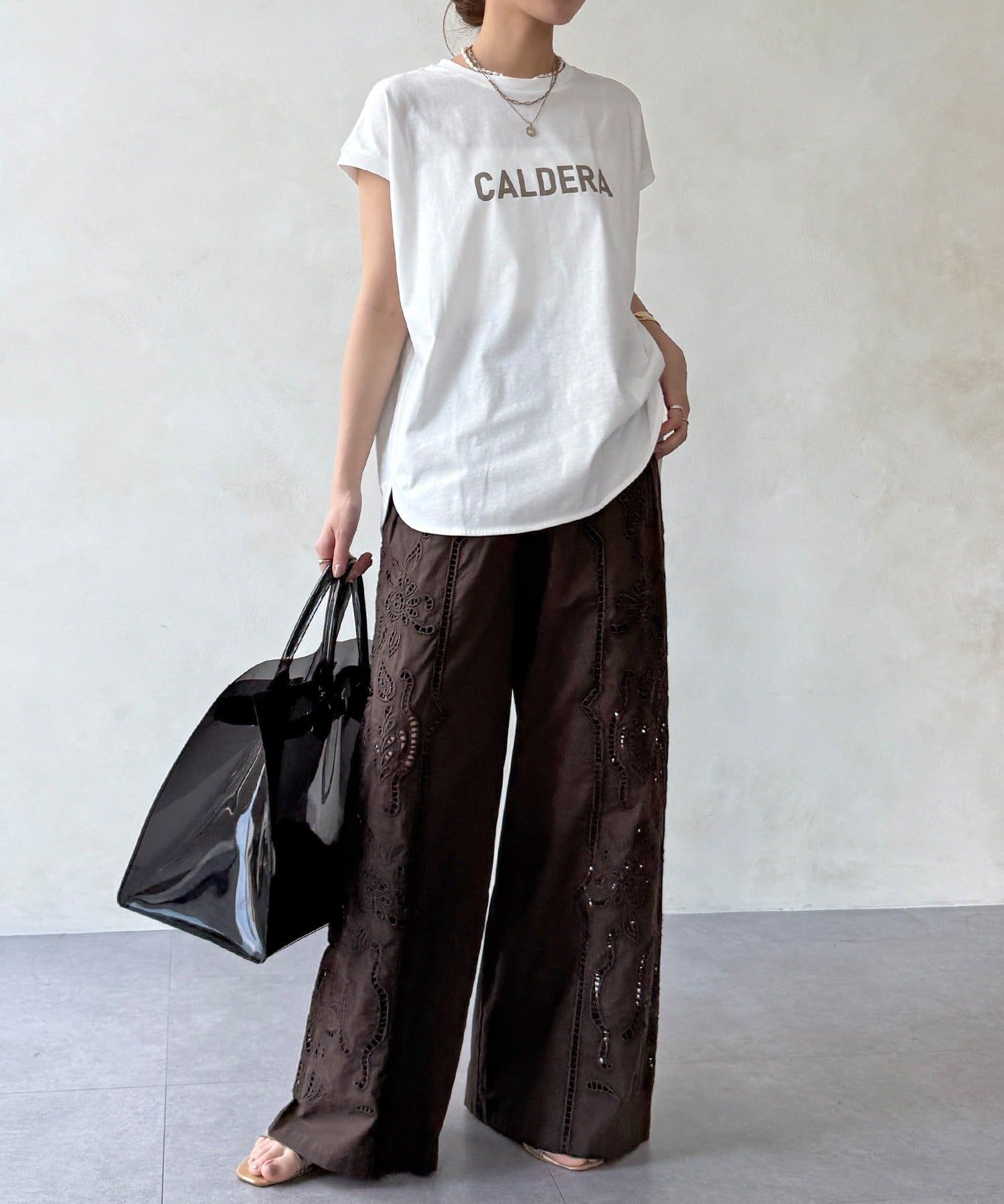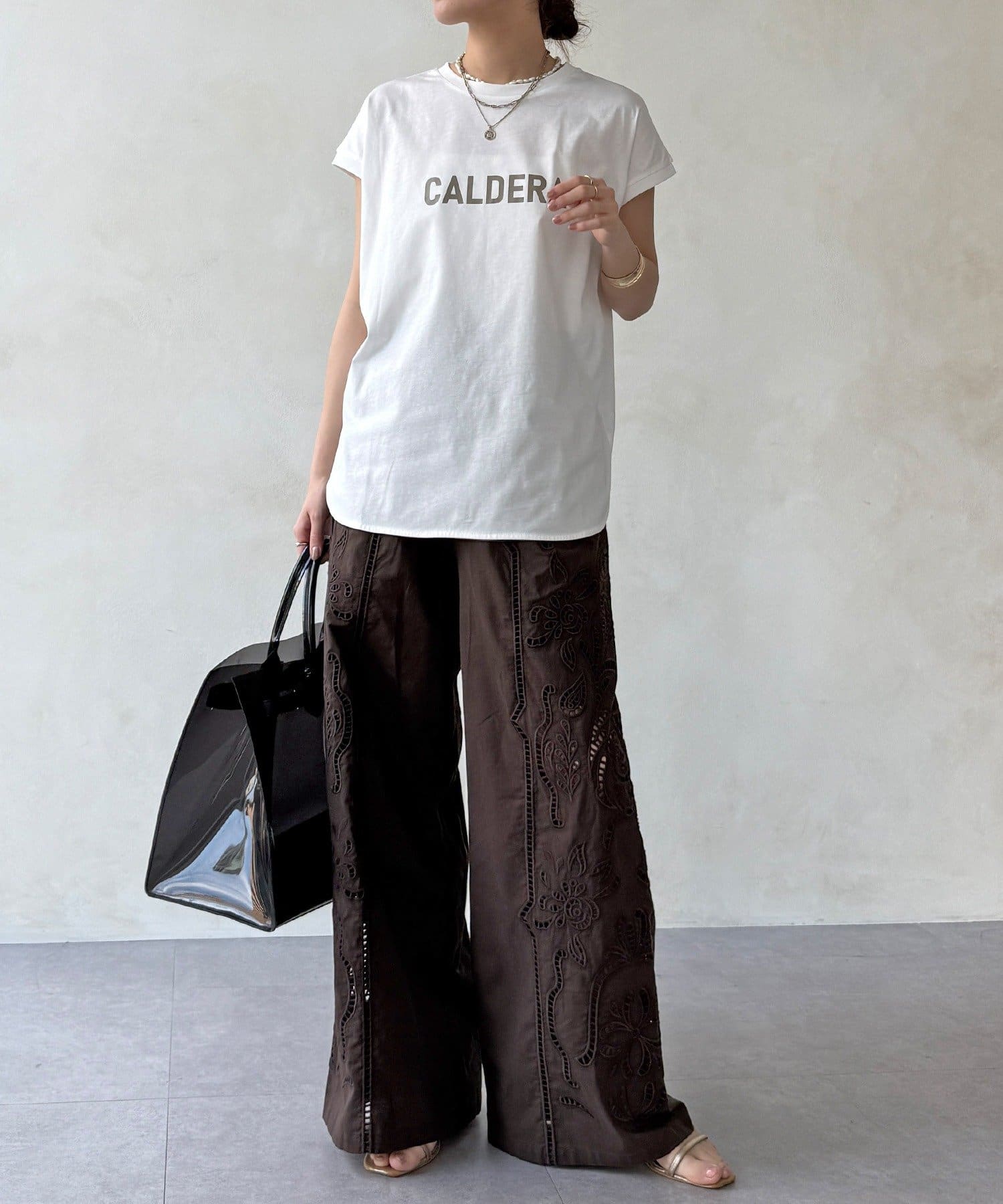 甘いレースをゆとりのあるワイドシルエットに落とし込むことで