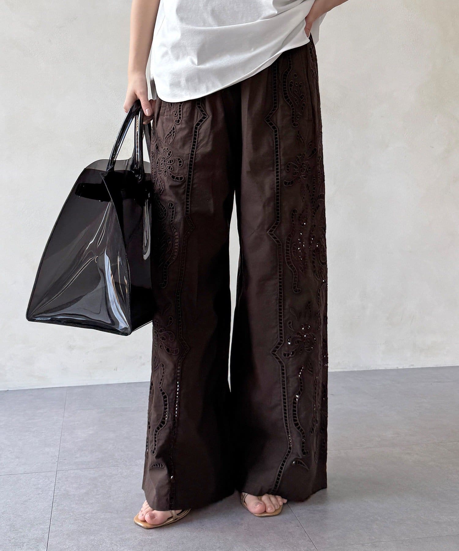 刺繍レースコットンパンツ
