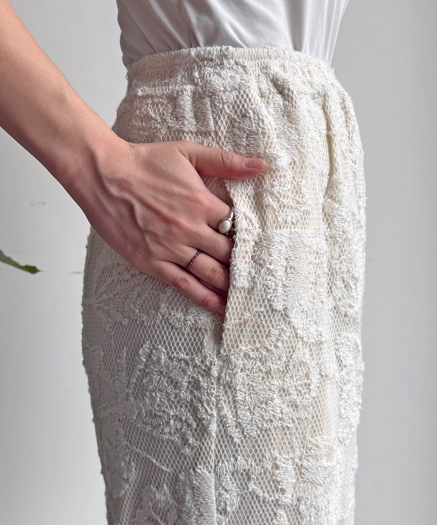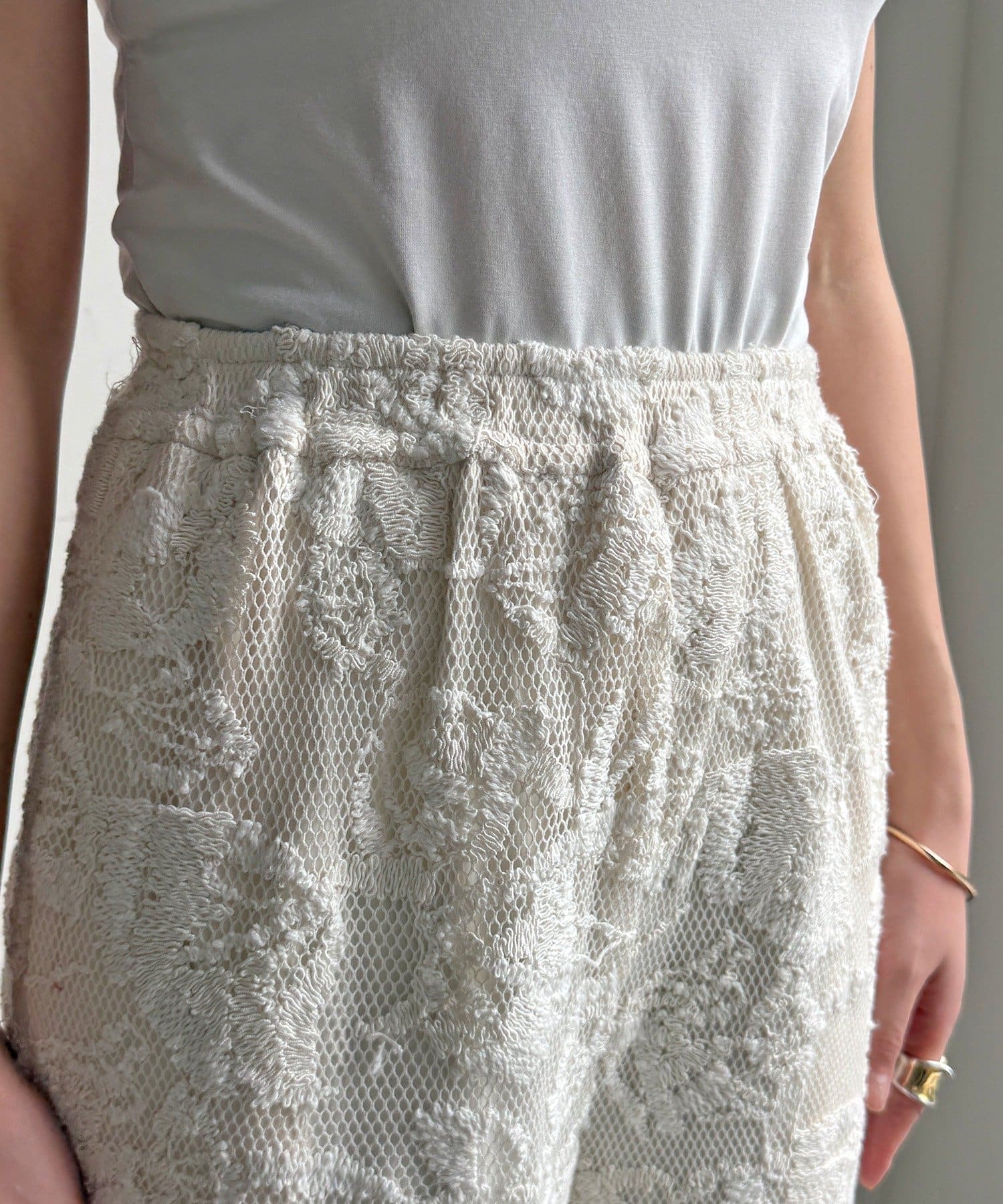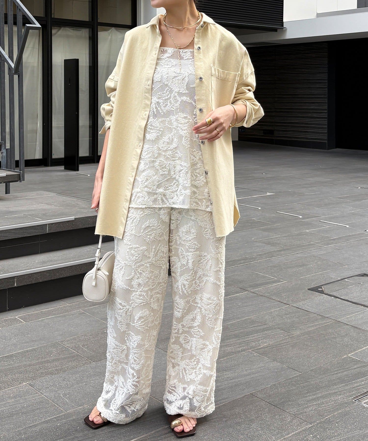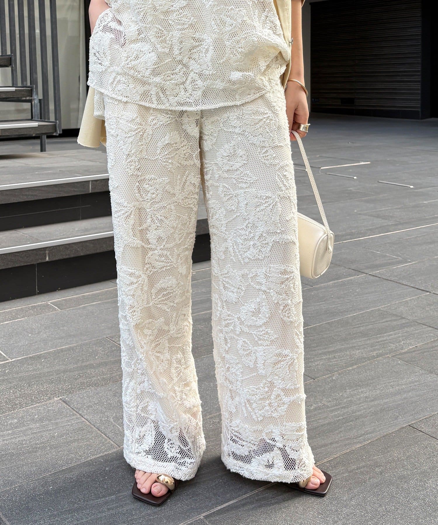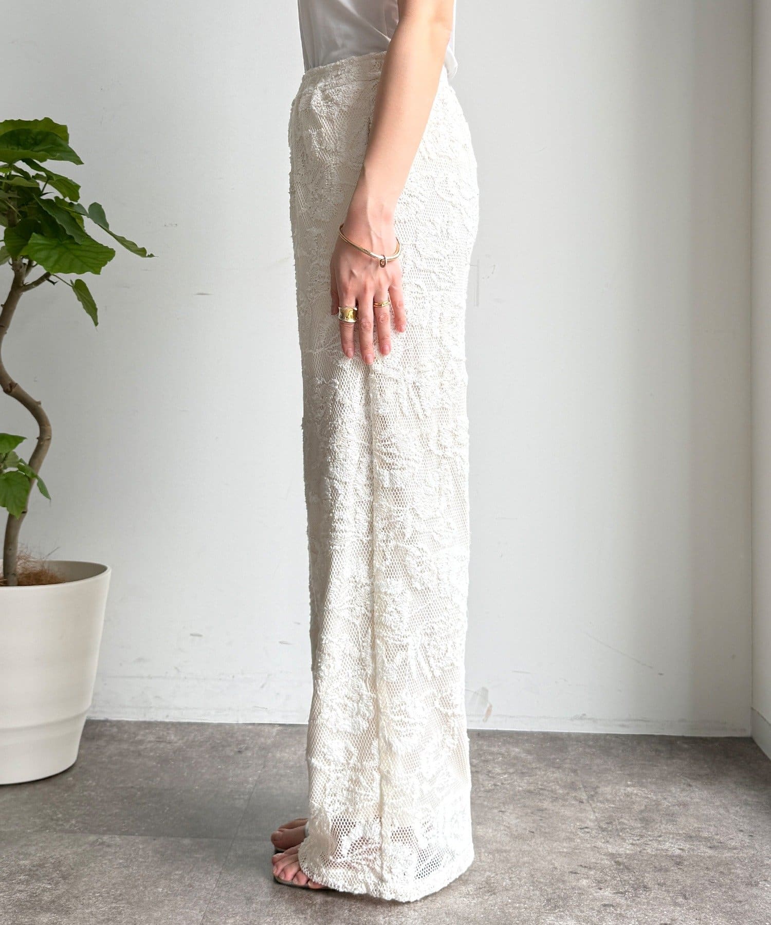 旬なスタイルに決まるレースパンツ