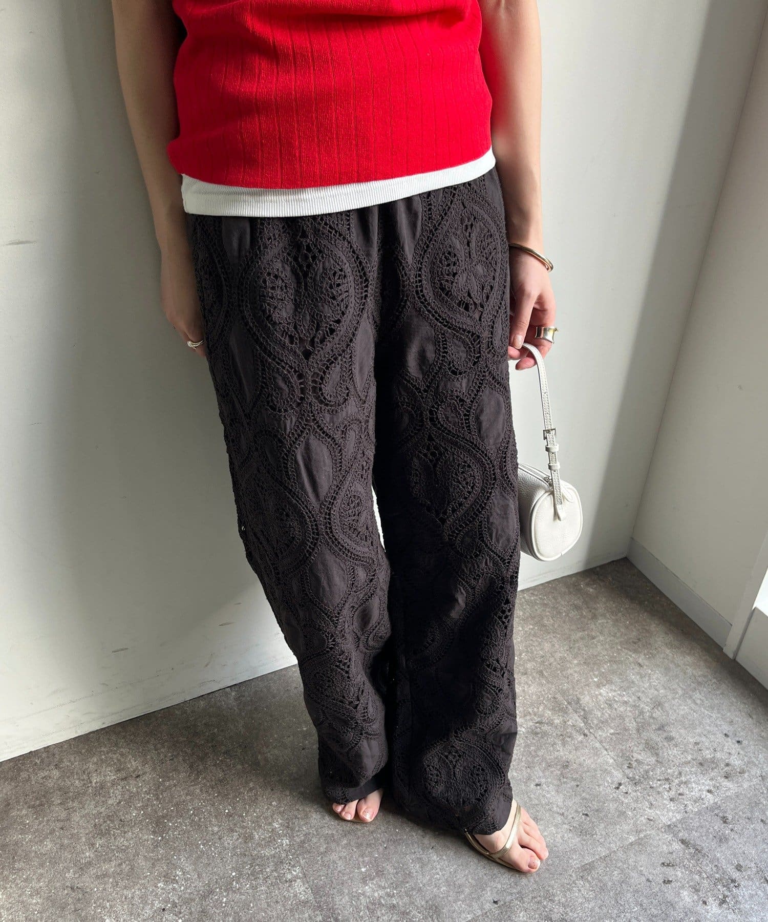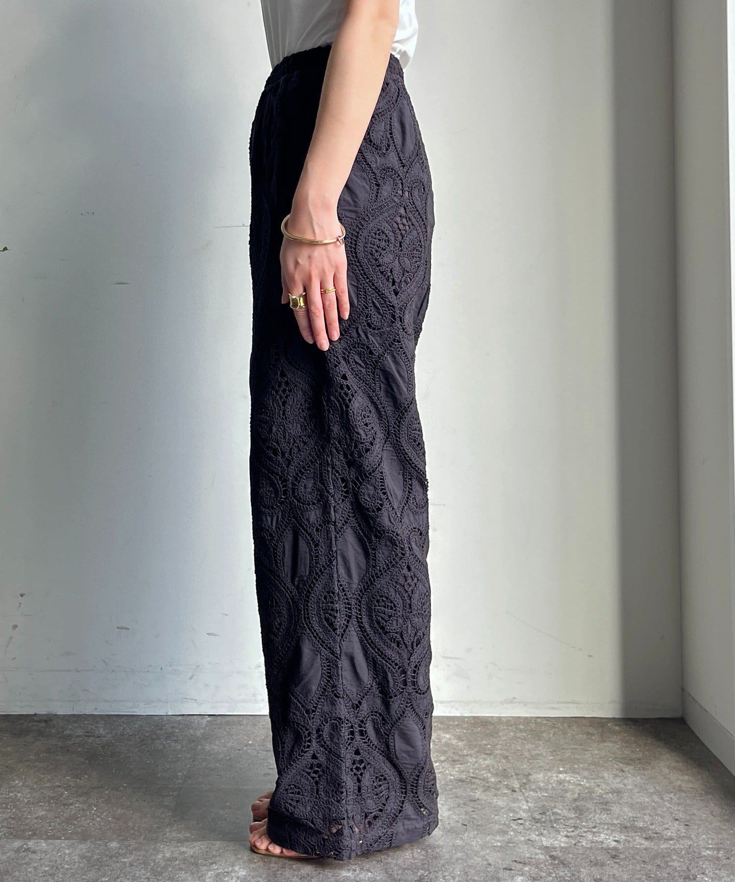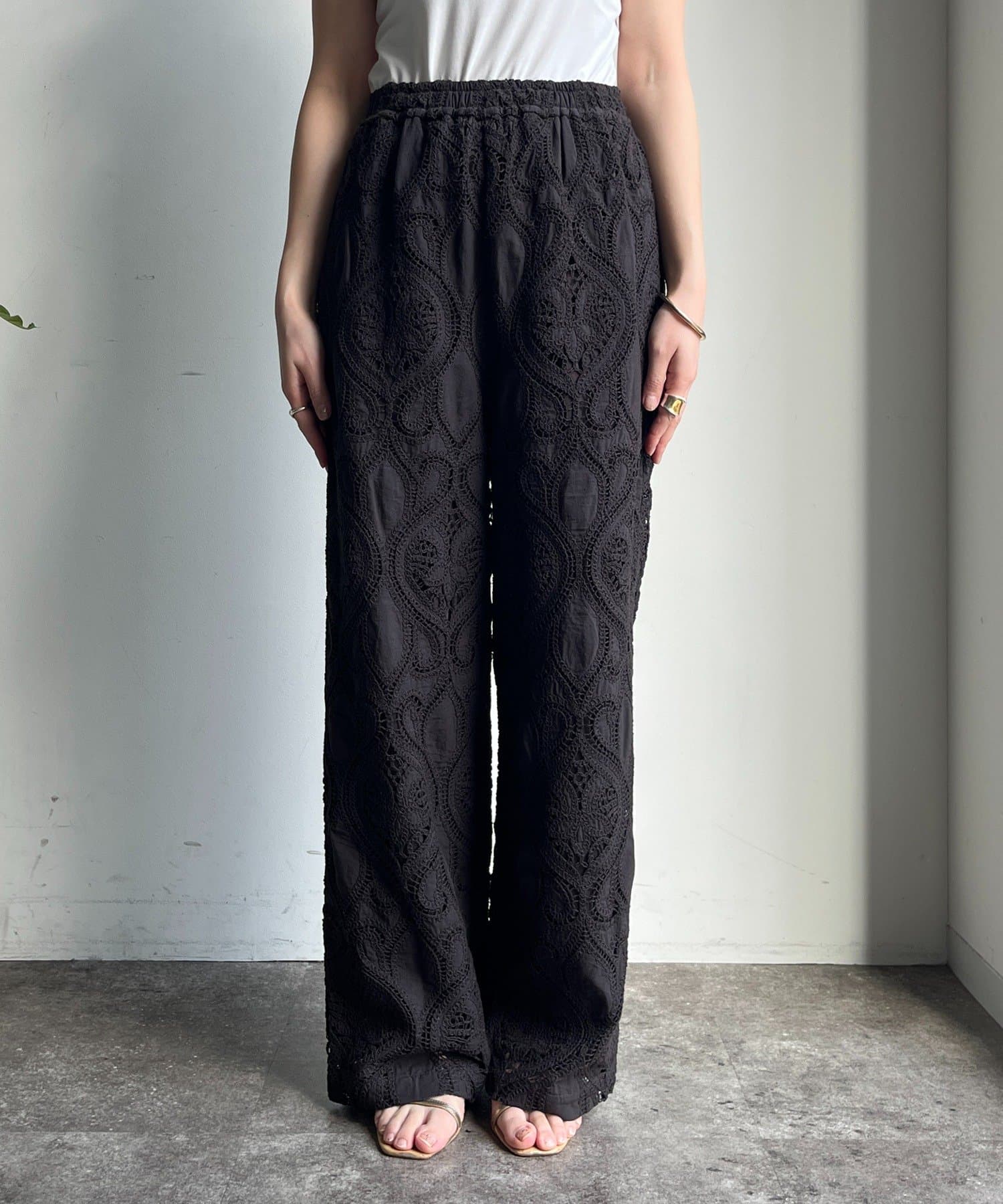 目を惹く総レースのイージーパンツが登場。