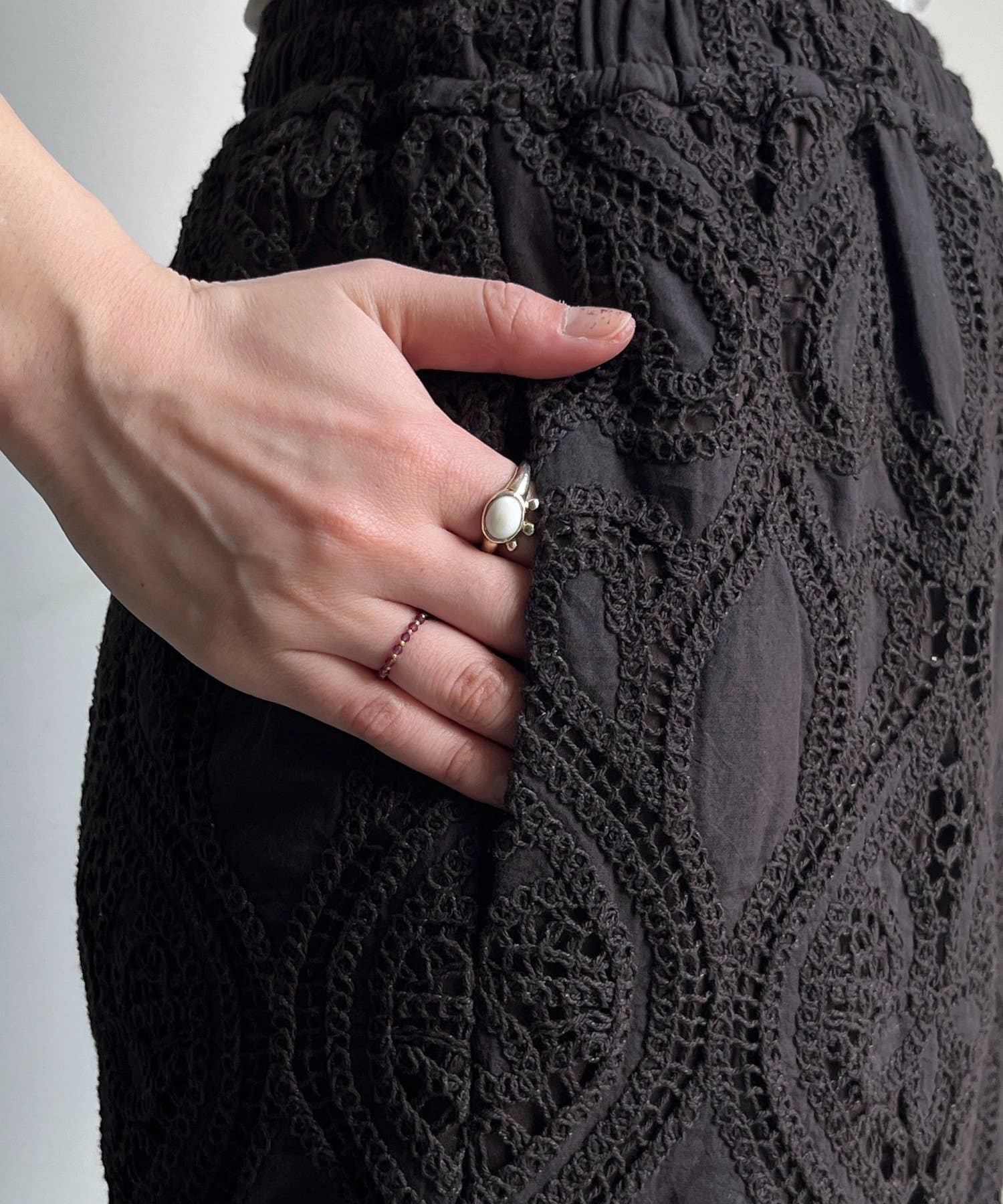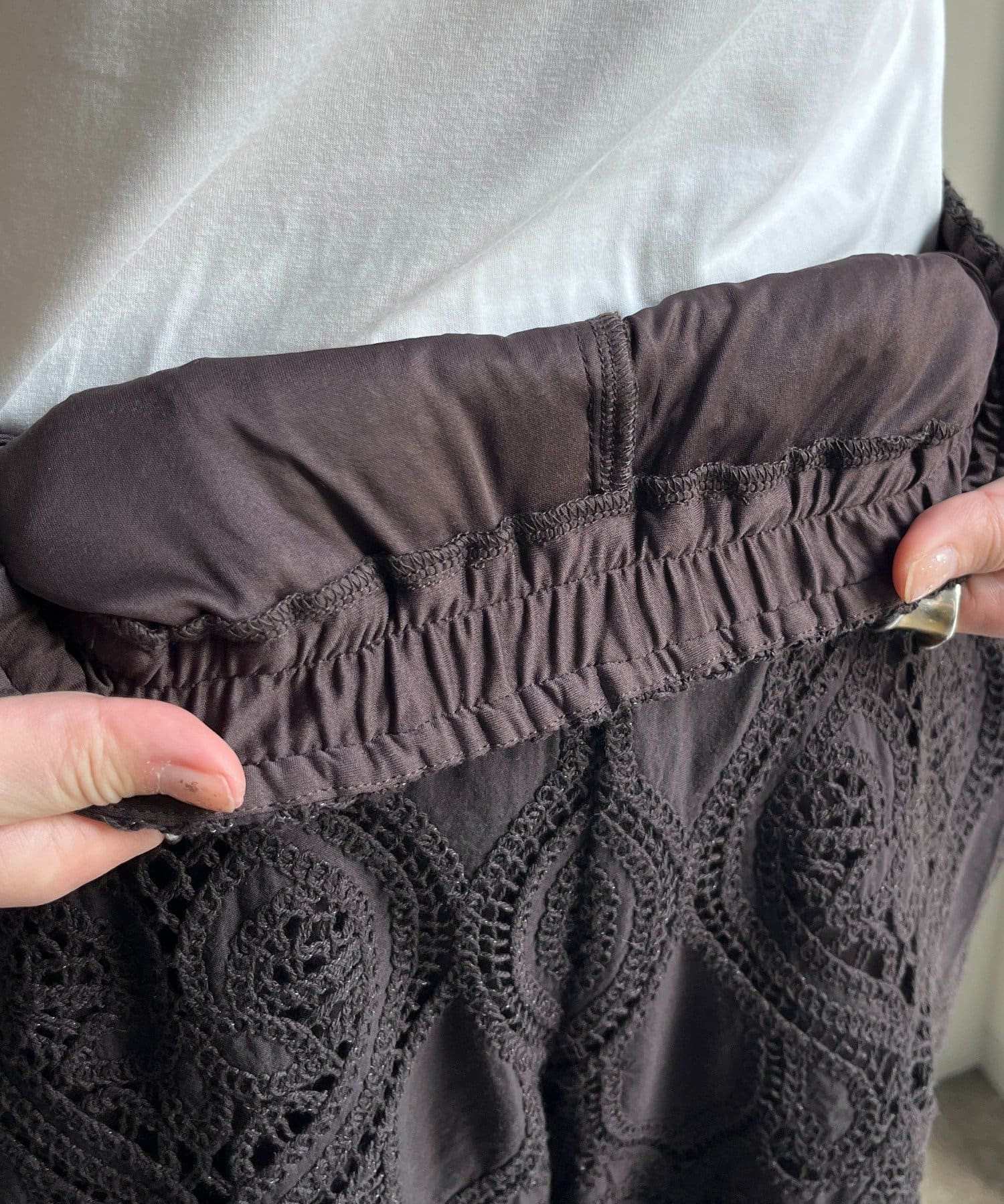 スタイリングに華やかさを与えるレースパンツ