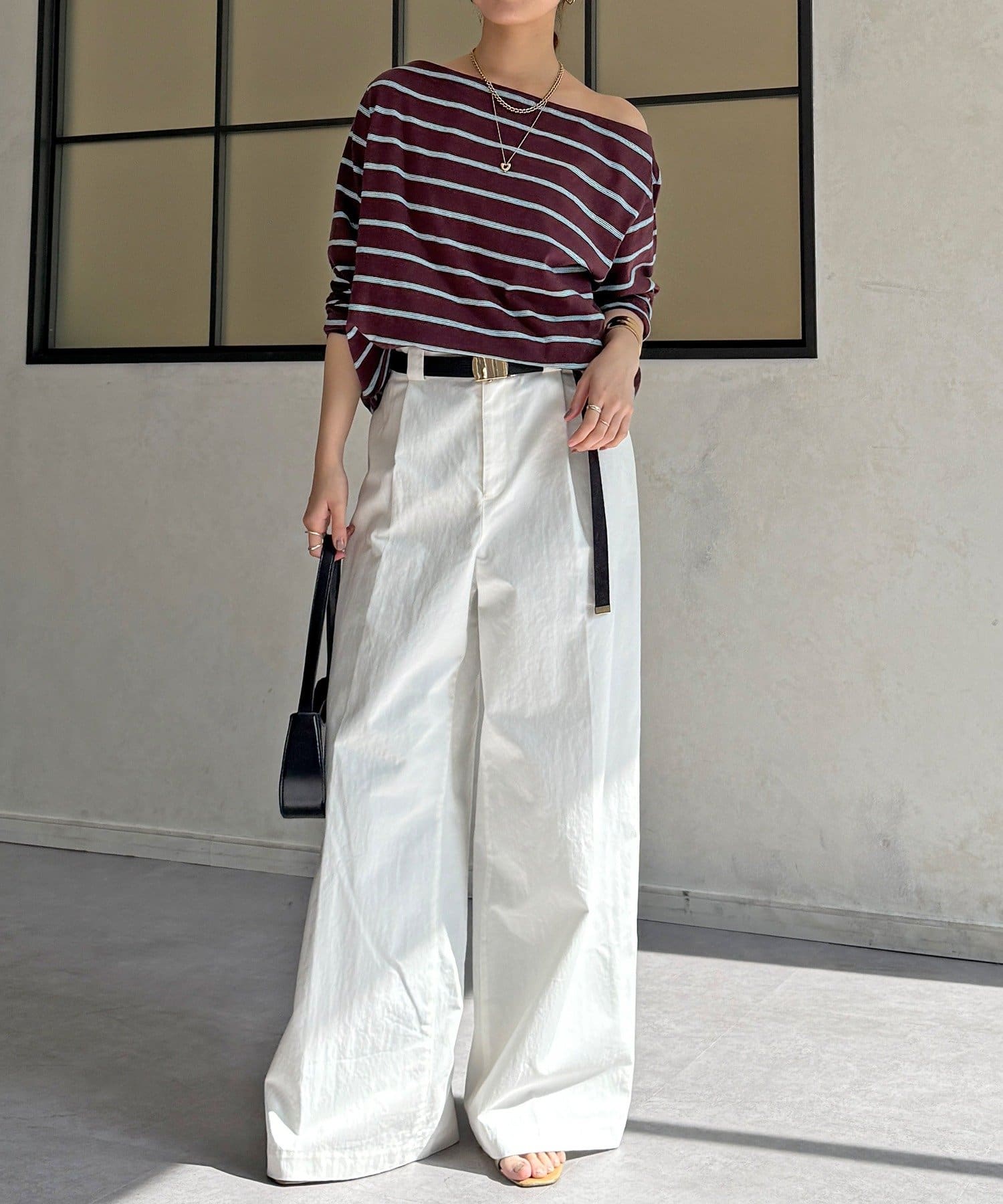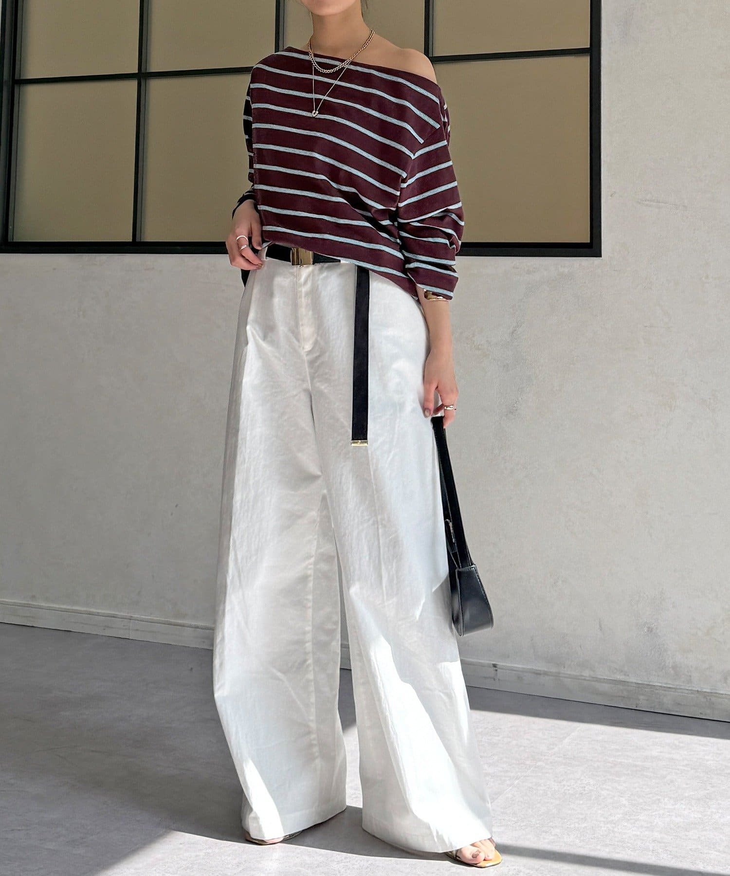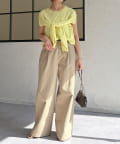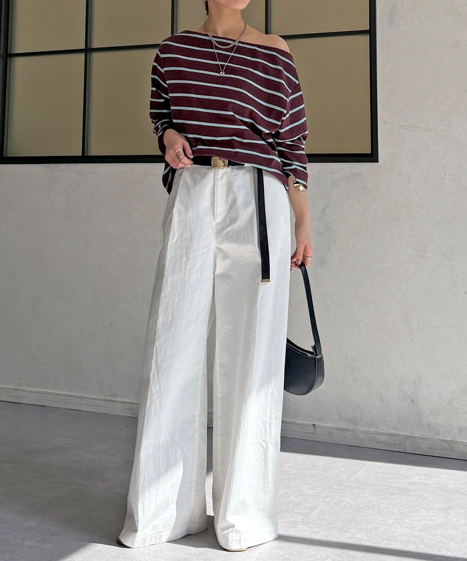 シンプルなトップスを合わせるだけで、上品さと抜け感を両立した