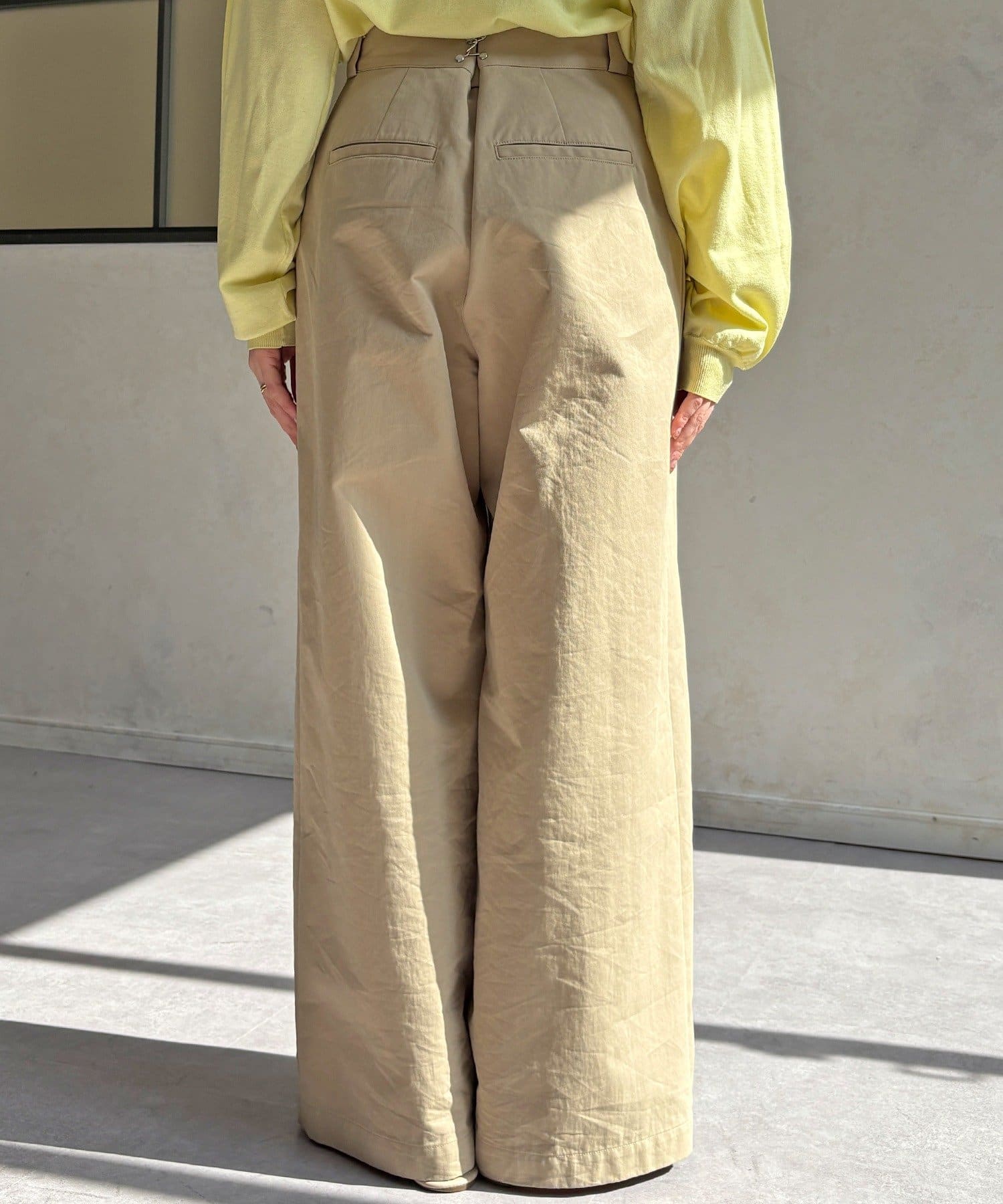 ハリ感のあるチノ素材を使用することで、ラフになり過ぎず