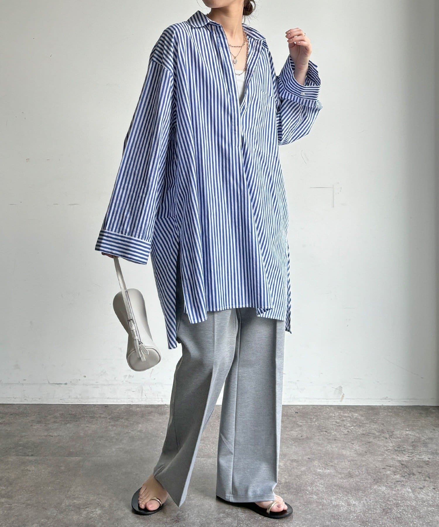落ち感のあるレーヨン混素材で、上品な印象に仕上げた一枚。