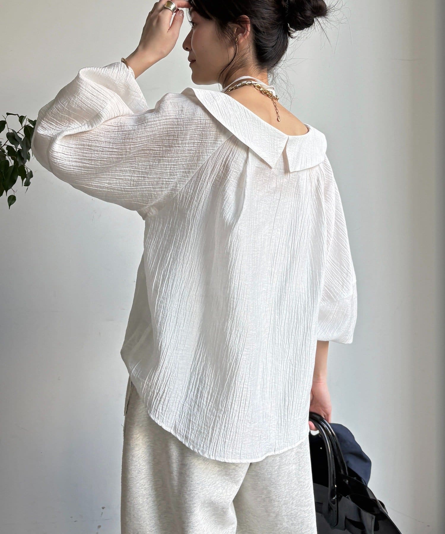 袖が切り替わっておりふんわりとしたシルエットは、女性らさを表現。