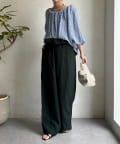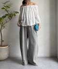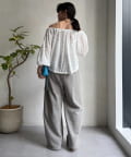 肩まわりはゴム仕様で程よくフィットし、自然なギャザーが柔らかなドレープを生み出します。