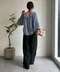 身頃はゆったりとしたシルエットで、体のラインを拾いにくく、リラックス感のある着心地。