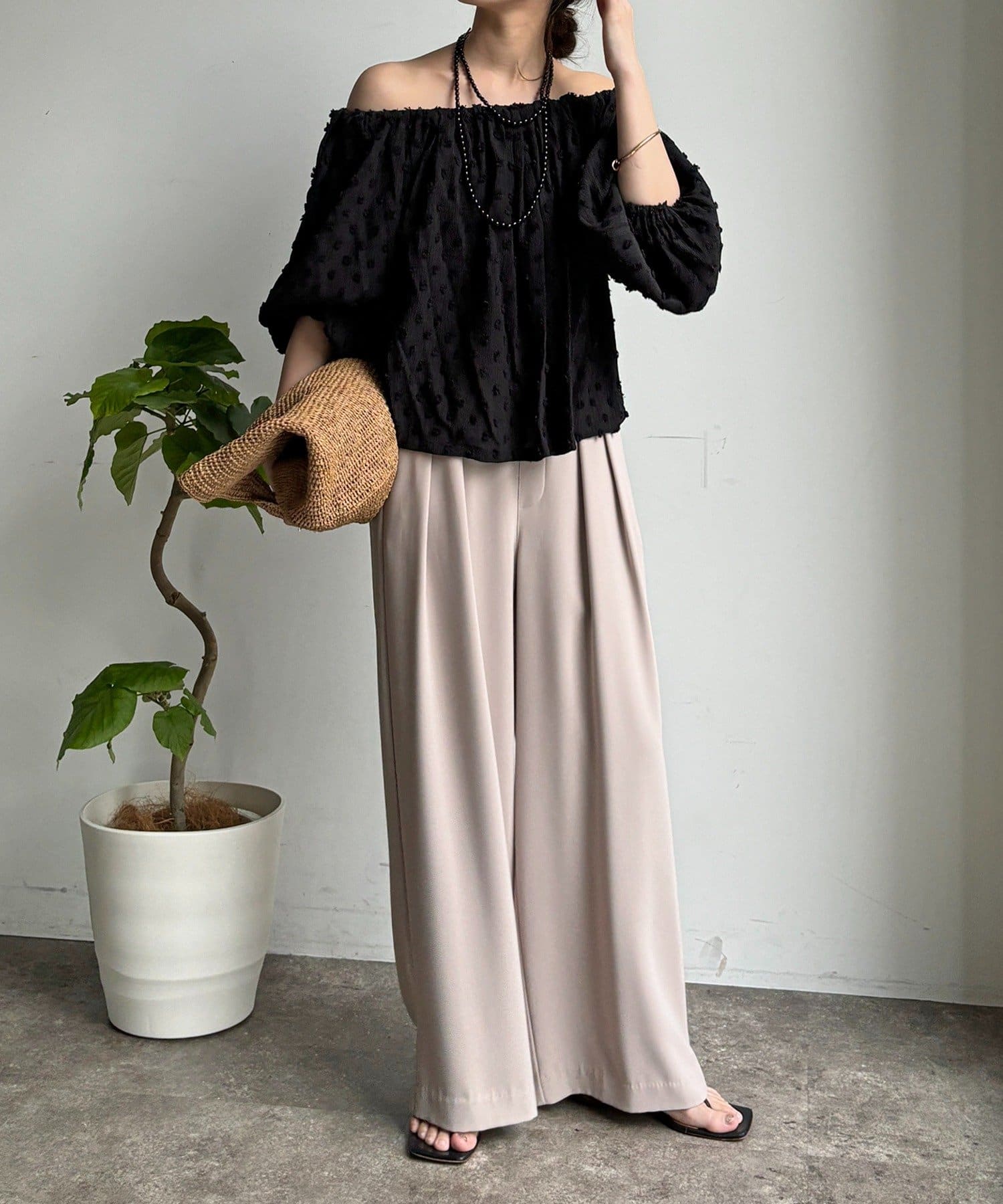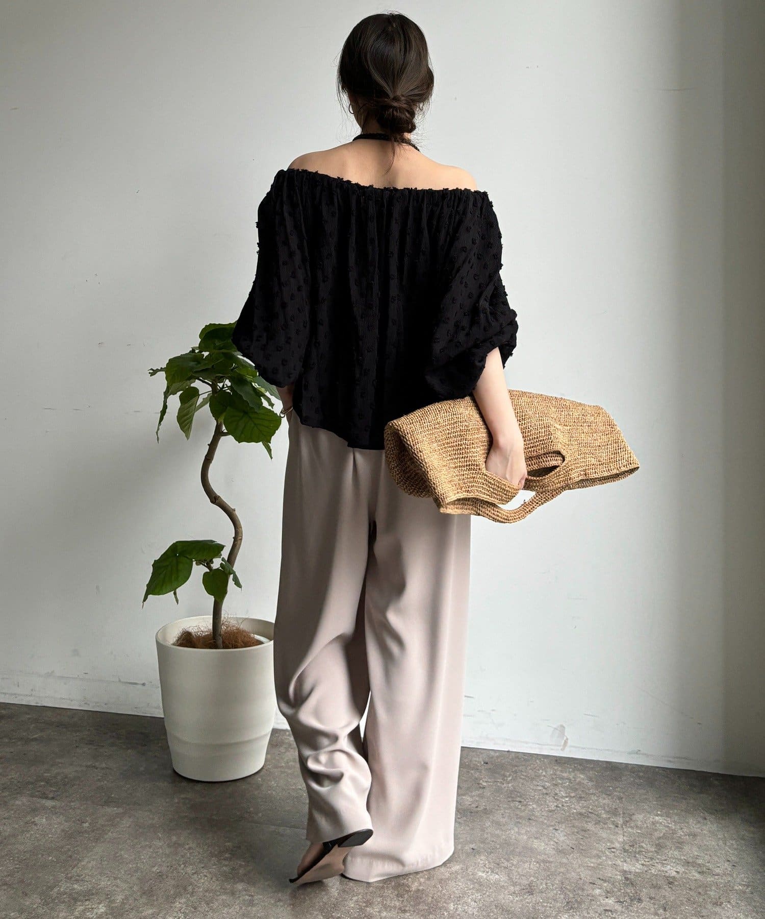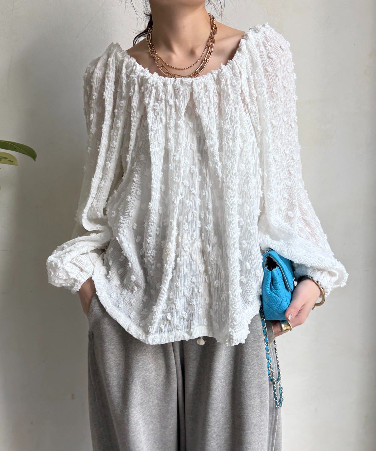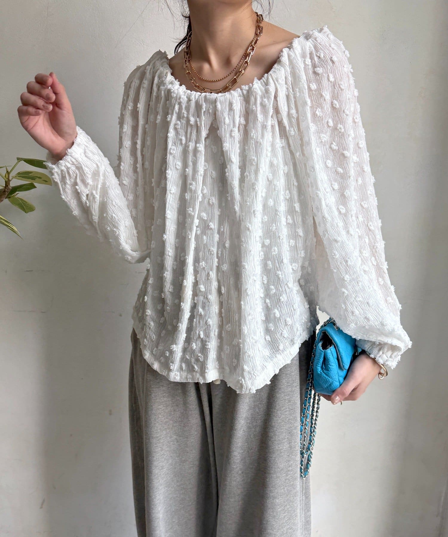 ふんわりとした立体感と繊細な表情が魅力のオフショルブラウス。