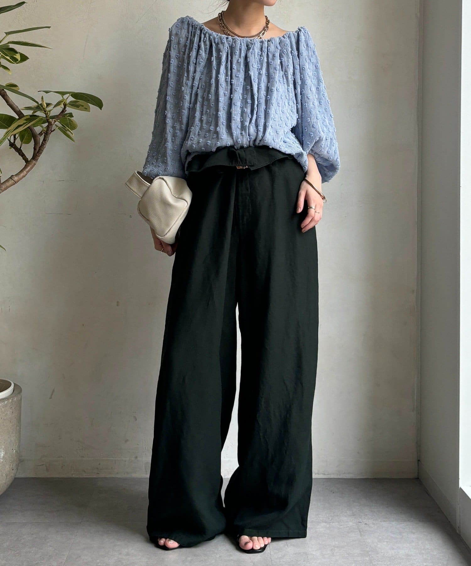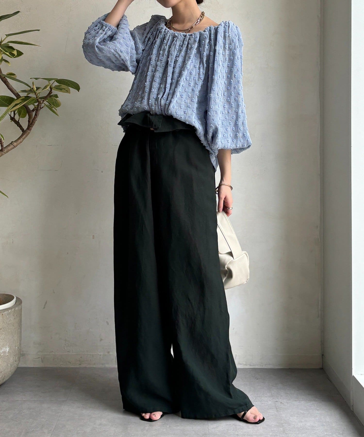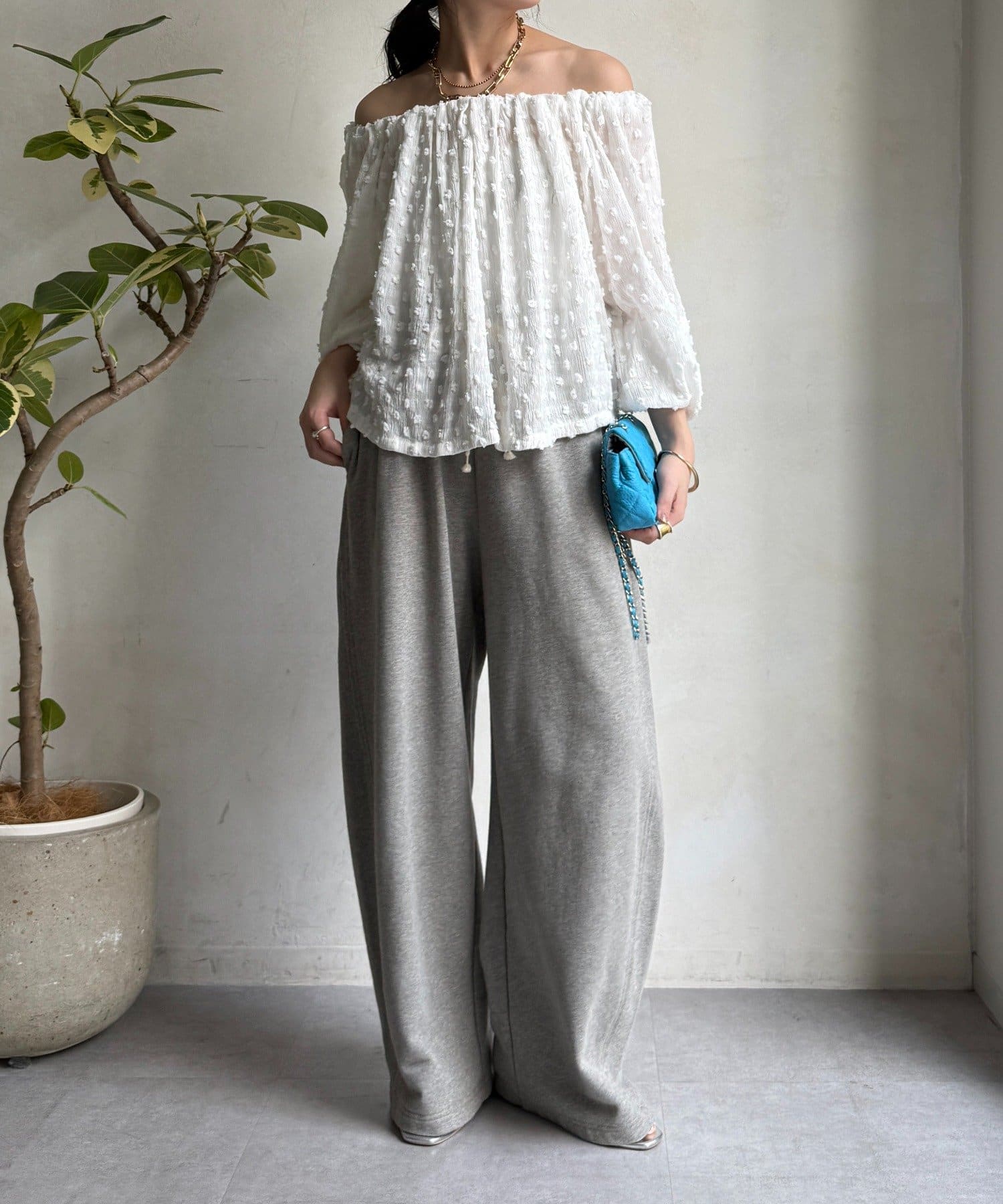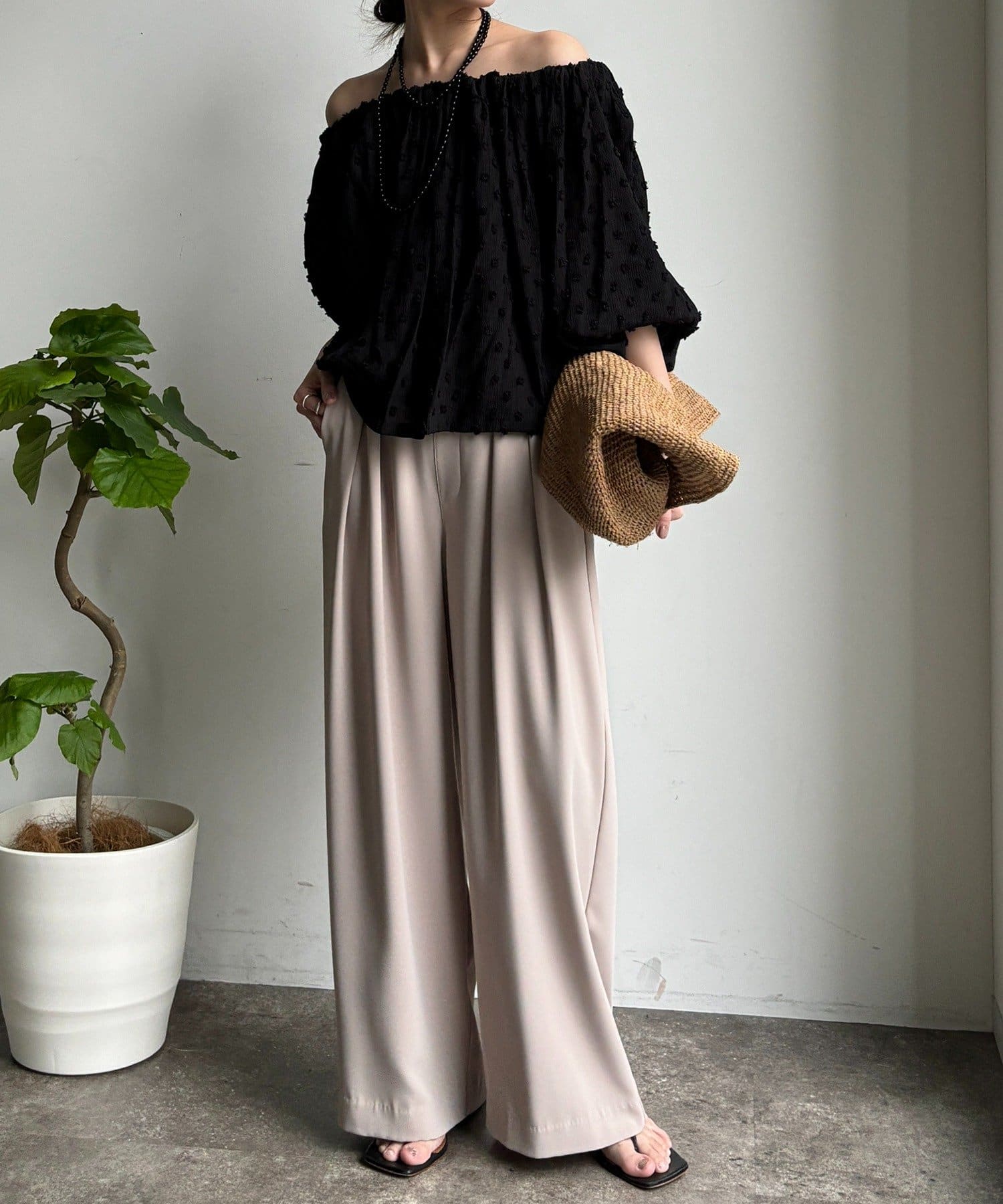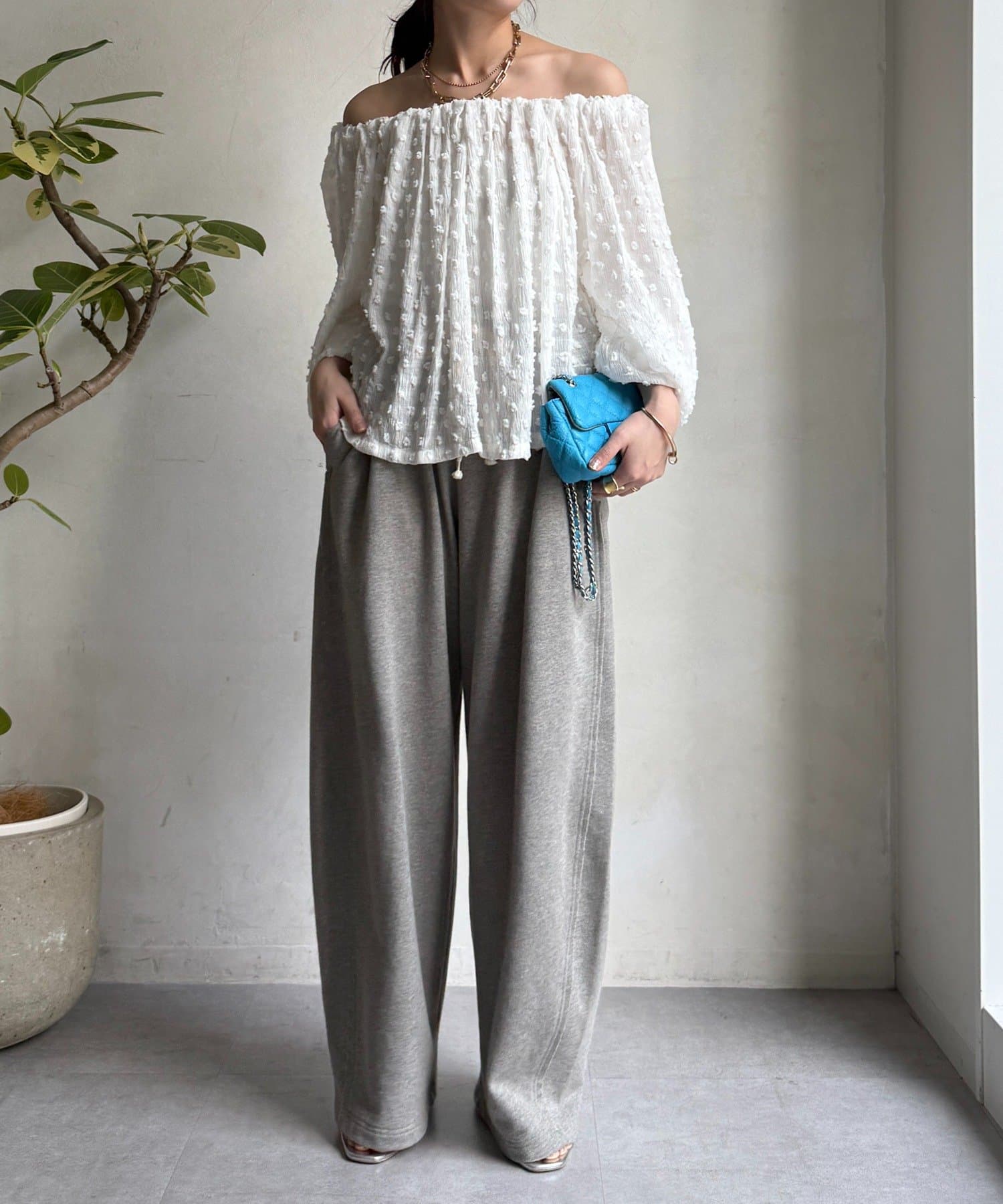 ふんわりとした立体感と繊細な表情が魅力のオフショルブラウス。