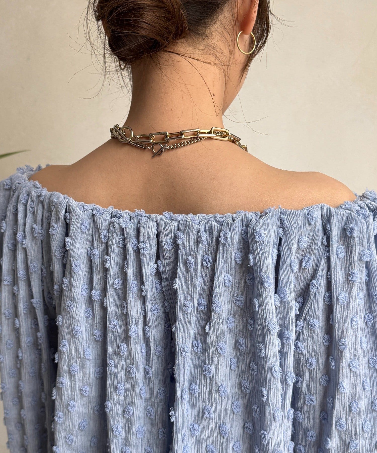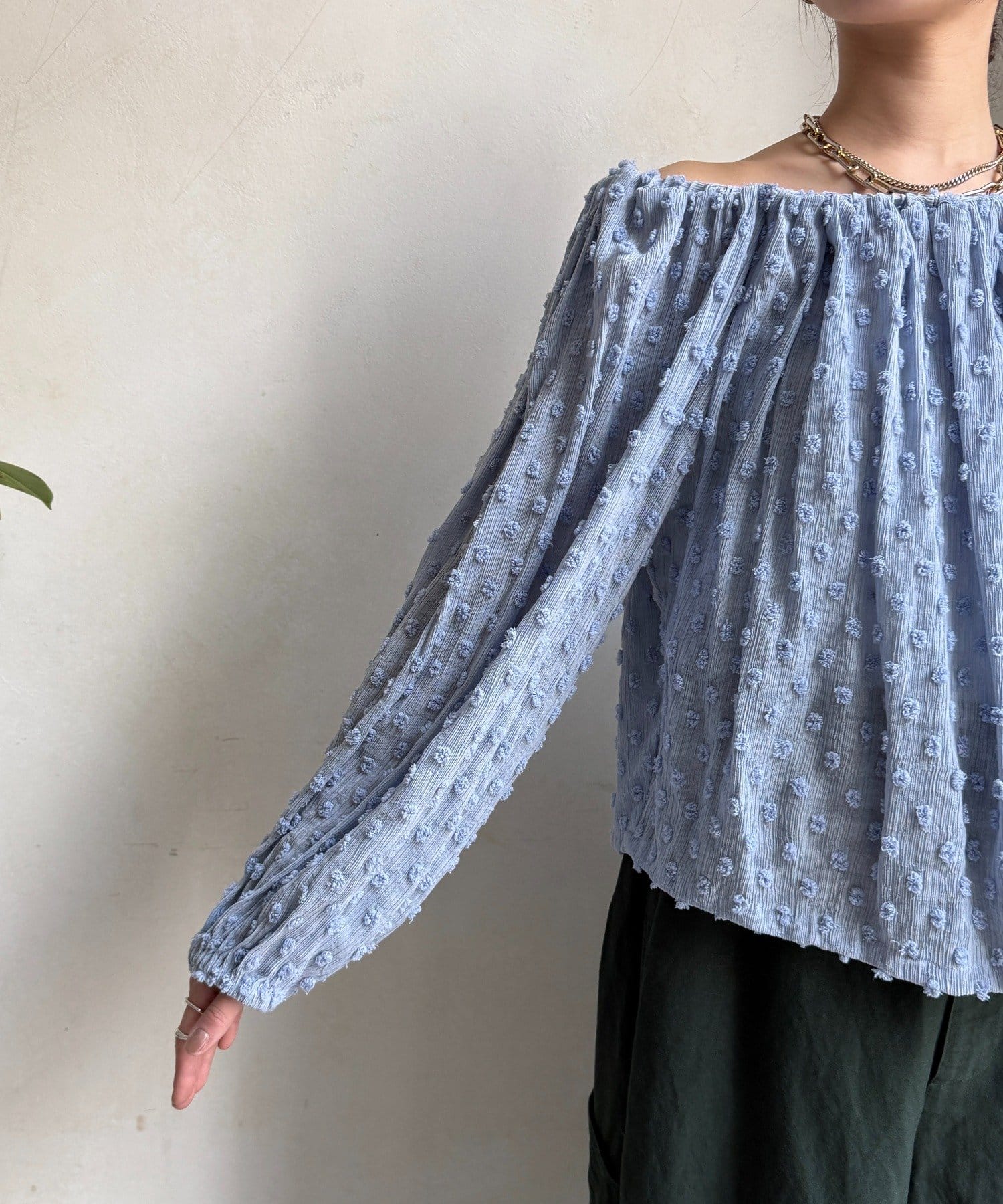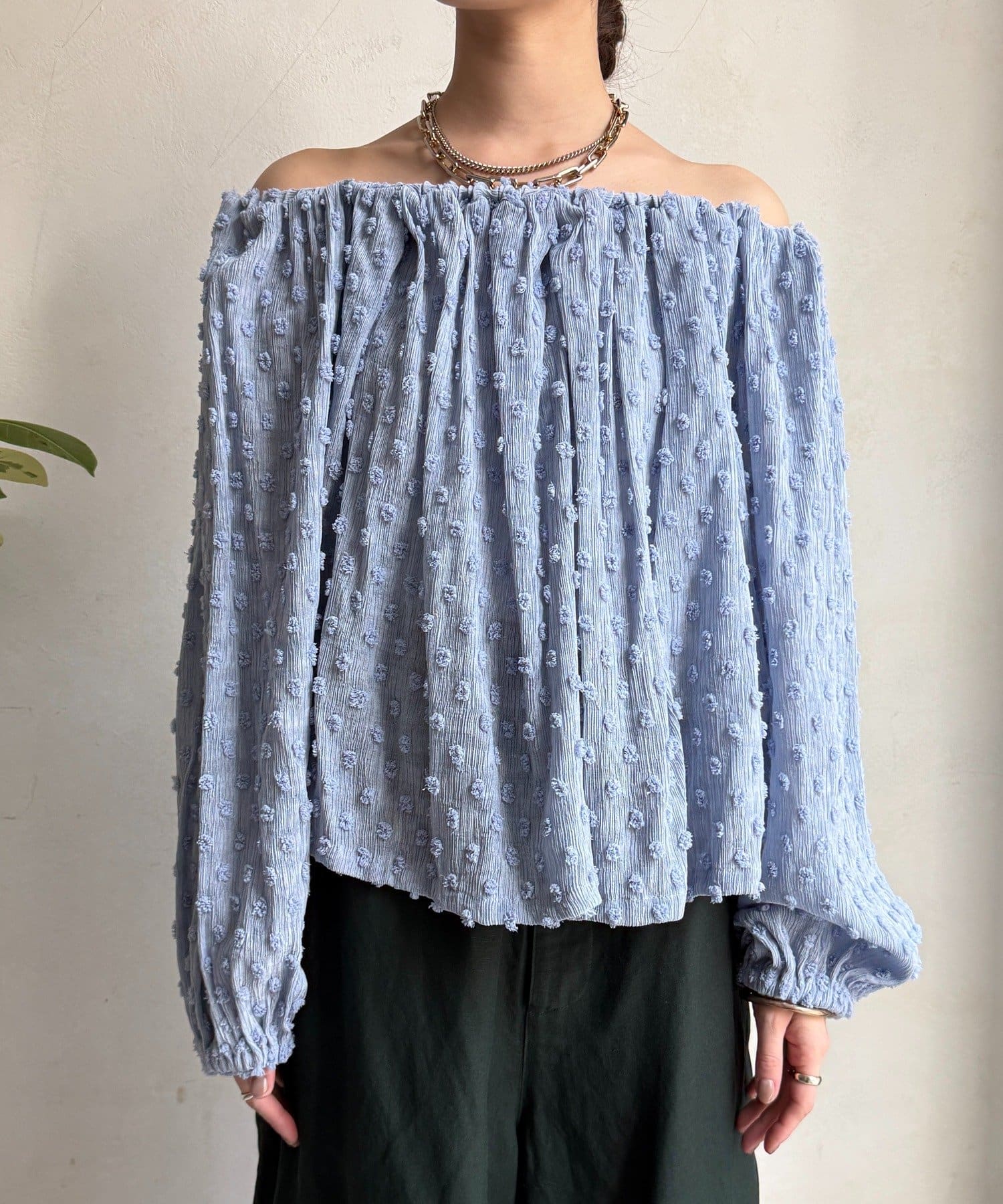 • DOUDOU(ドゥドゥ) ドットジャガードオフショルブラウス