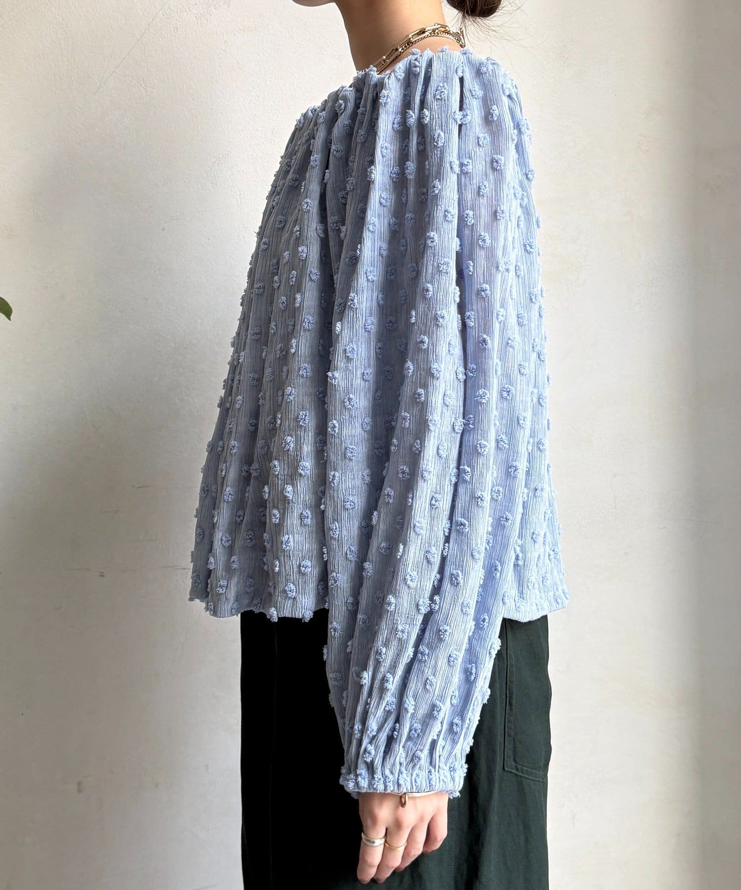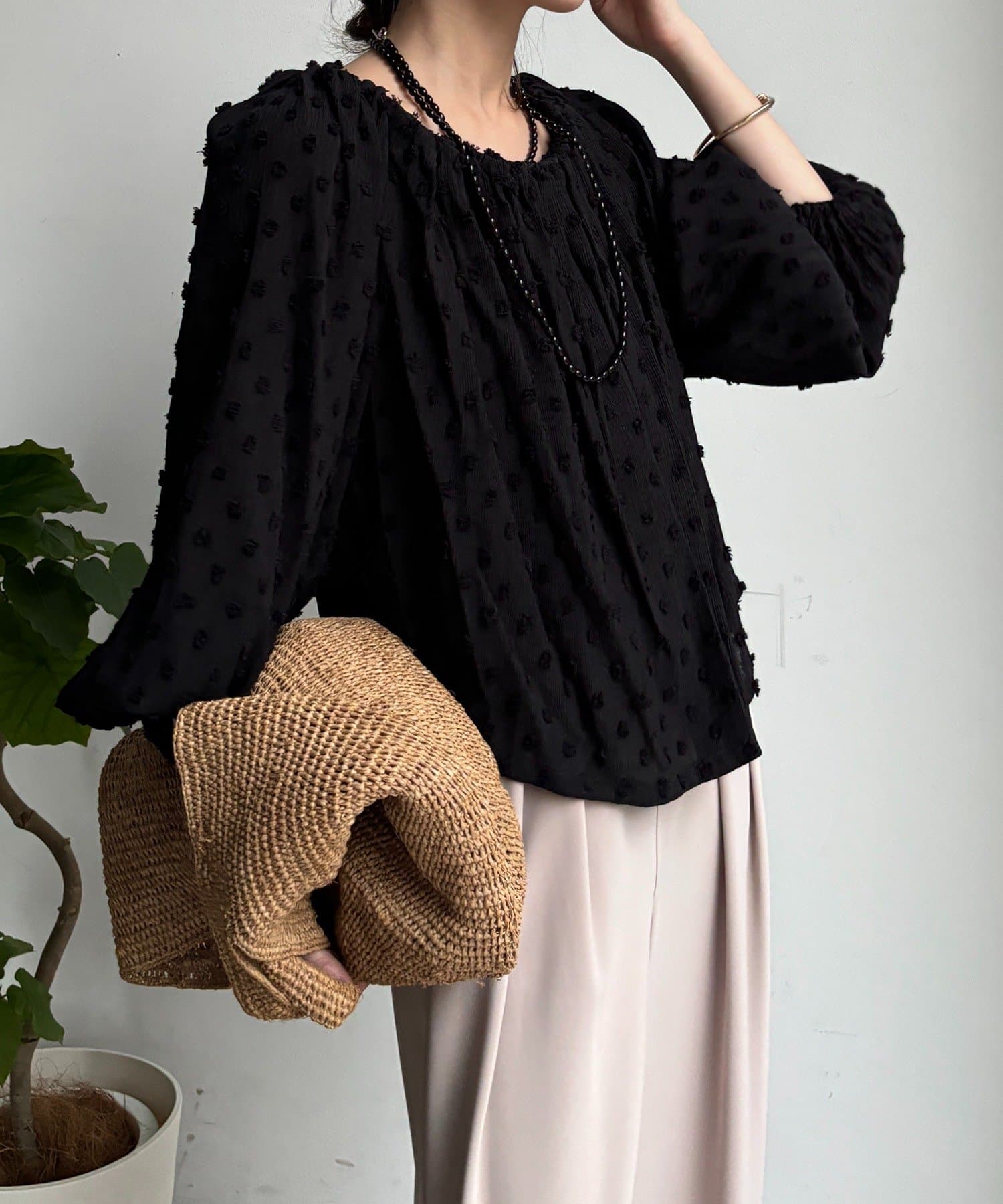 DOUDOU(ドゥドゥ) ドットジャガードオフショルブラウス