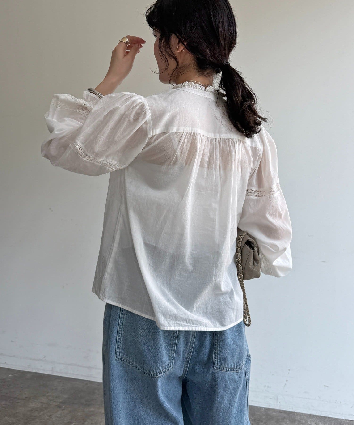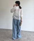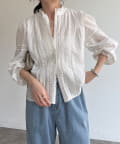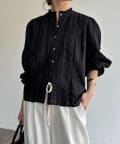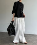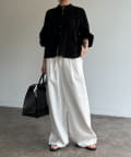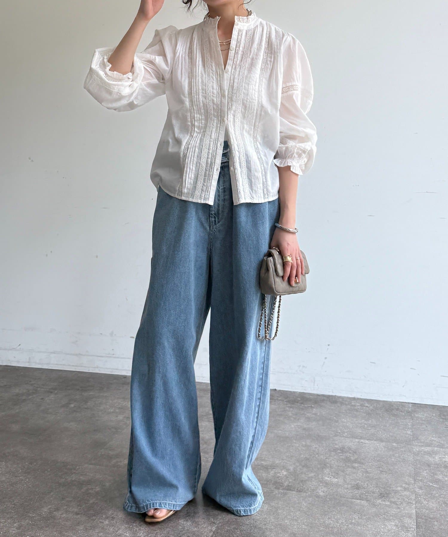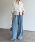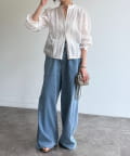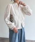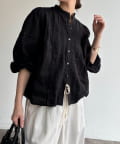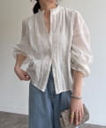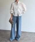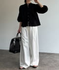 袖はふんわりとしたパフスリーブ仕様。程よいボリューム感が腕まわりを華奢に見せ、全体のシルエットに柔らかな印象をプラスします。