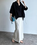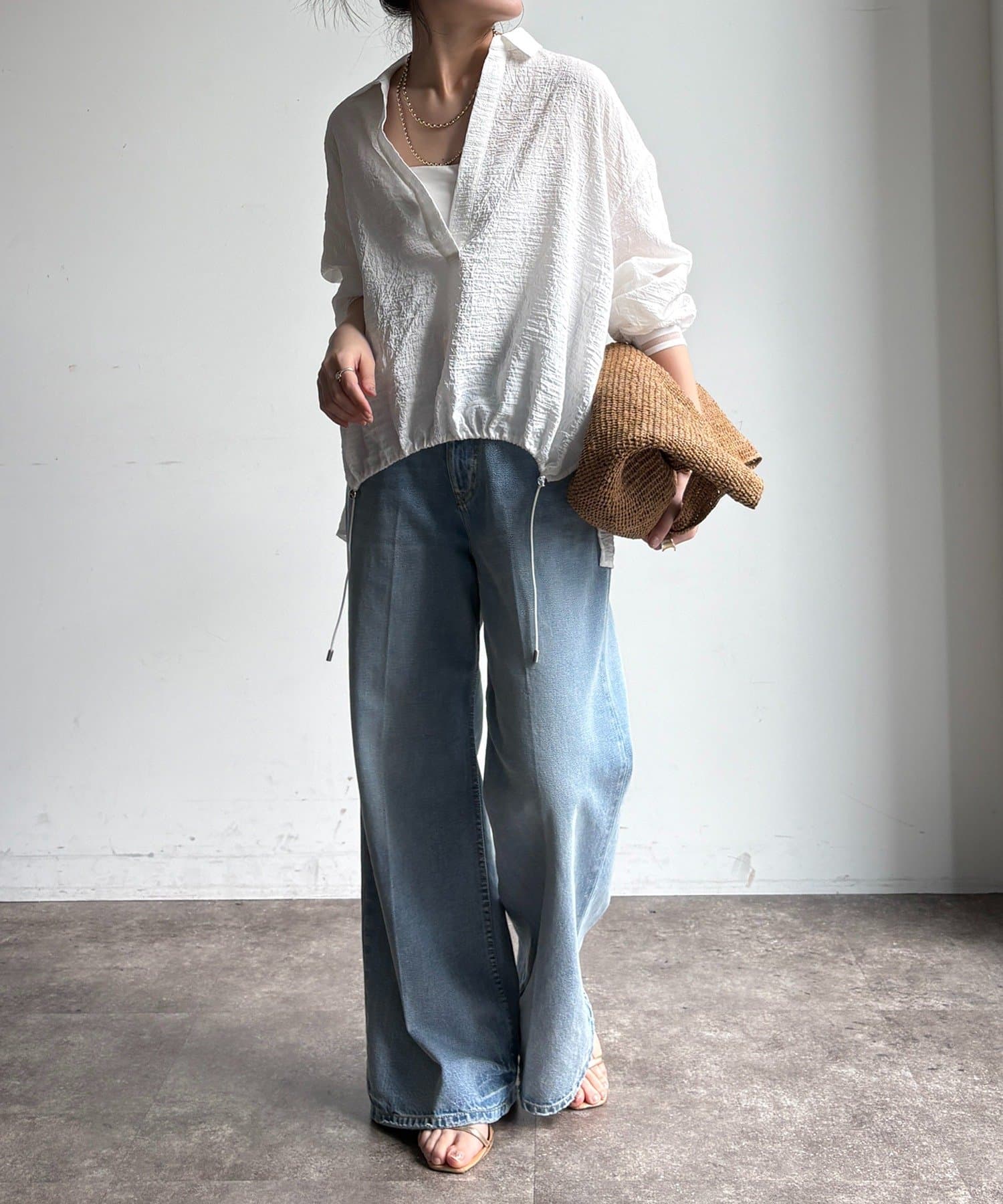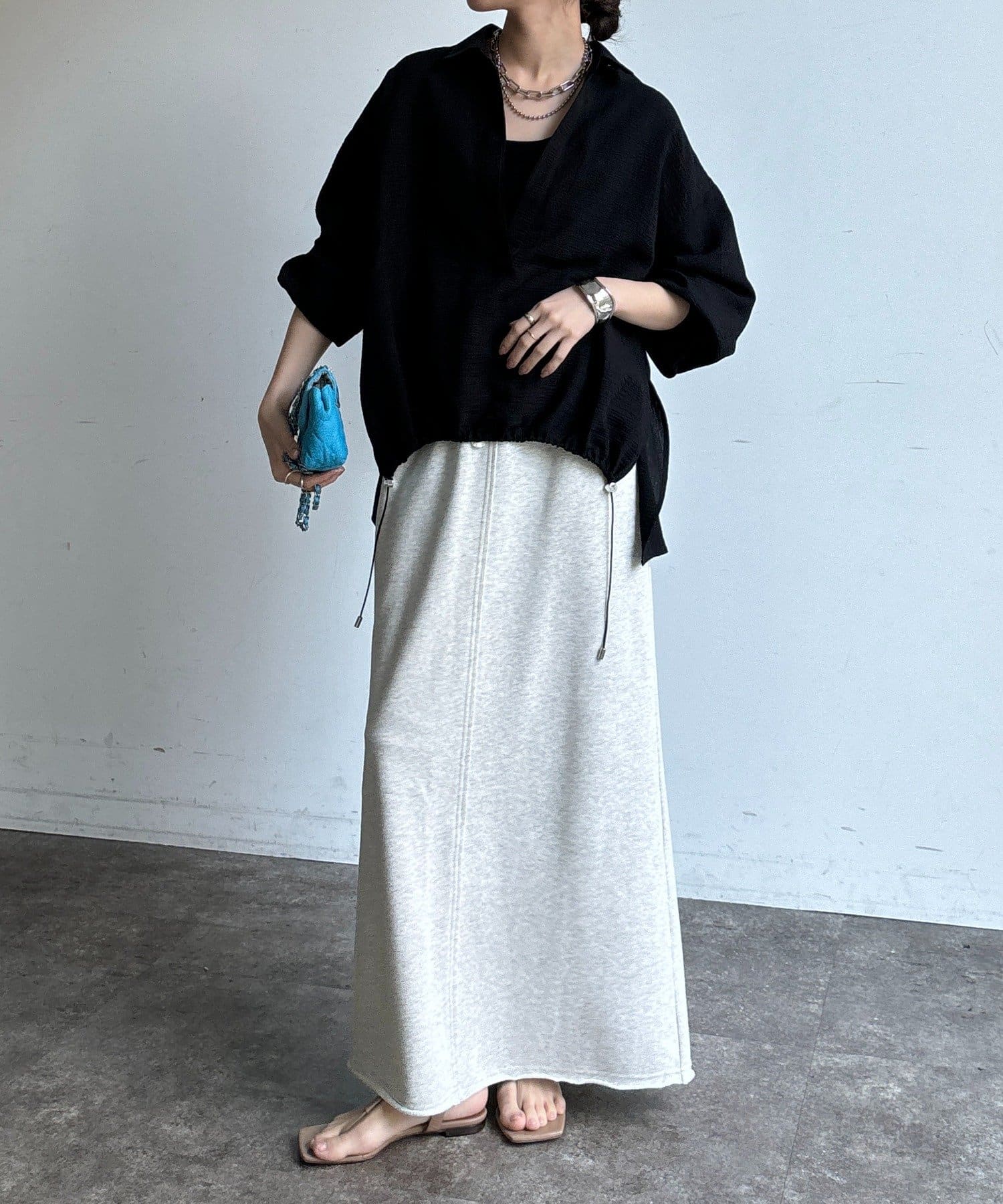ドロスト使用でシルエットのアレンジを可能に。きゅっと絞ればウエストにメリハリが生まれ、女性らしい立体的なフォルムに。