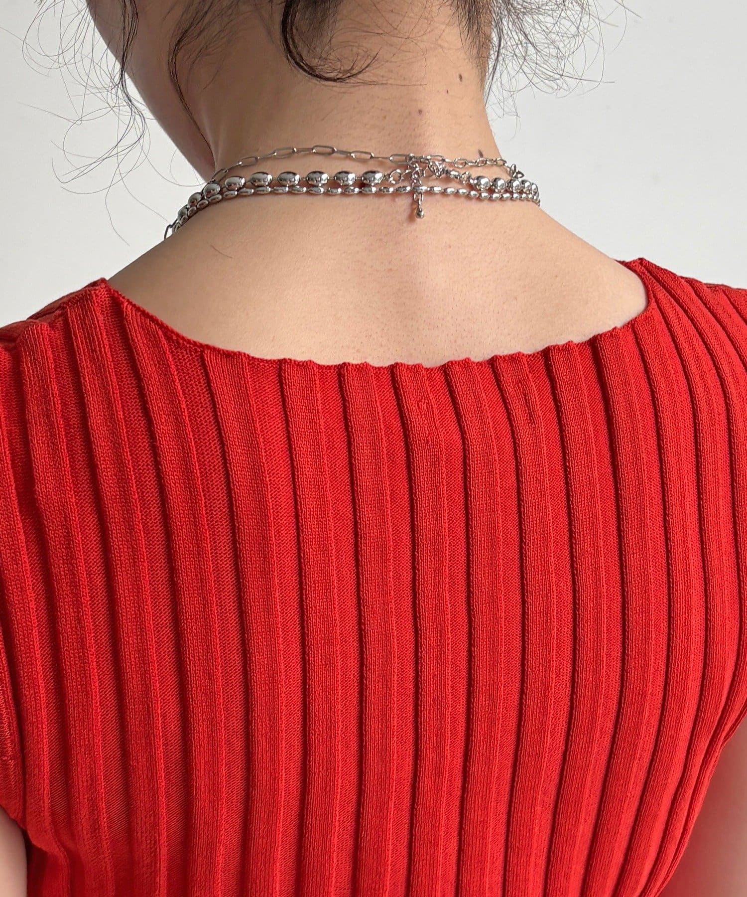 ニット特有の立体感があり、一枚で着ても下着感が出ず上品な印象を引き立てます。