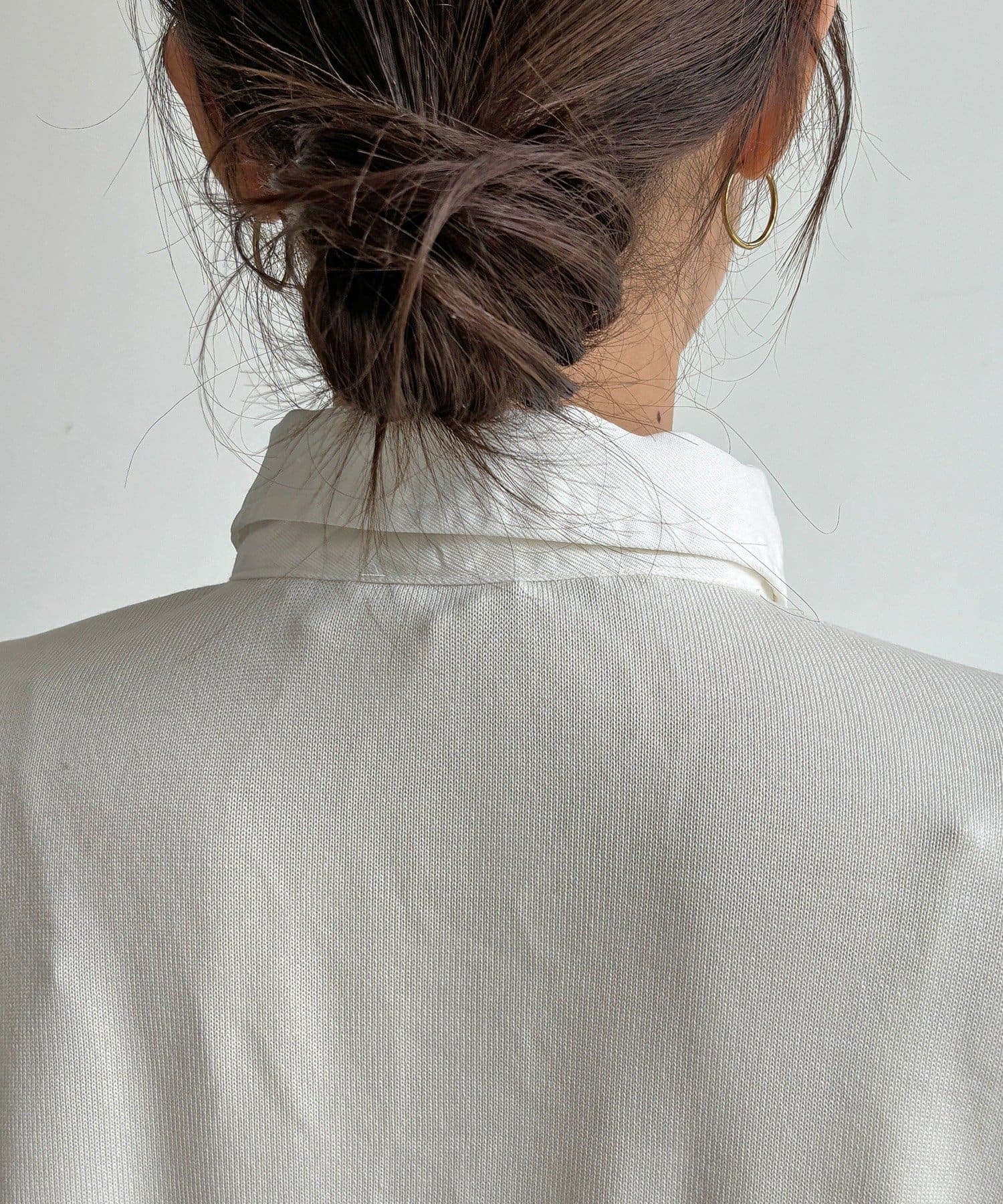 肩の落ち感と程よいゆったり感がリラックスした着心地を再現。
