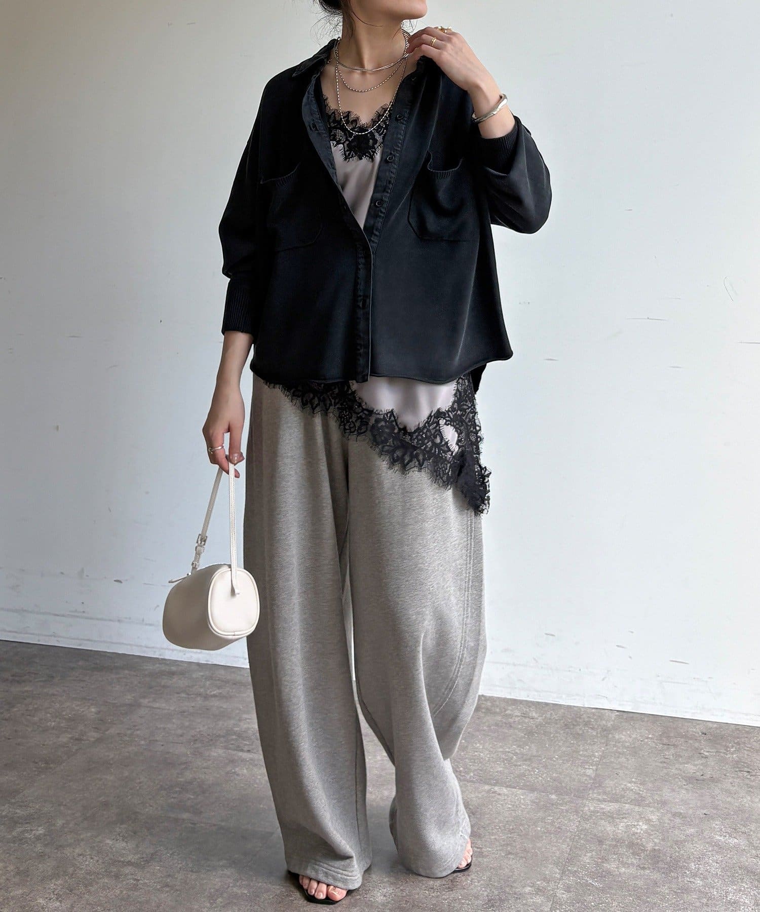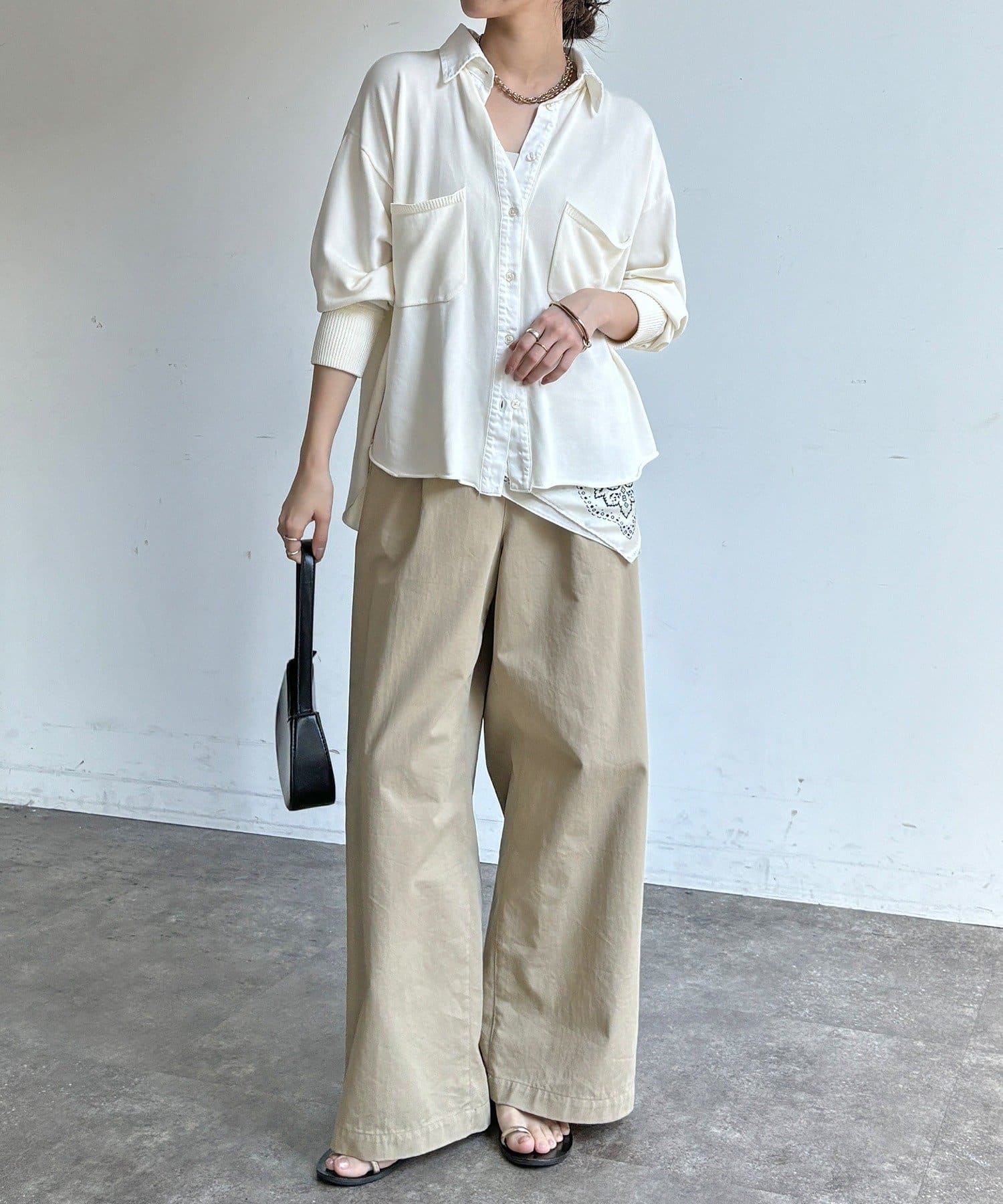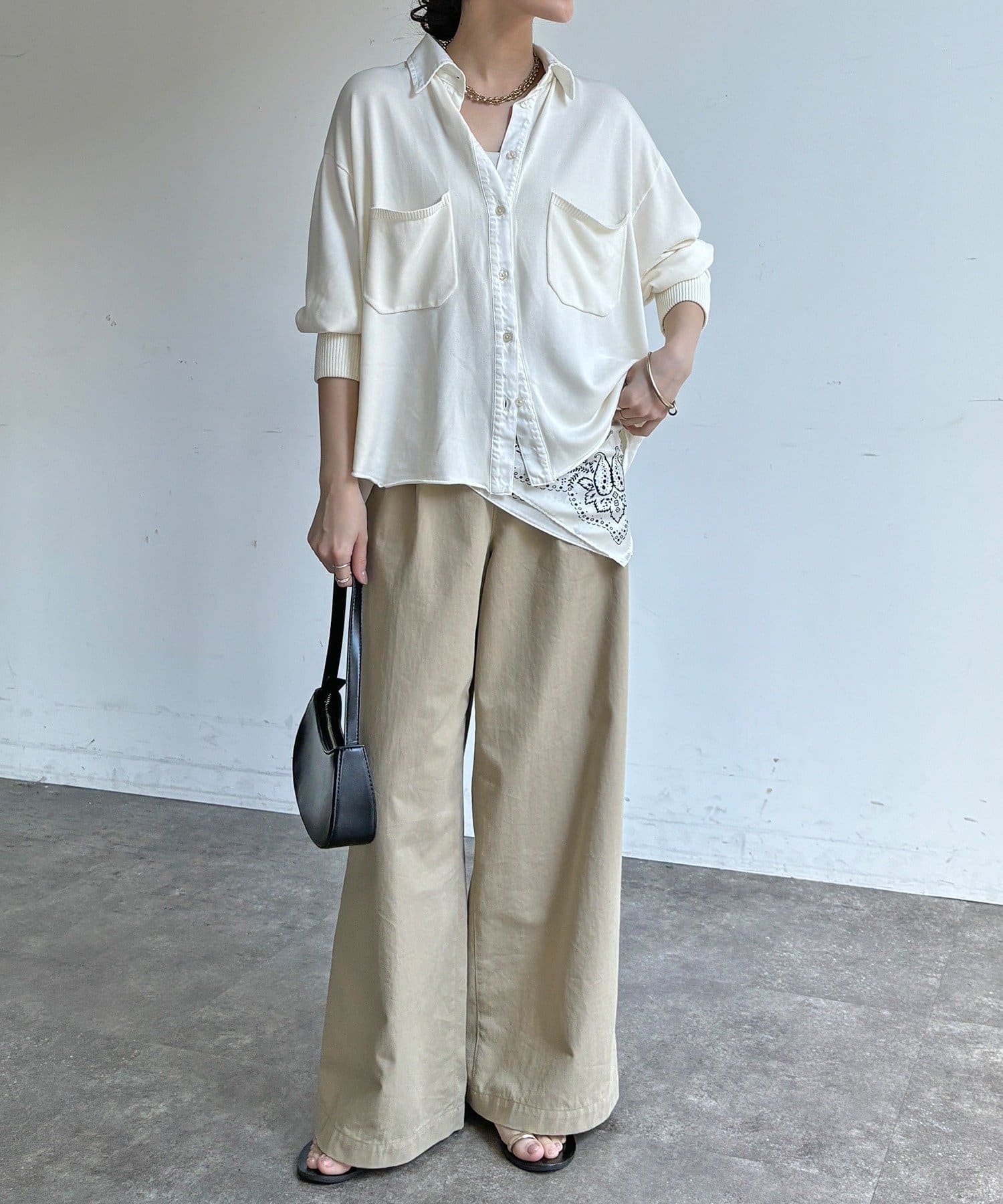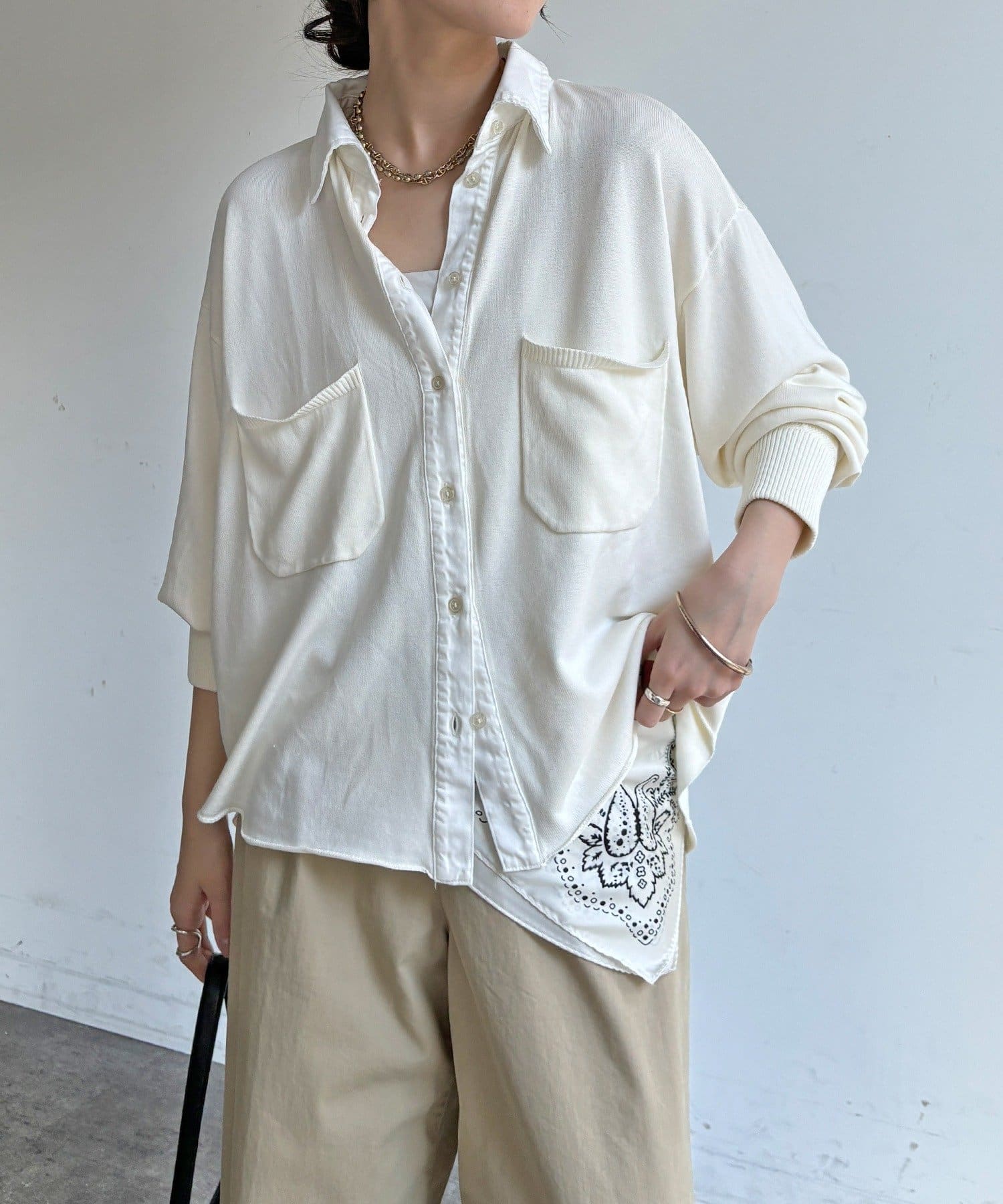 異素材ミックスで魅せる大人のこなれシャツ