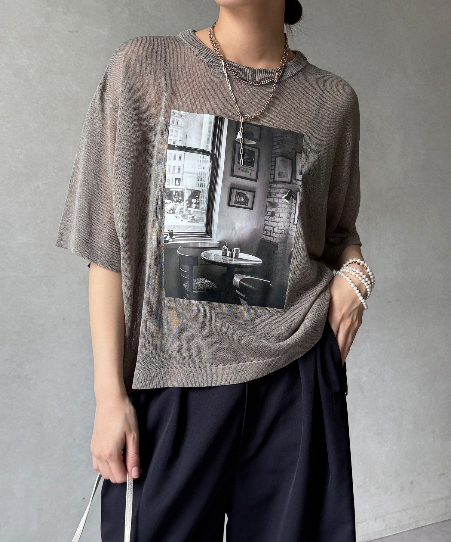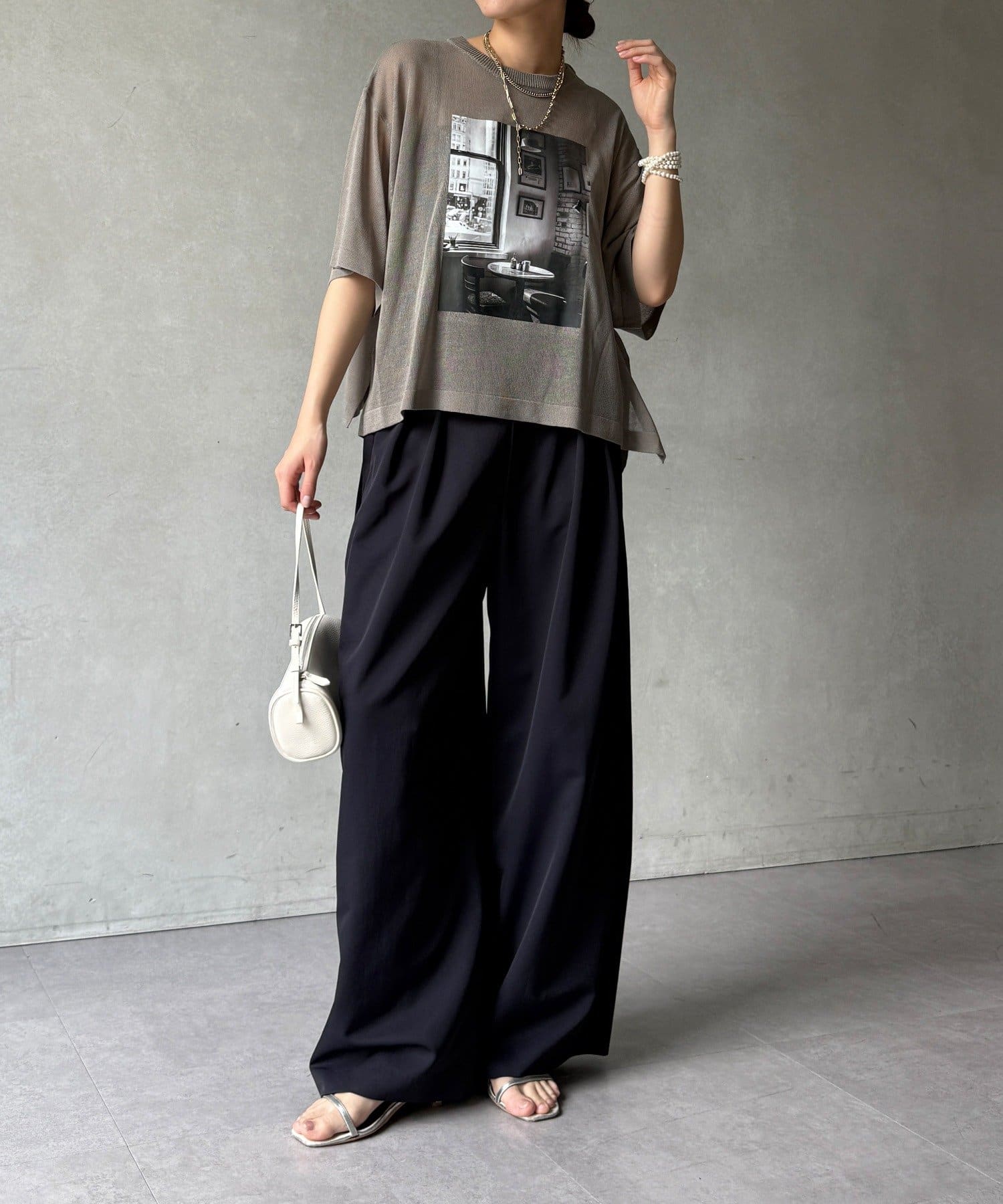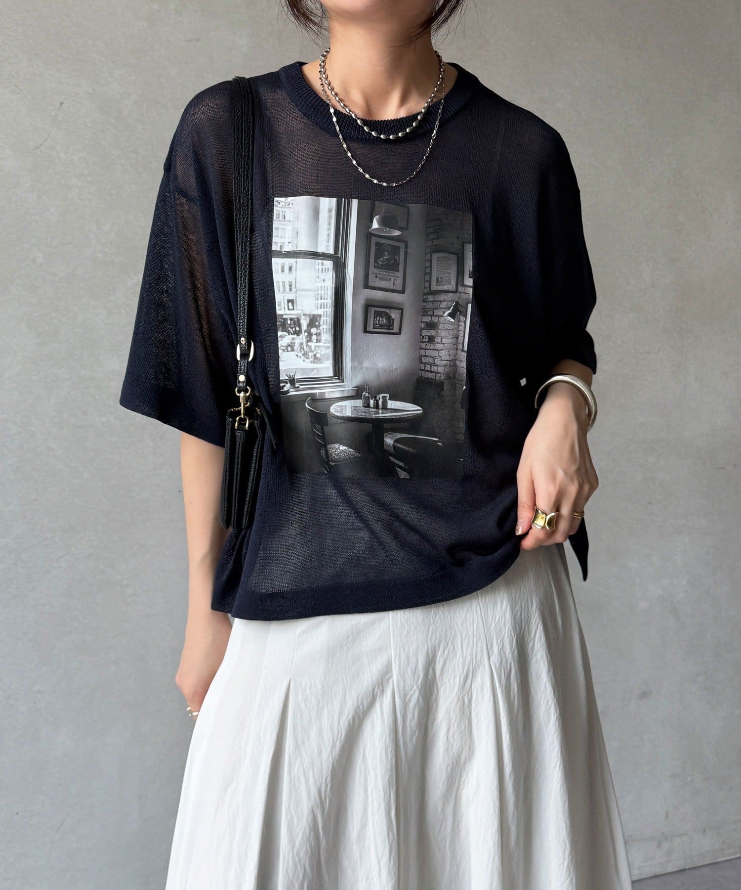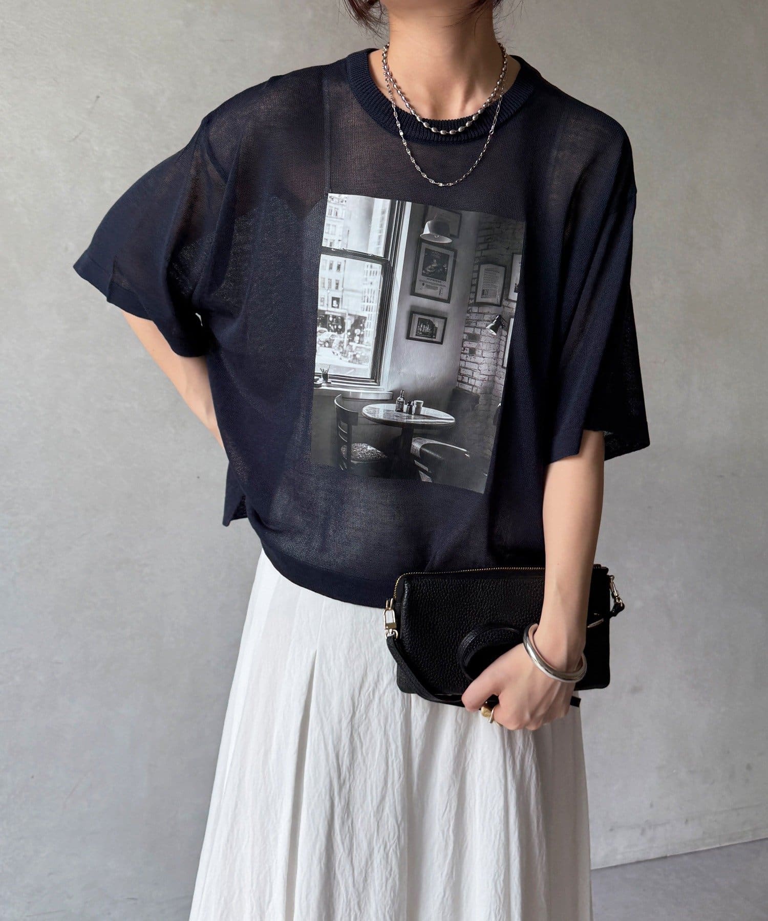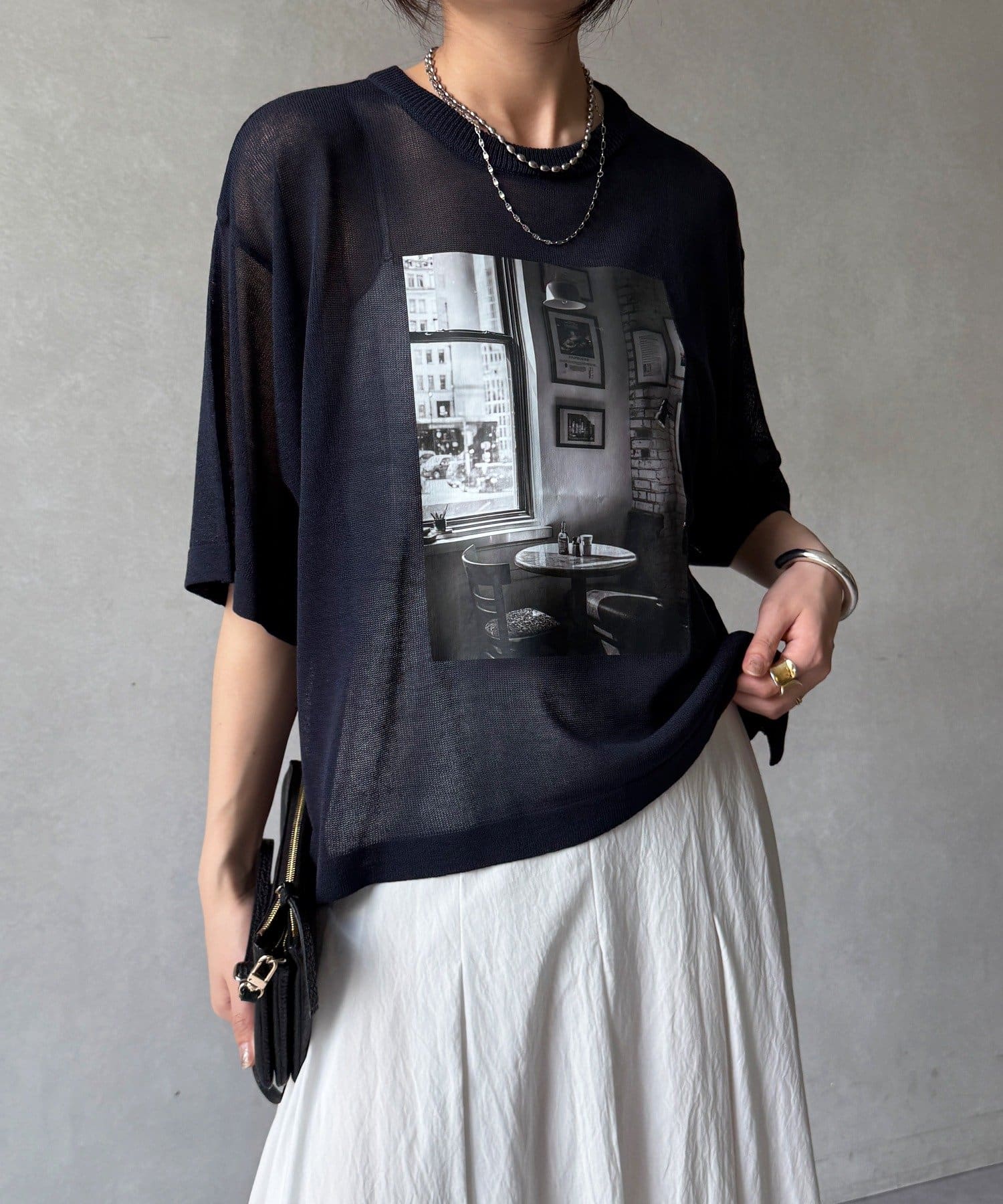 フォトプリントがスタイリングに程よいアクセントをプラスします。