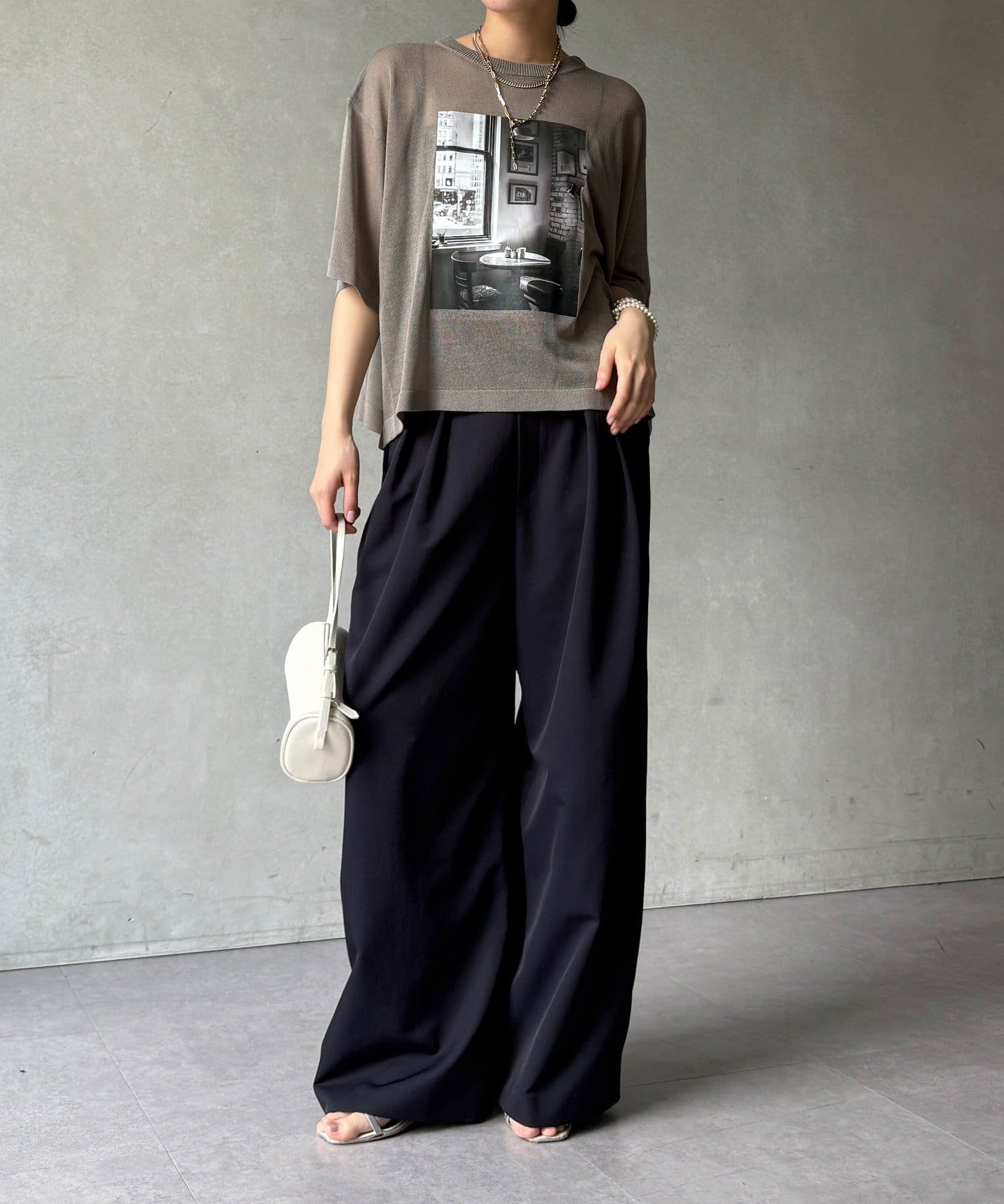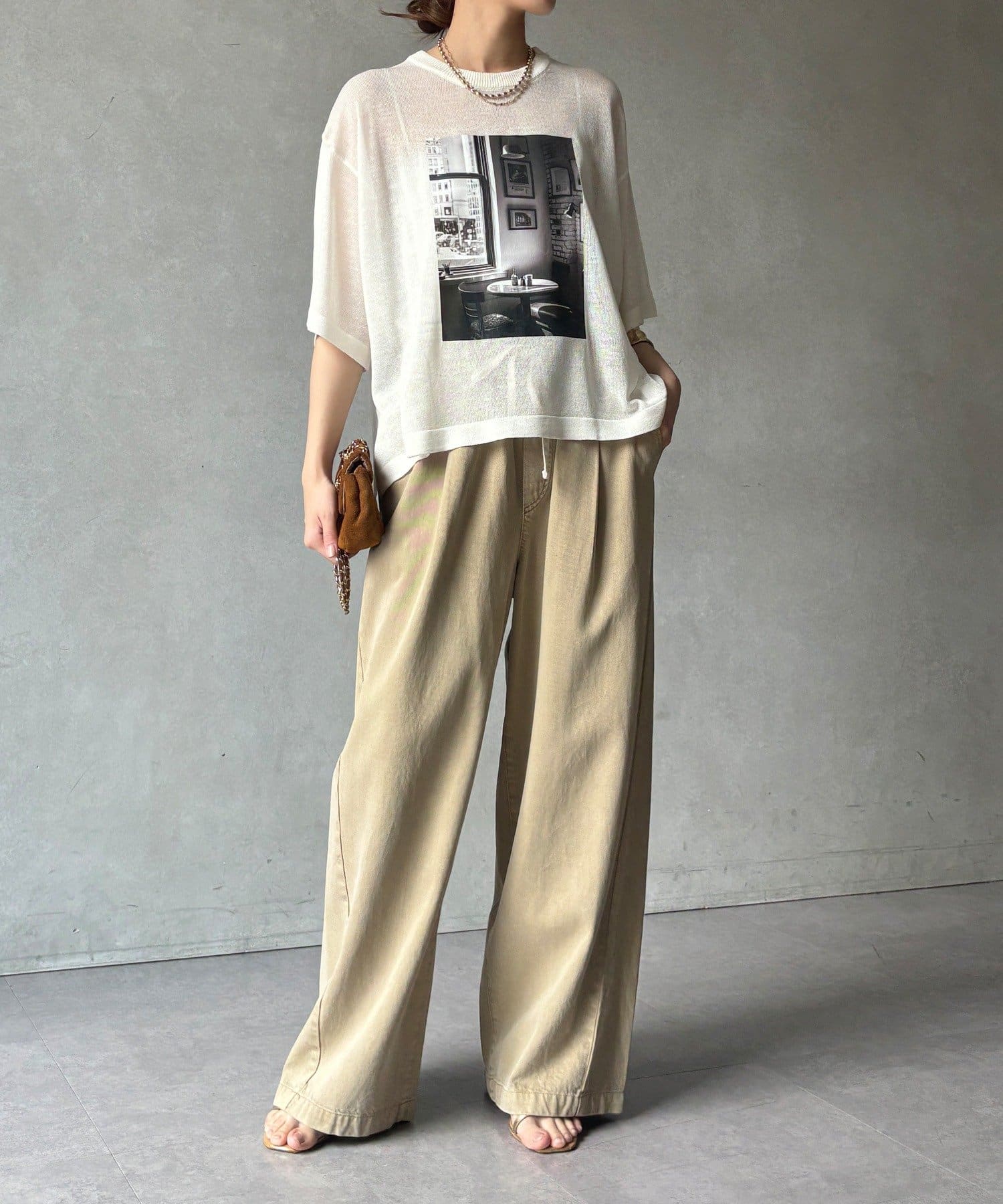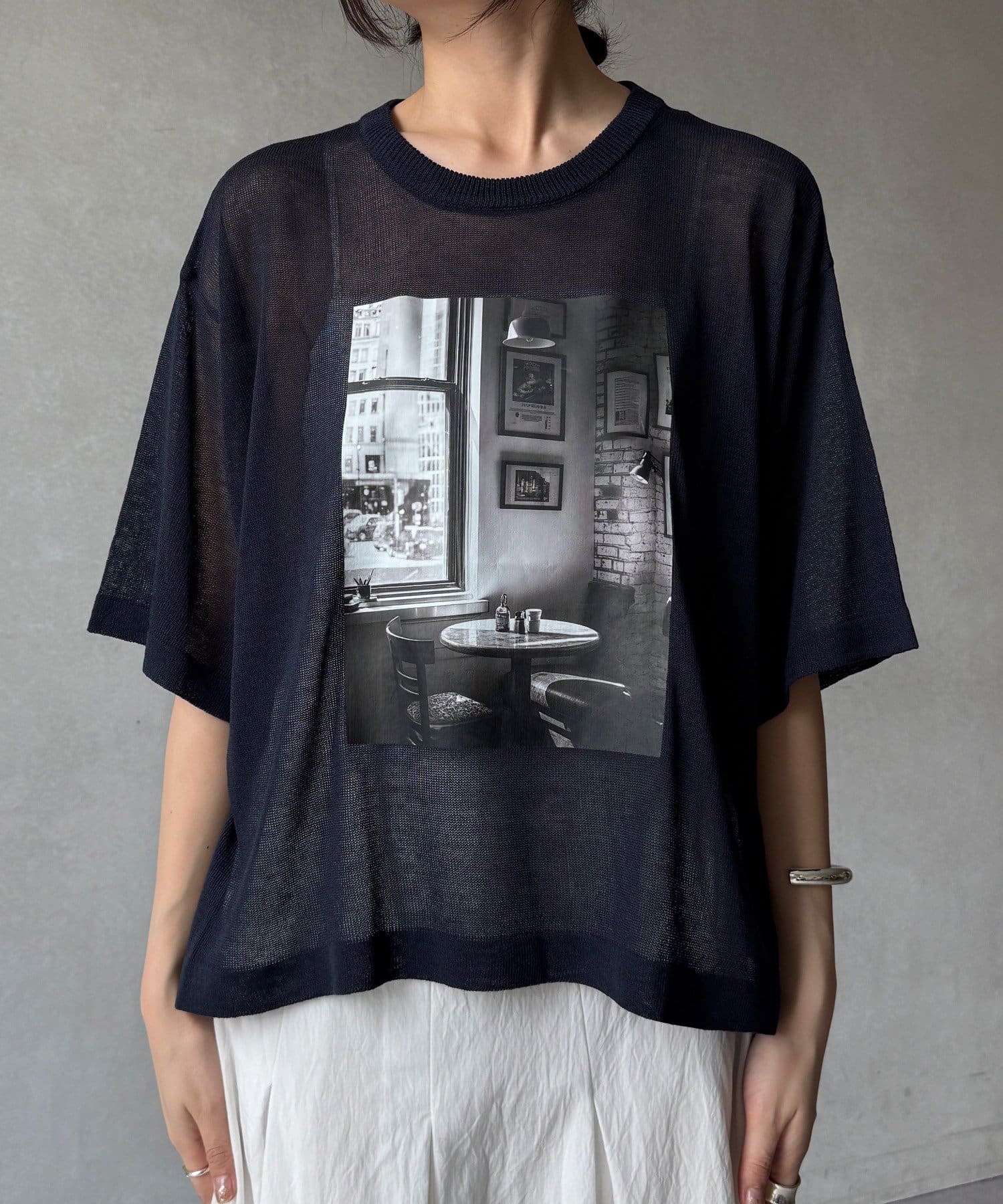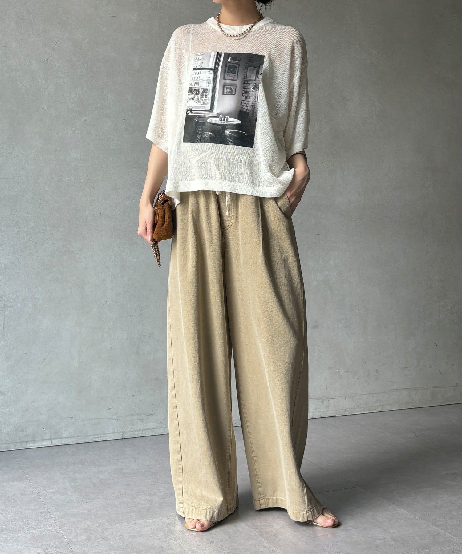 フォトプリントがスタイリングに程よいアクセントをプラスします。