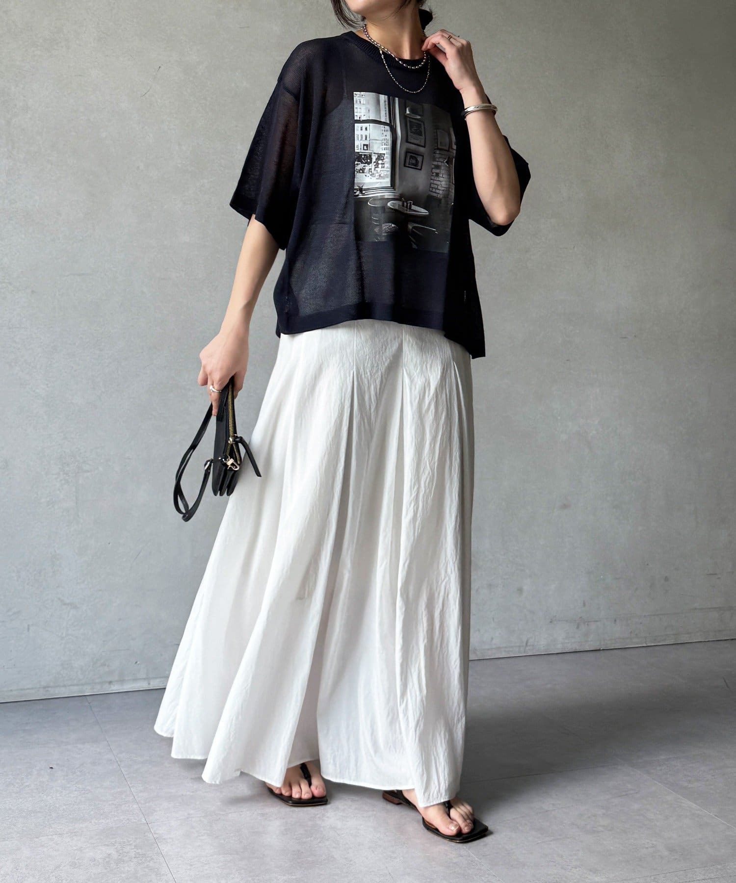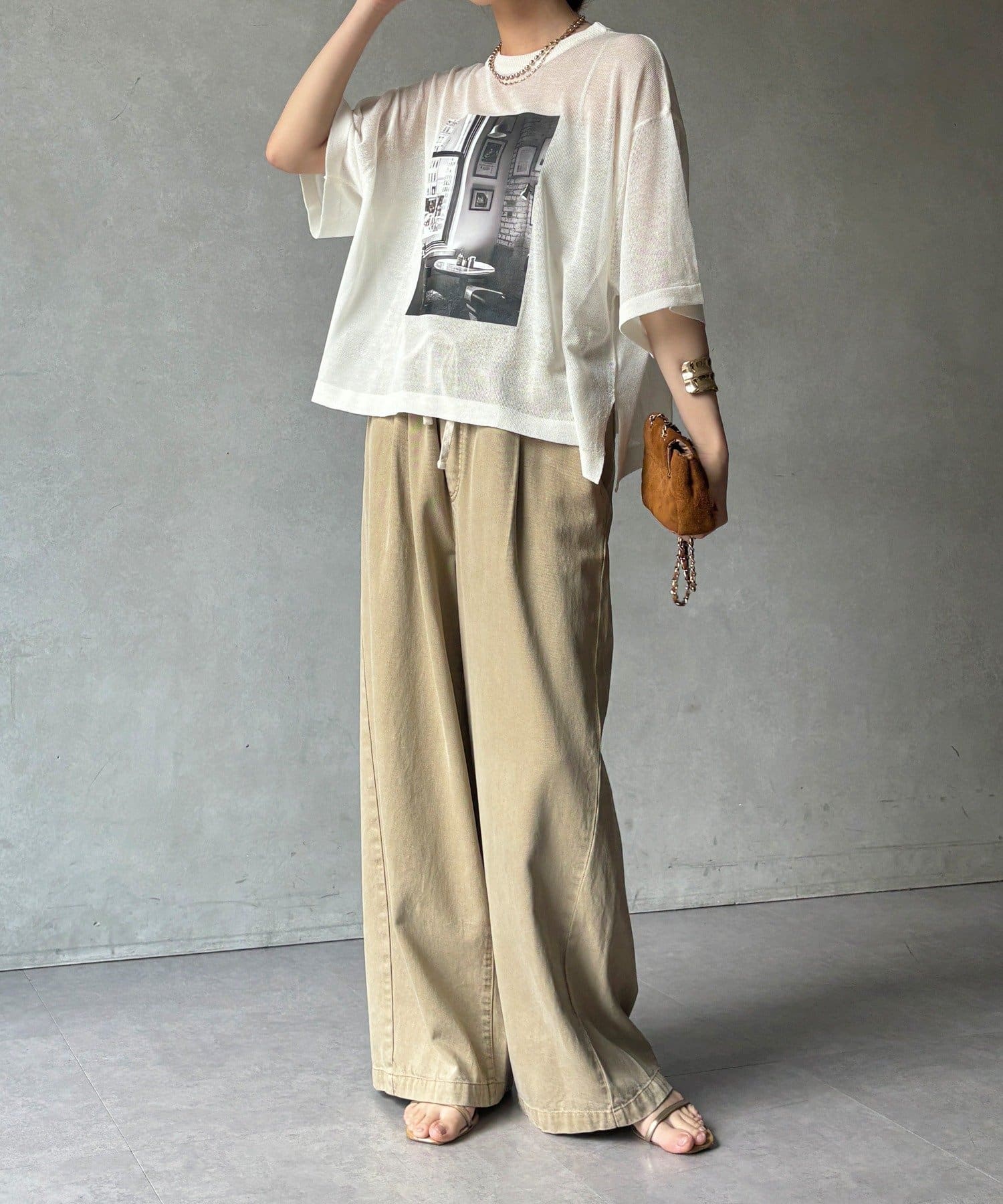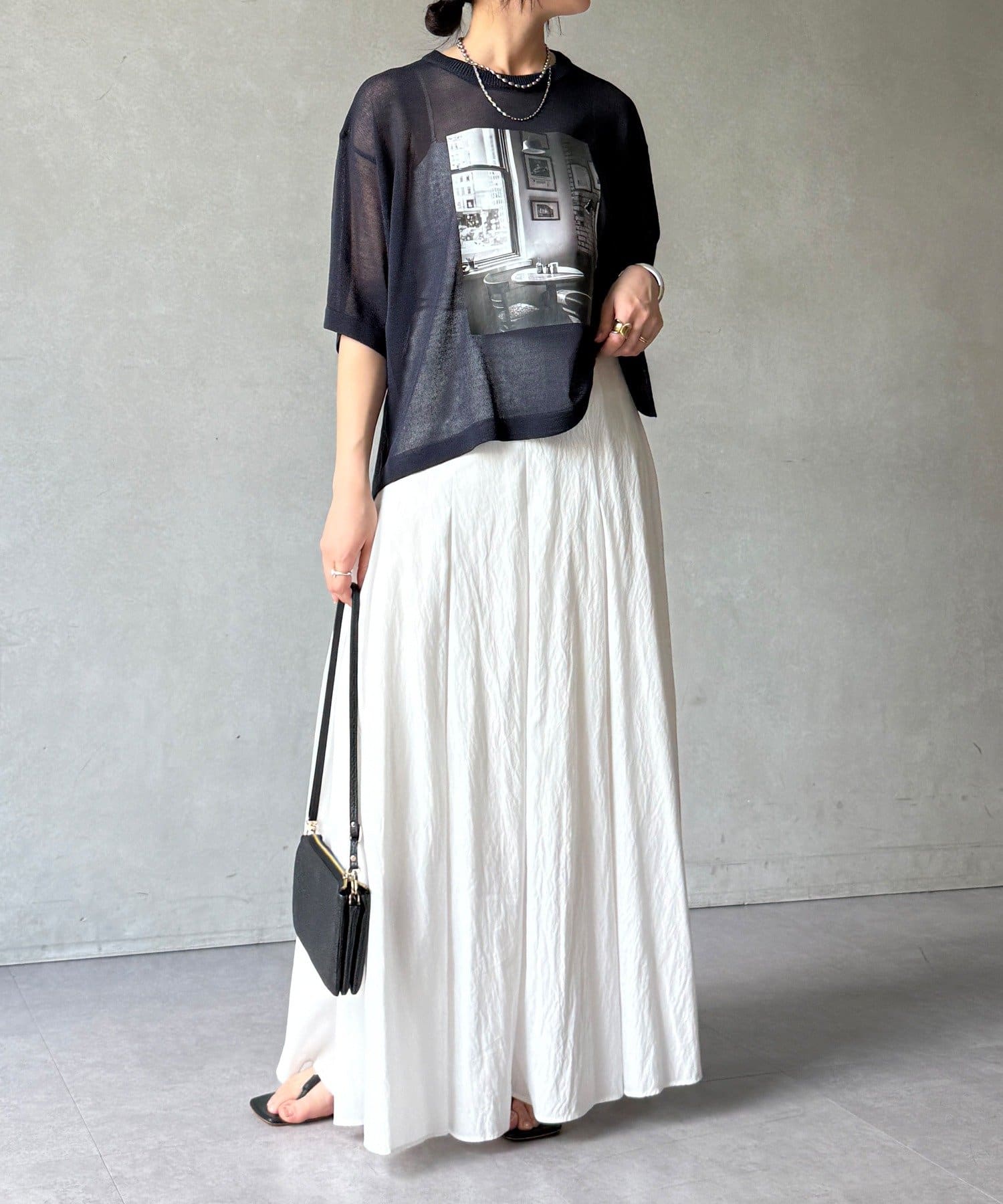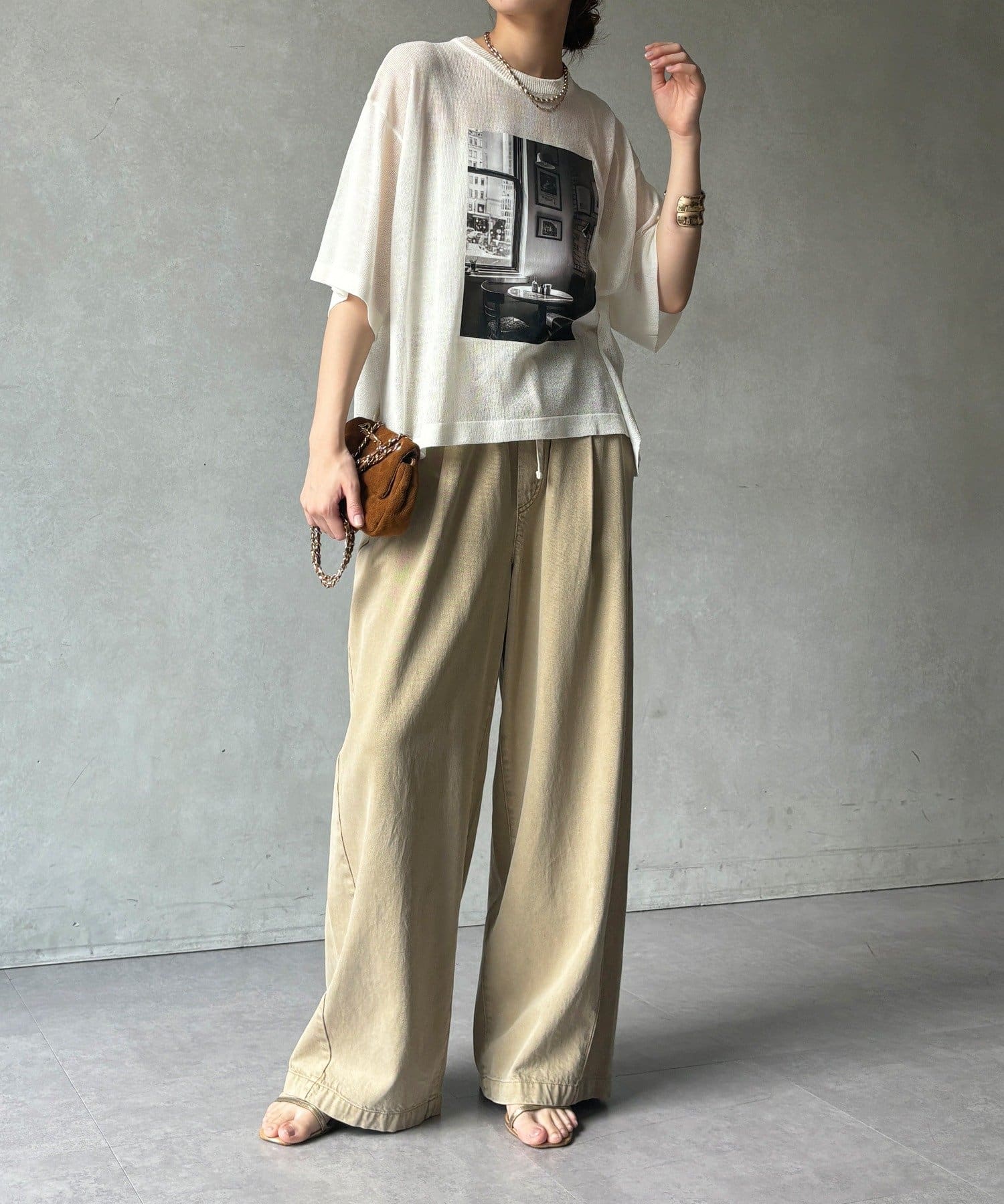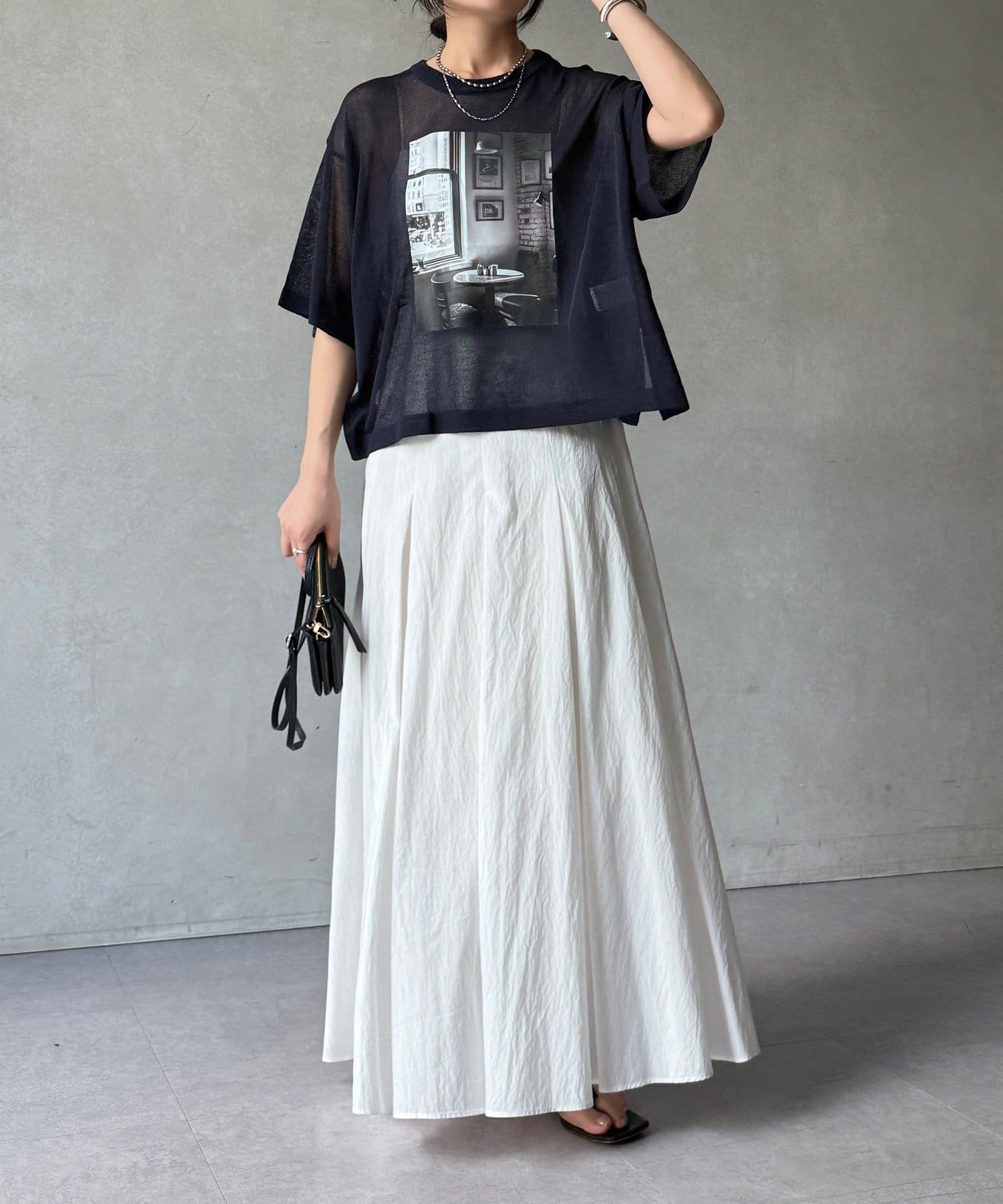 フォトプリントがスタイリングに程よいアクセントをプラスします。