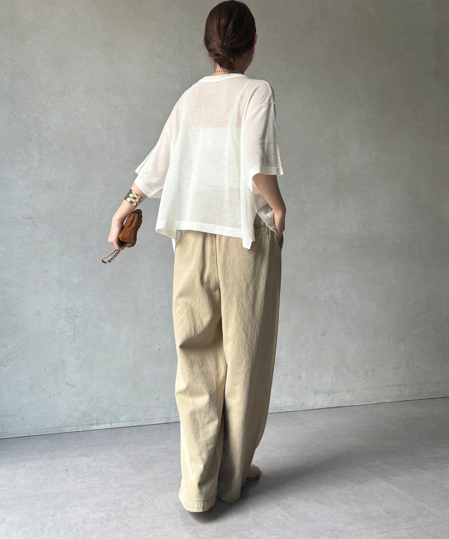ゆったりとしたシルエットで、気になる腕まわりもほんのりカバー◎