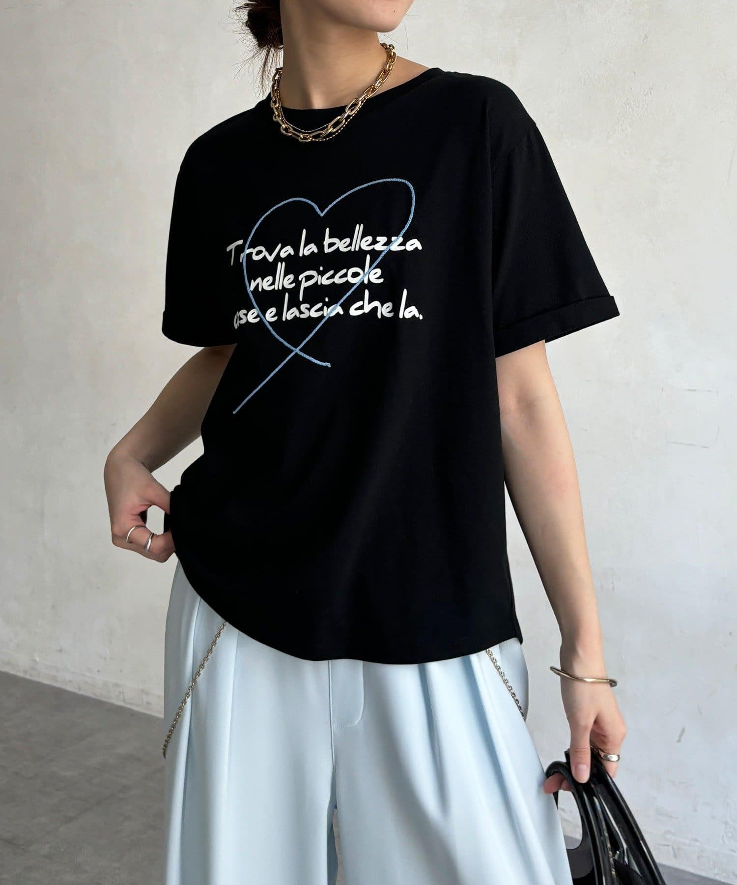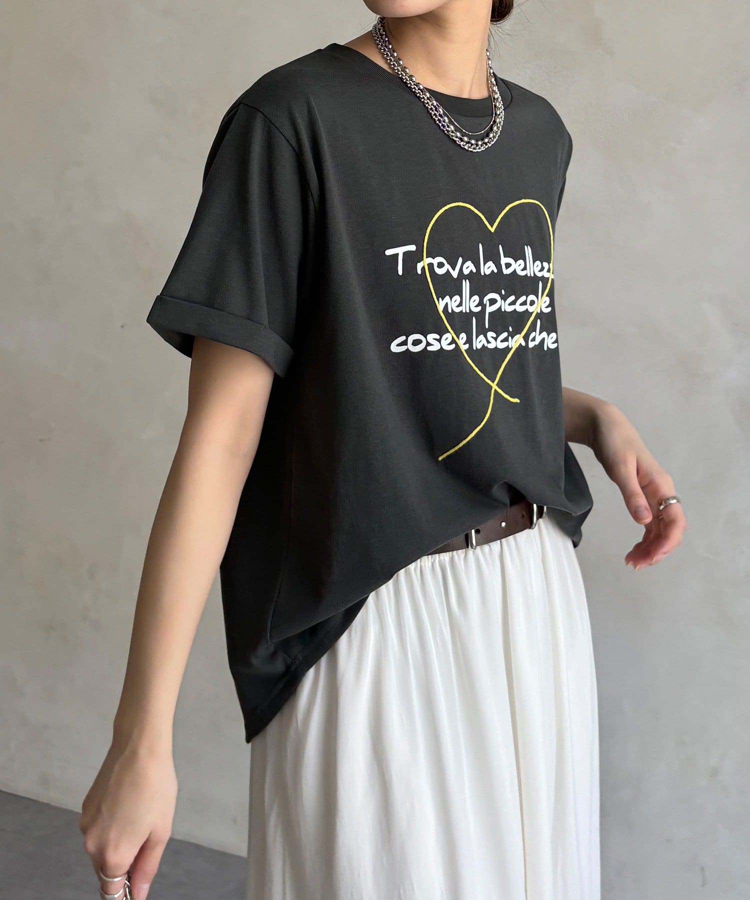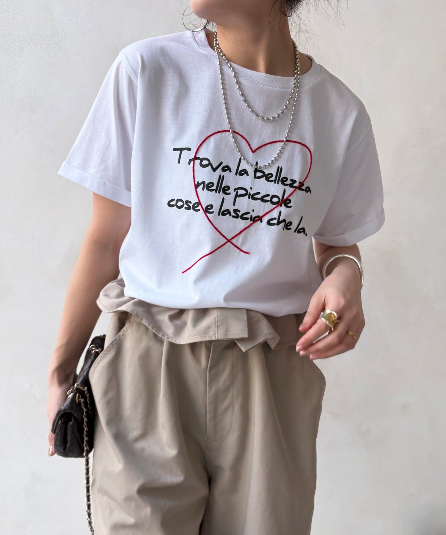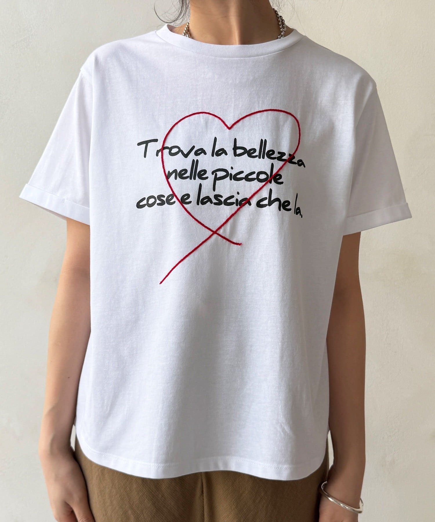 ハート刺繍ロゴT!折り返し袖で抜け感プラス