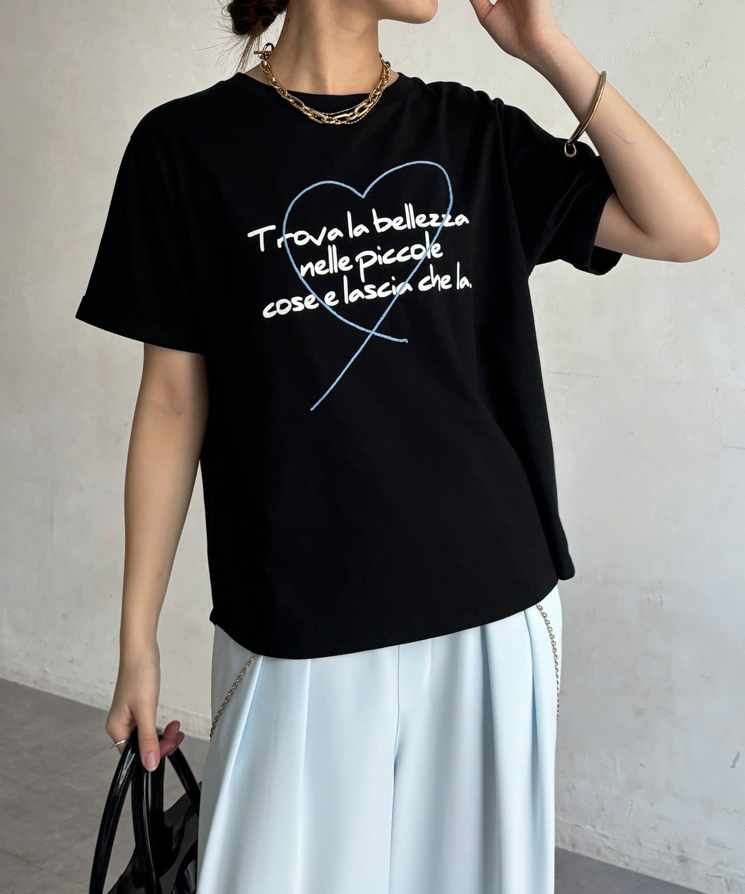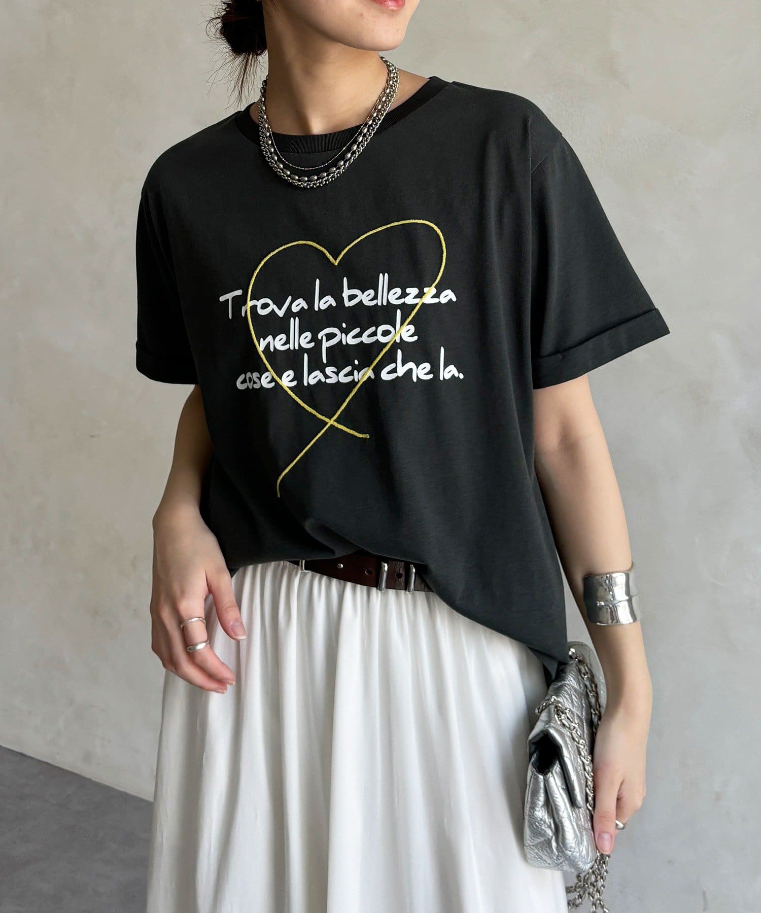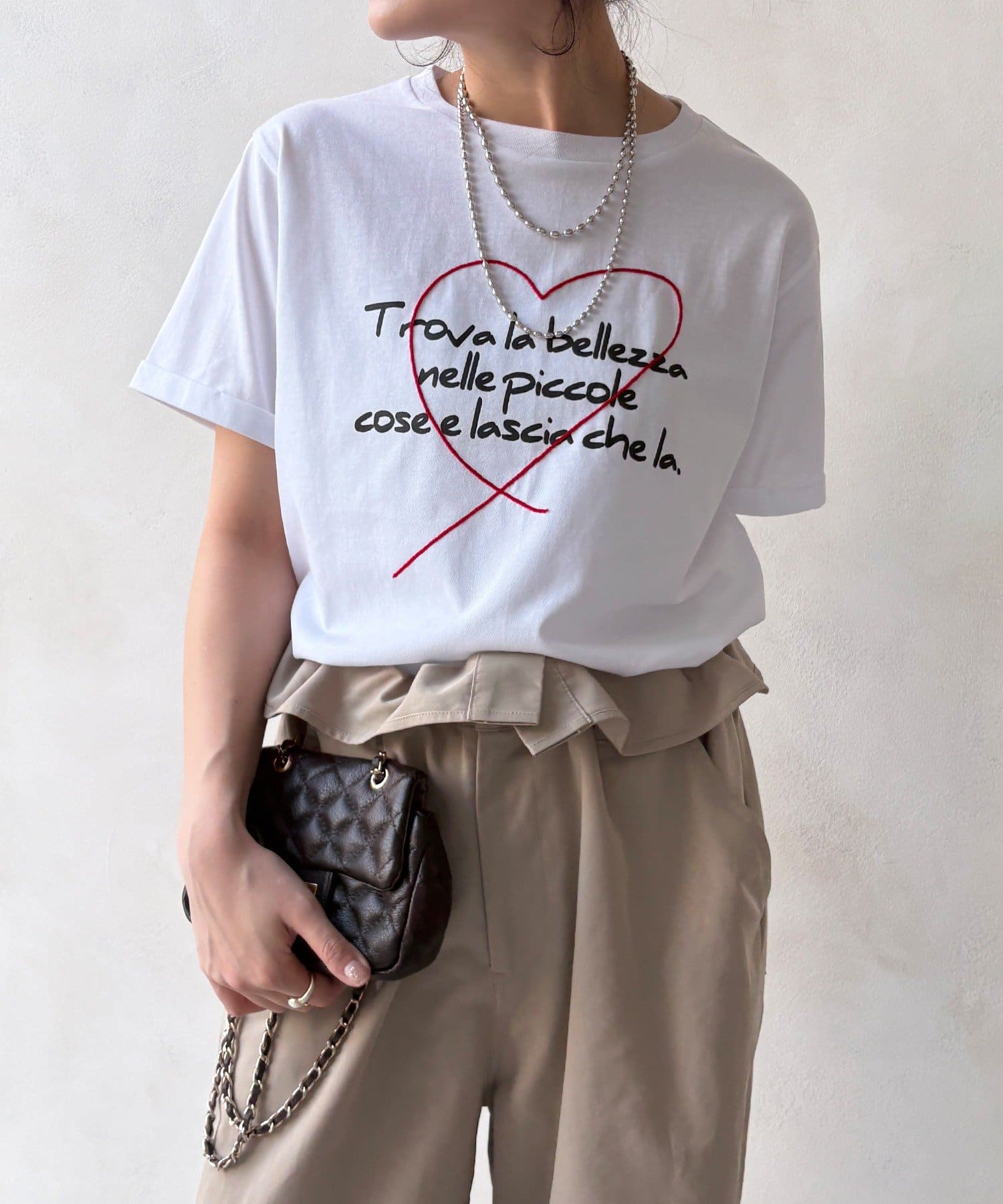 ハート刺繍ロゴT!折り返し袖で抜け感プラス