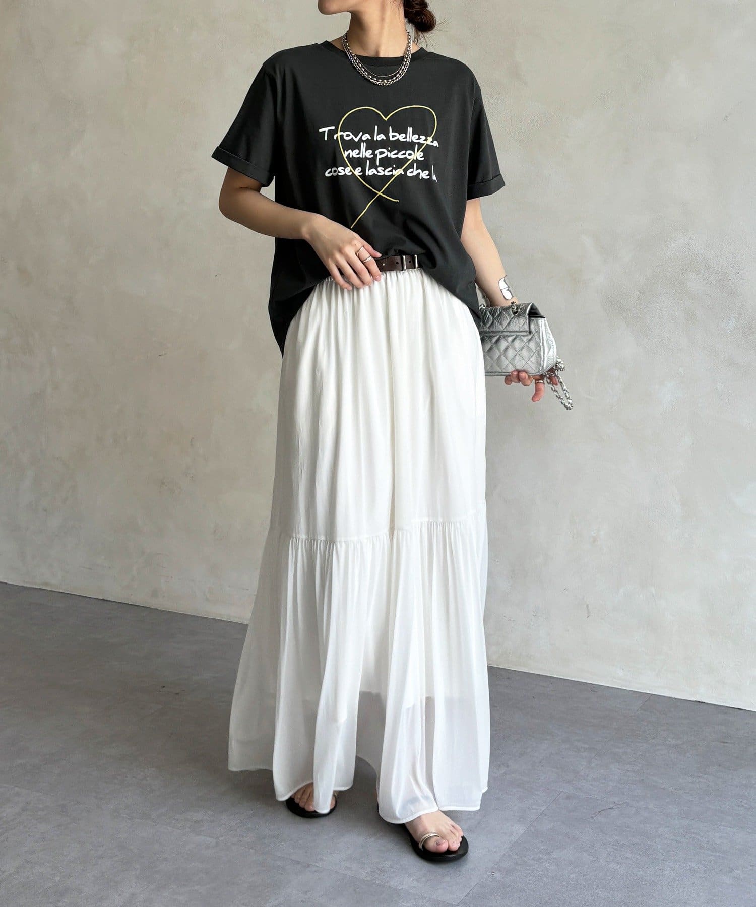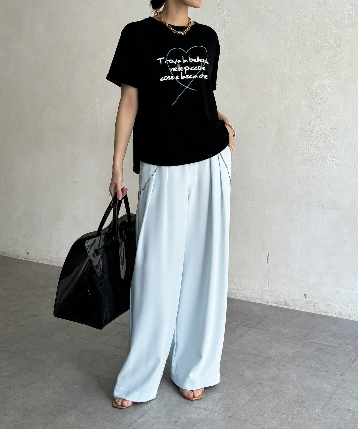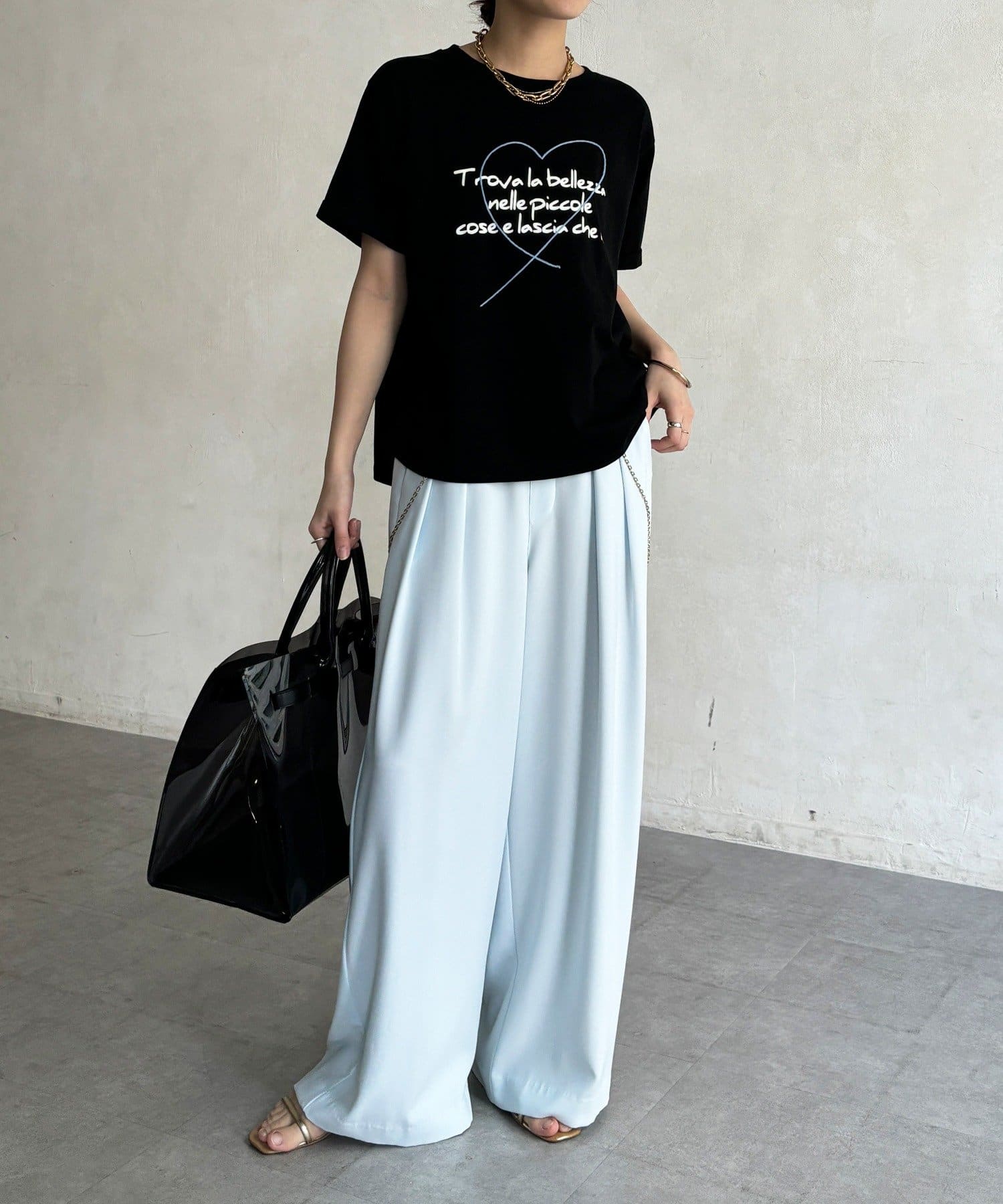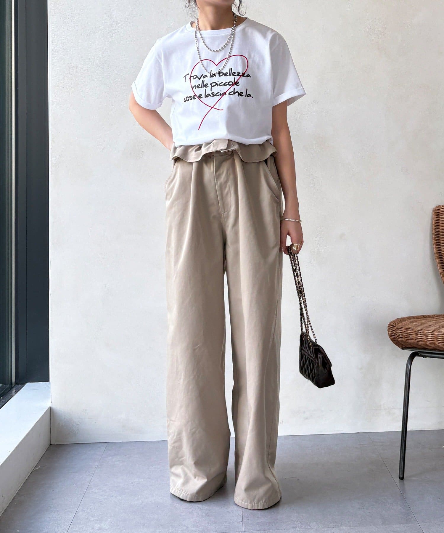 ハート刺繍ロゴT!折り返し袖で抜け感プラス
