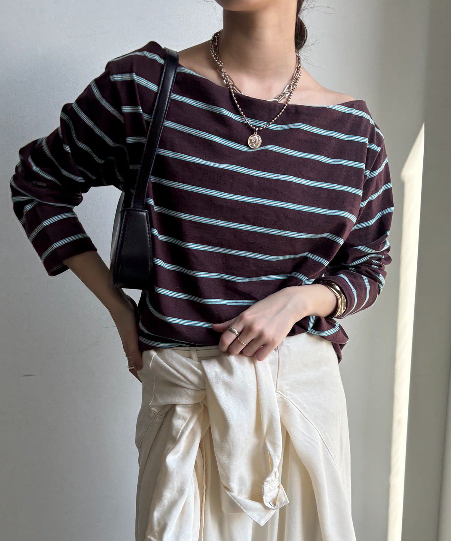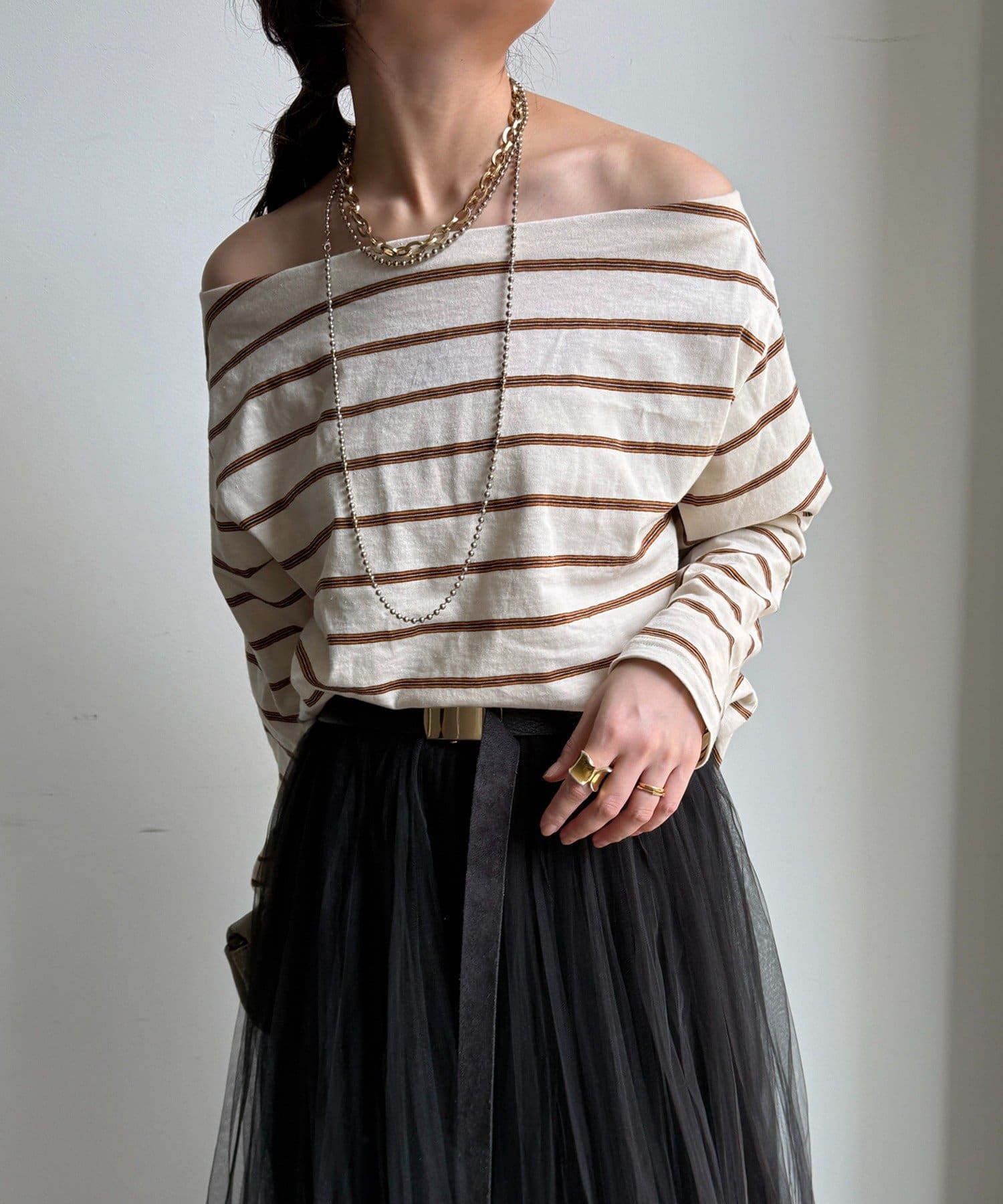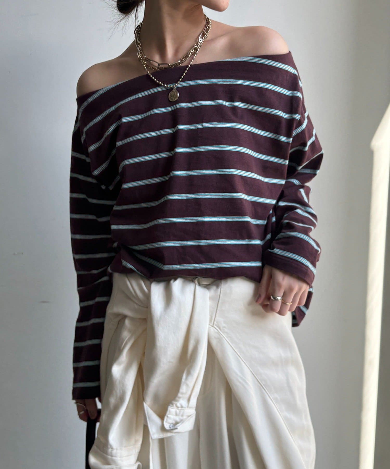 マルチボーダーオフショルTEE
