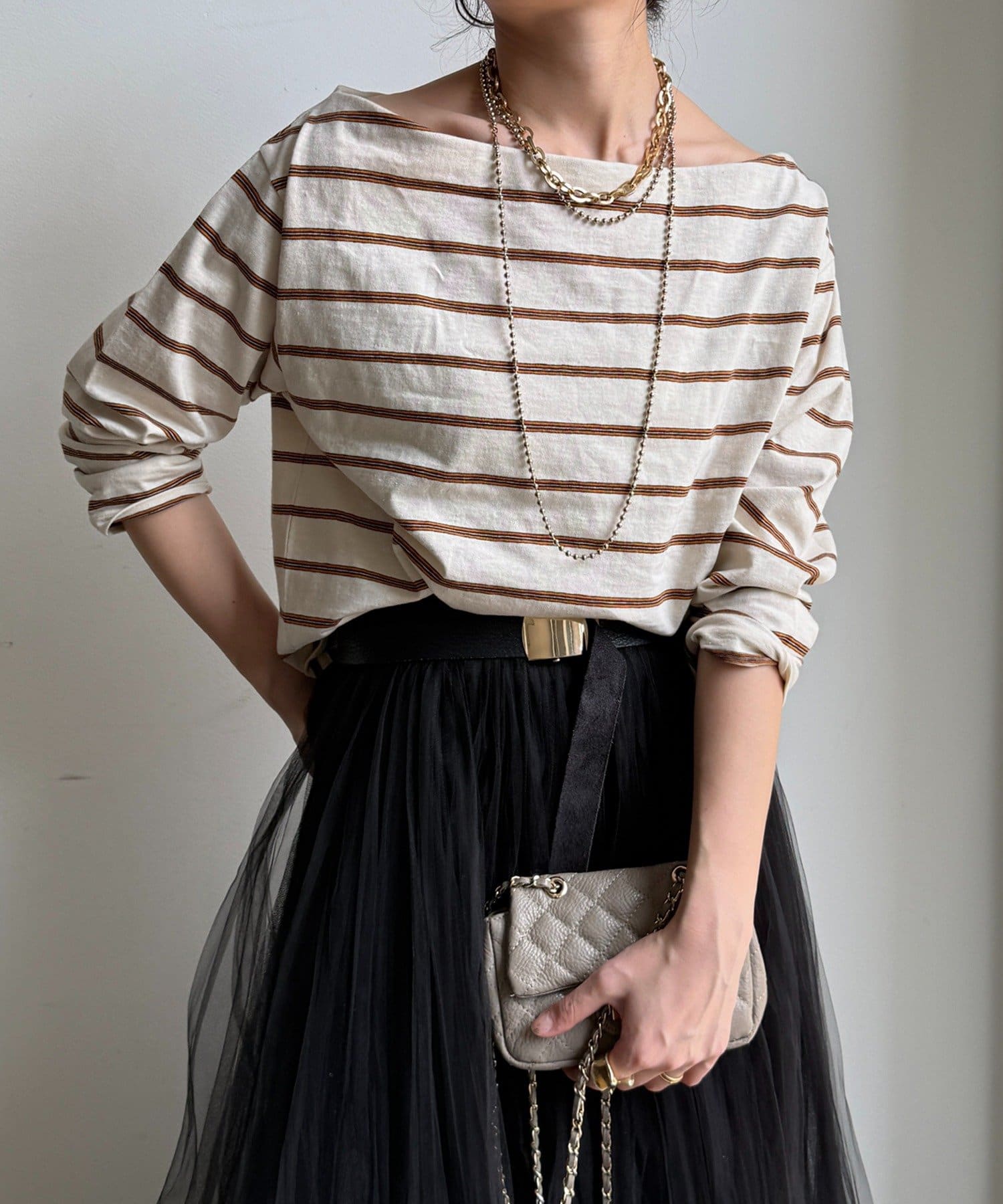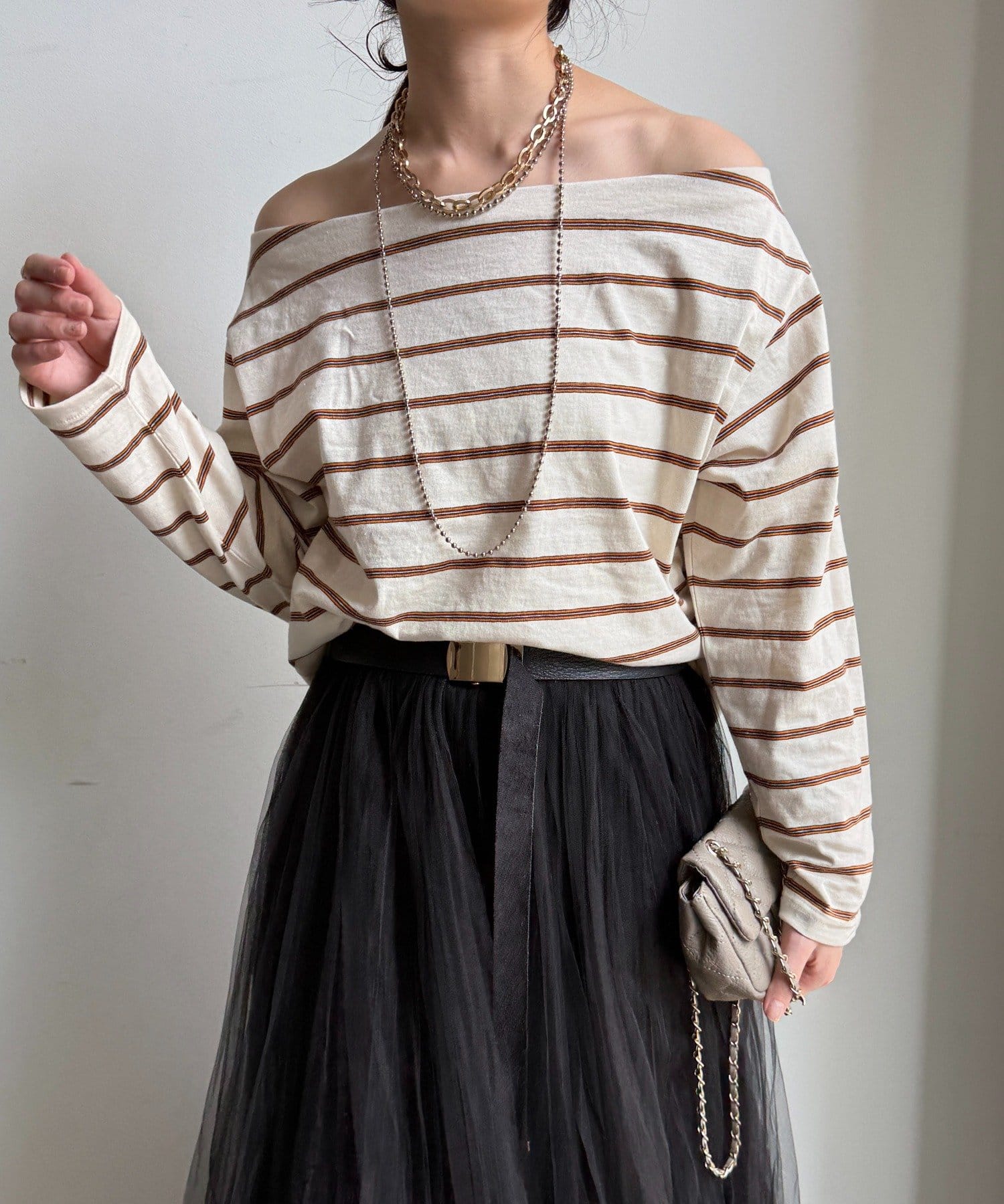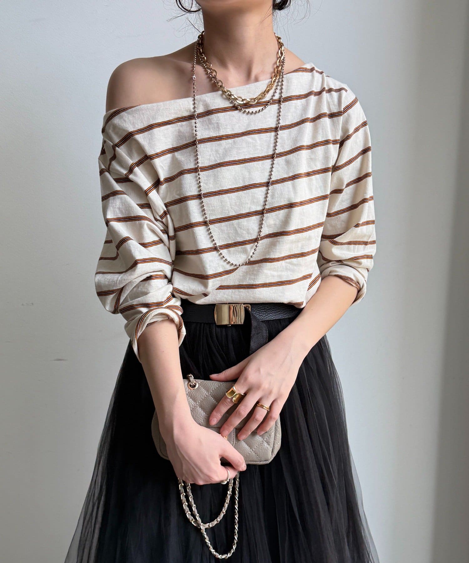 マルチボーダーオフショルTEE